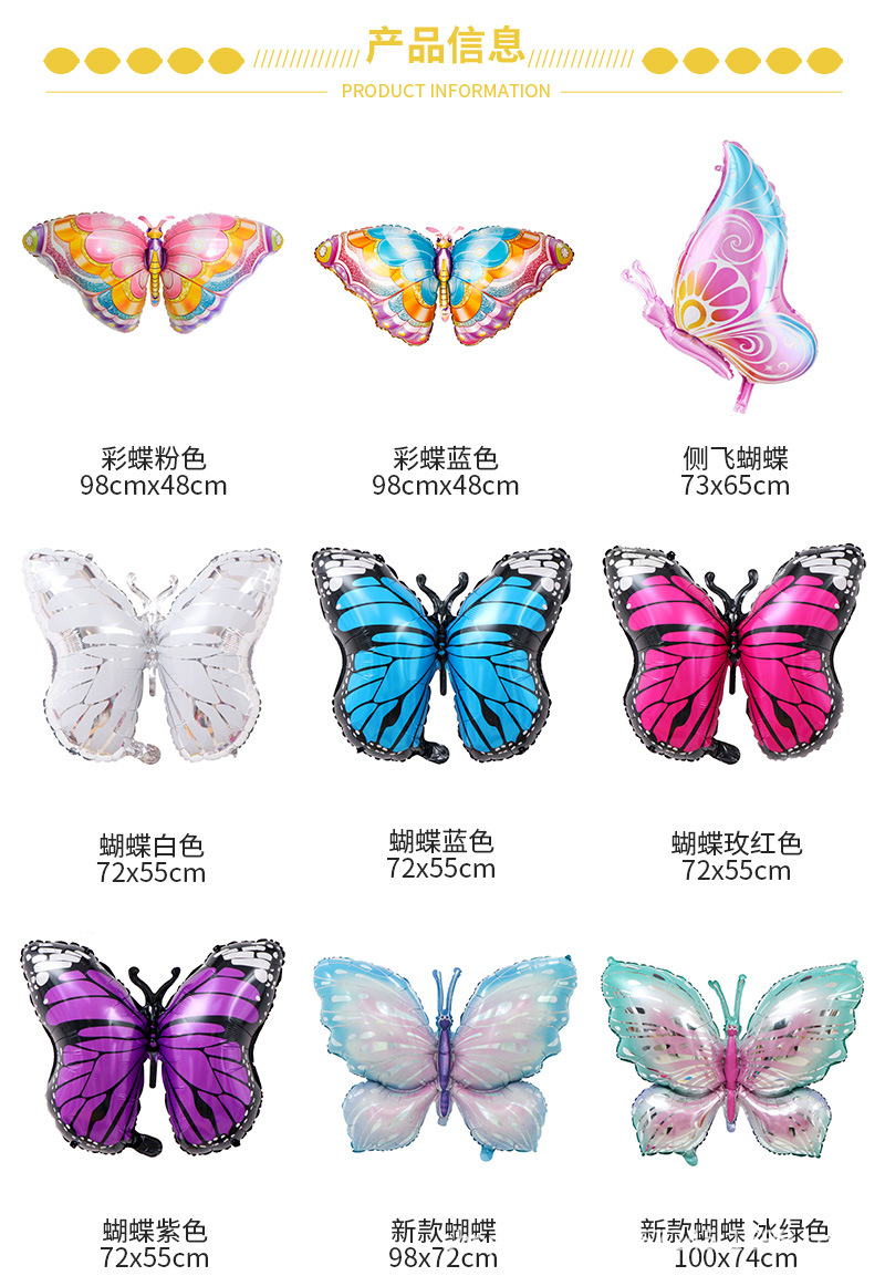 새로운 대외 무역 큰 나비 모양 알루미늄 필름 풍선 나비 알루미늄 호일 공 휴일 파티 측면 비행 그라디언트 도매스토어 가기