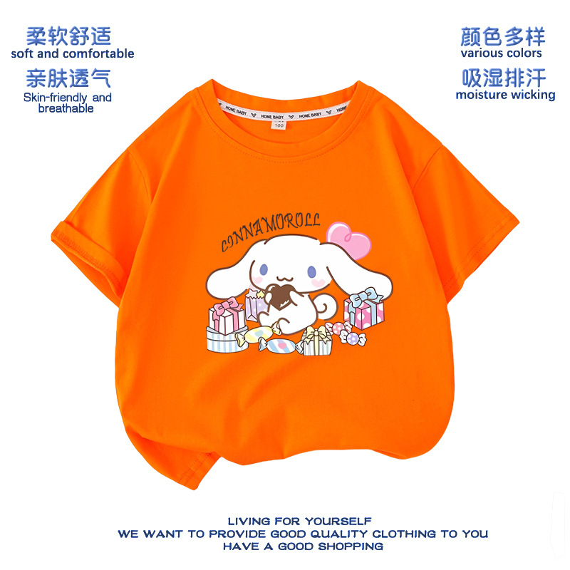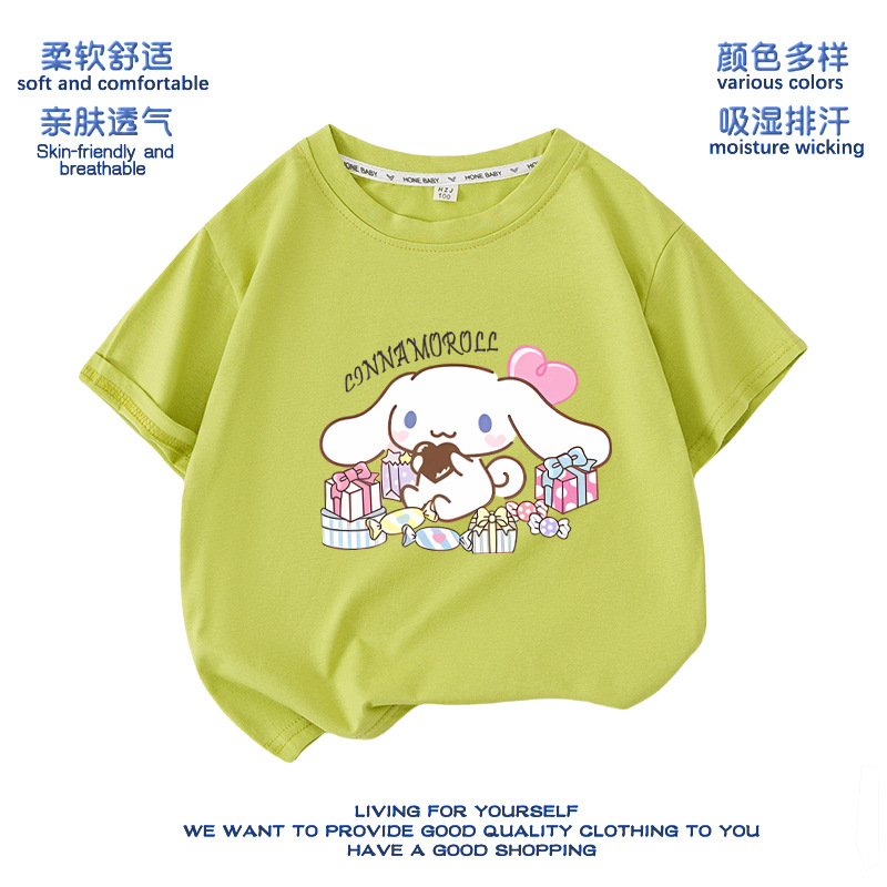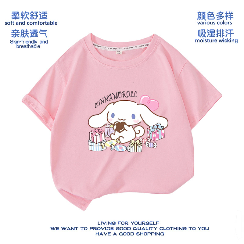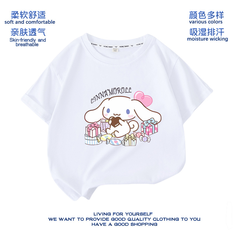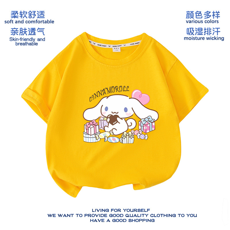 유구이 개 옷 반팔 여자 티셔츠 큰 귀 개 서양식 여름 통기성 순면 느슨한 반소매 어린이 의류스토어 가기