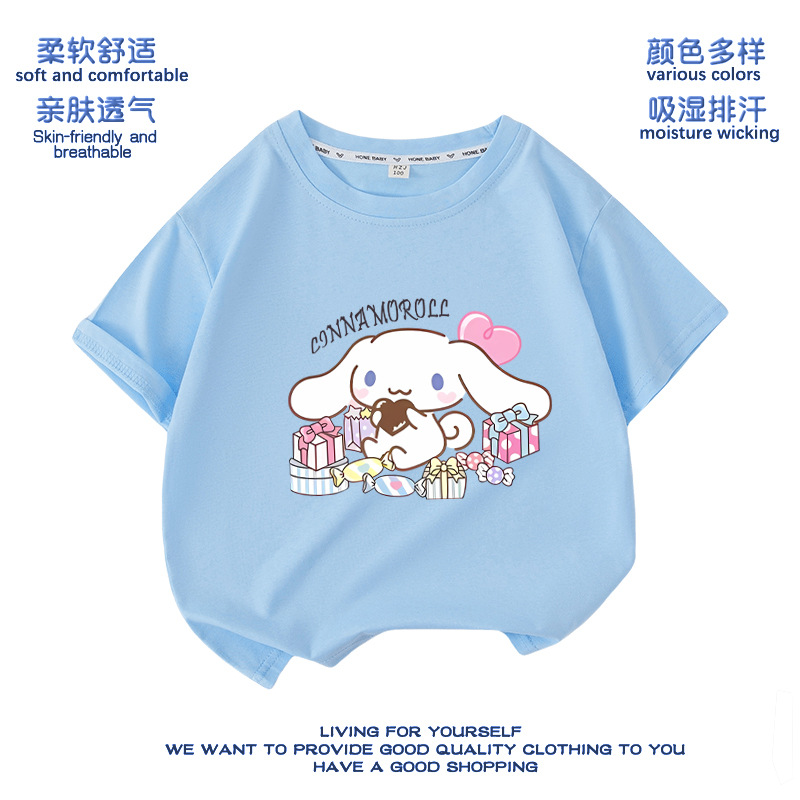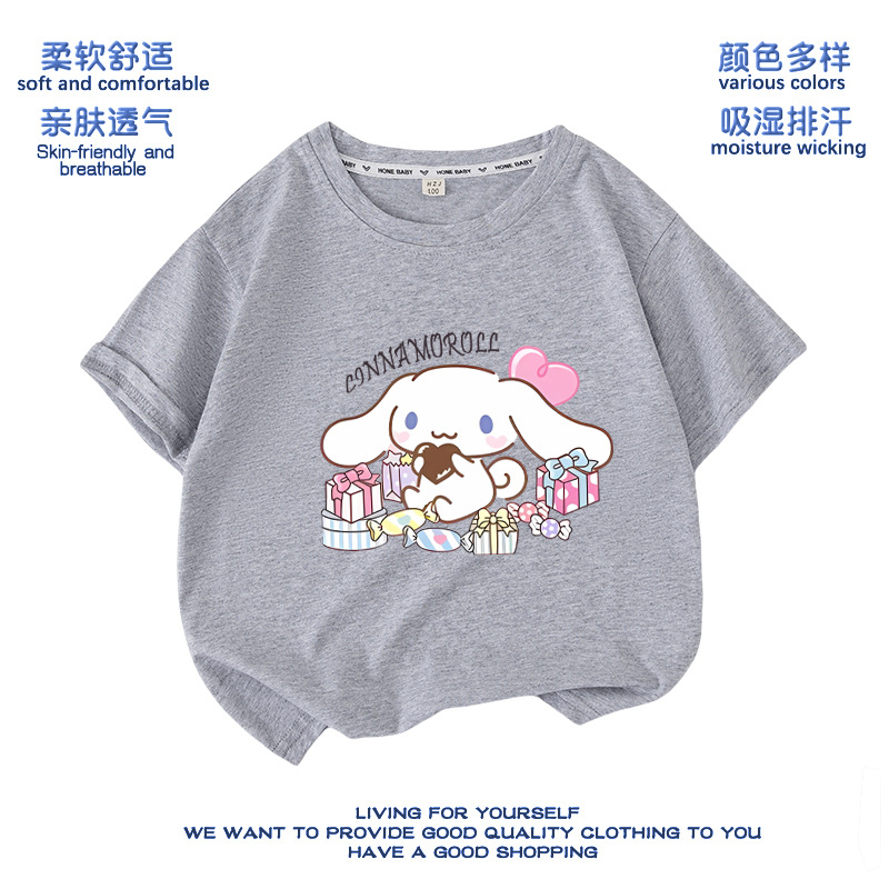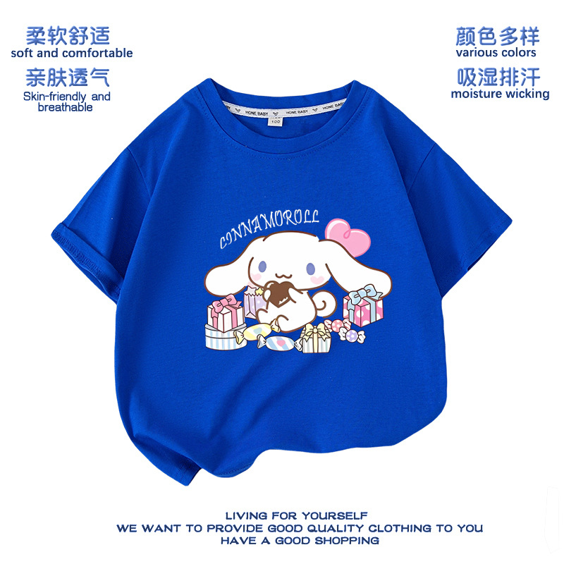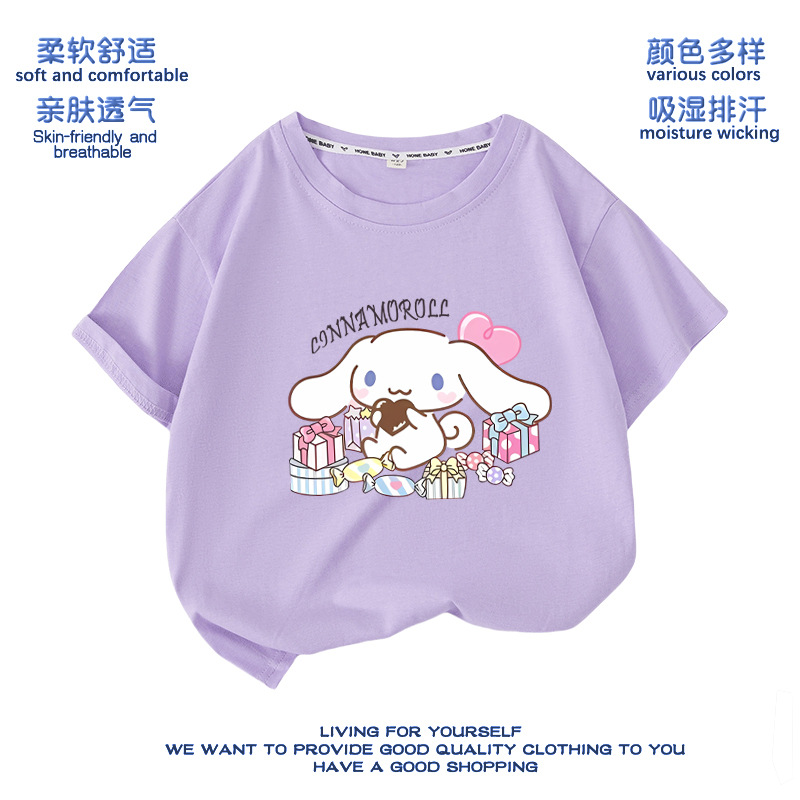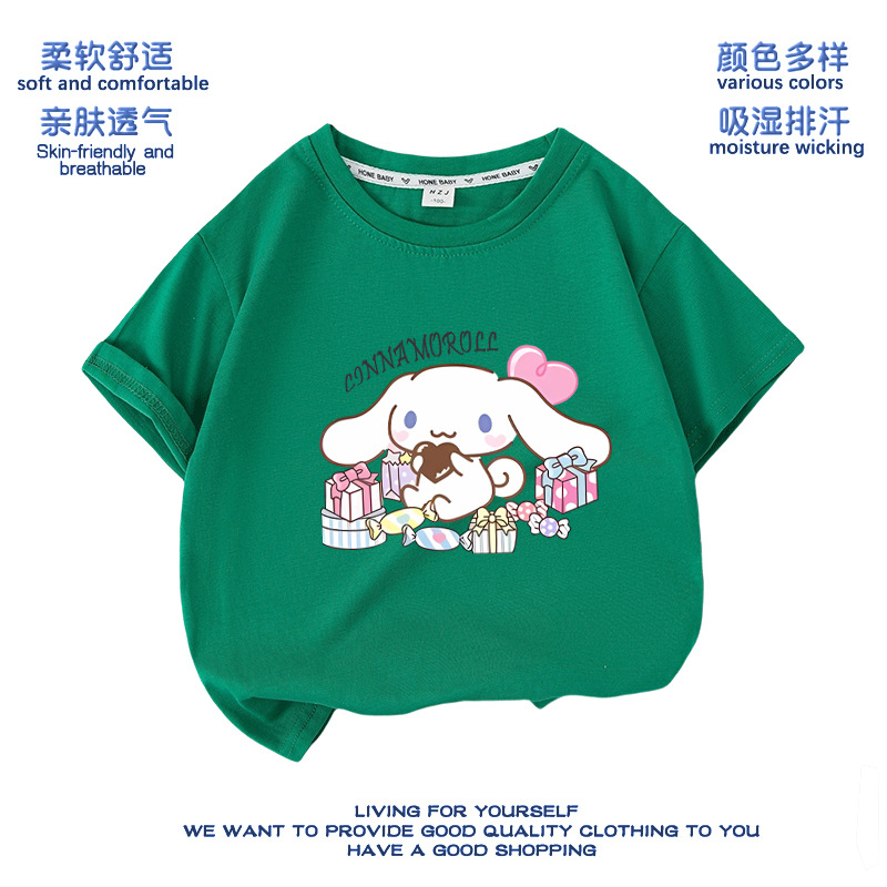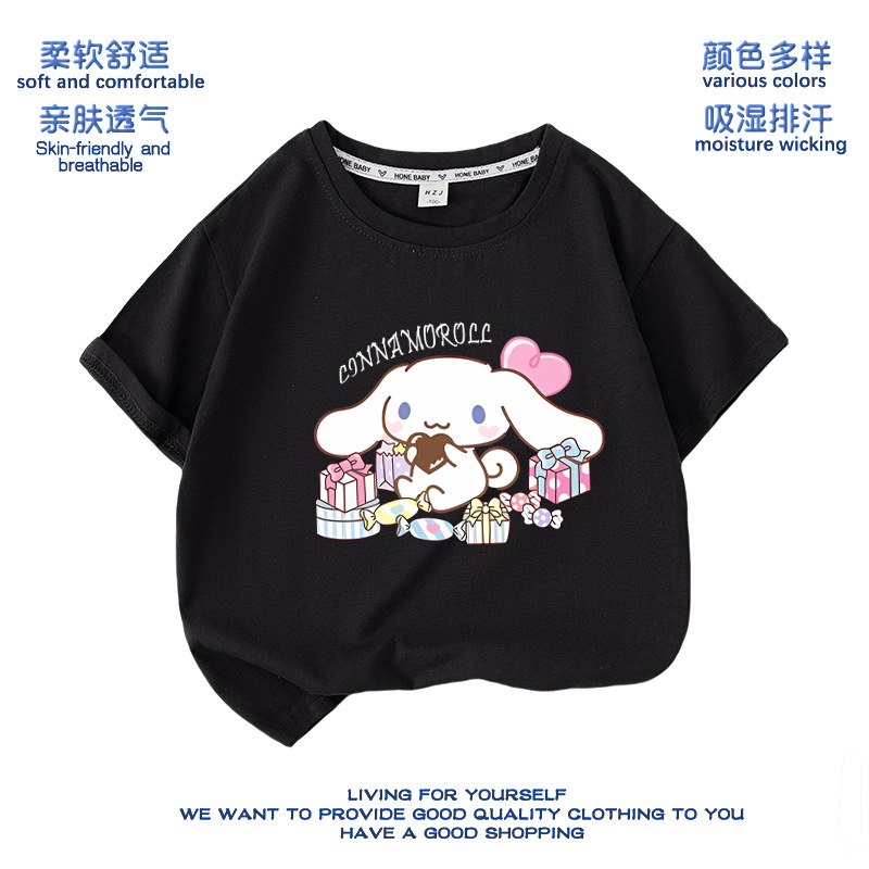 유구이 개 옷 반팔 여자 티셔츠 큰 귀 개 서양식 여름 통기성 순면 느슨한 반소매 어린이 의류스토어 가기