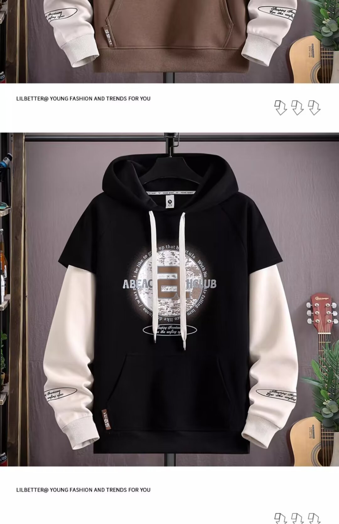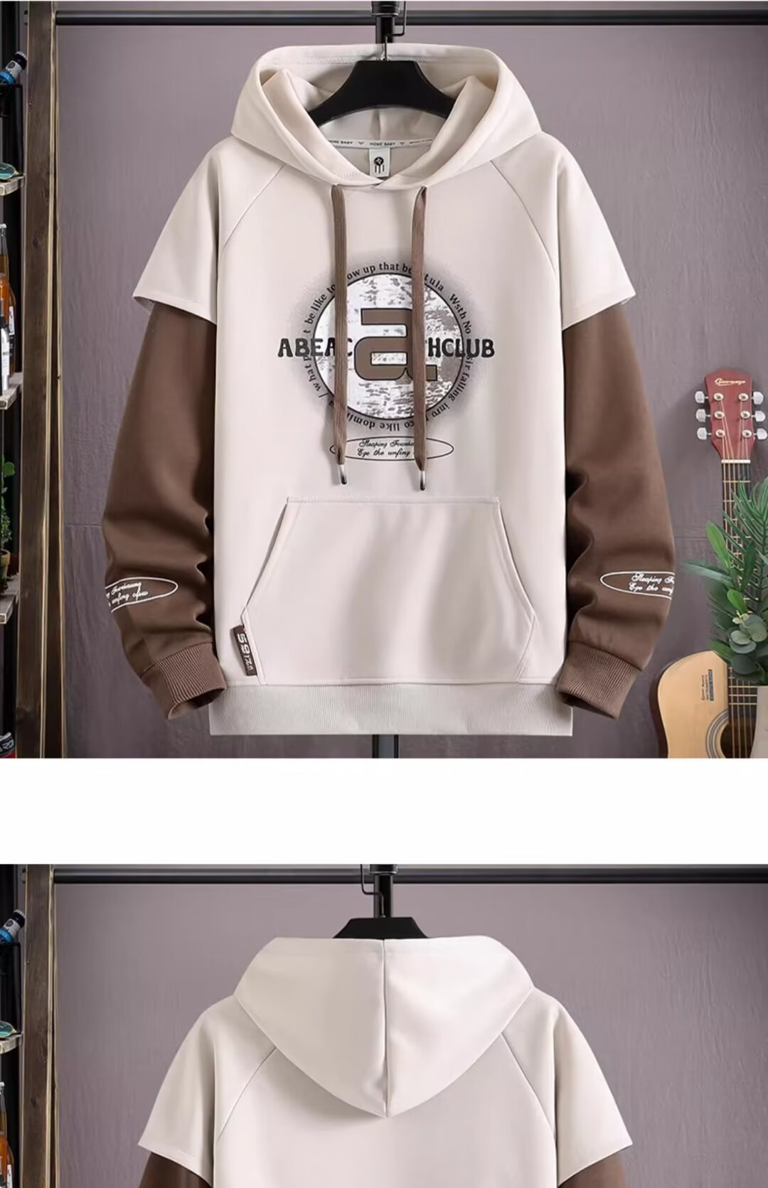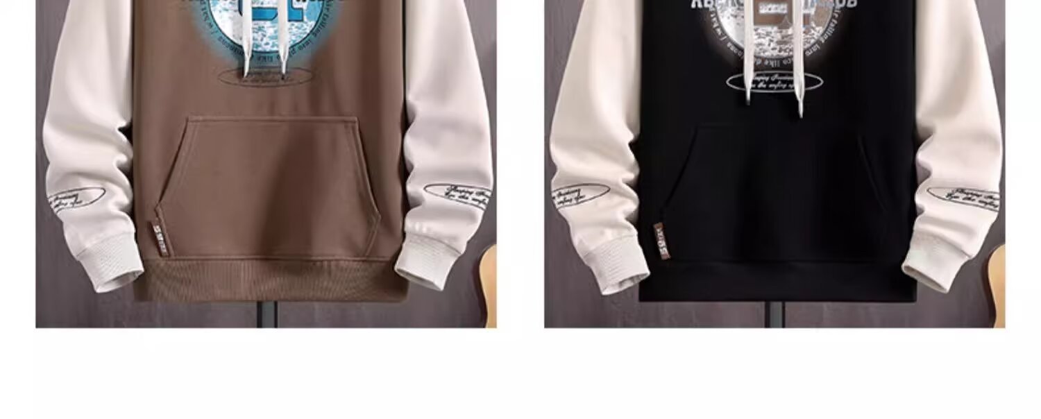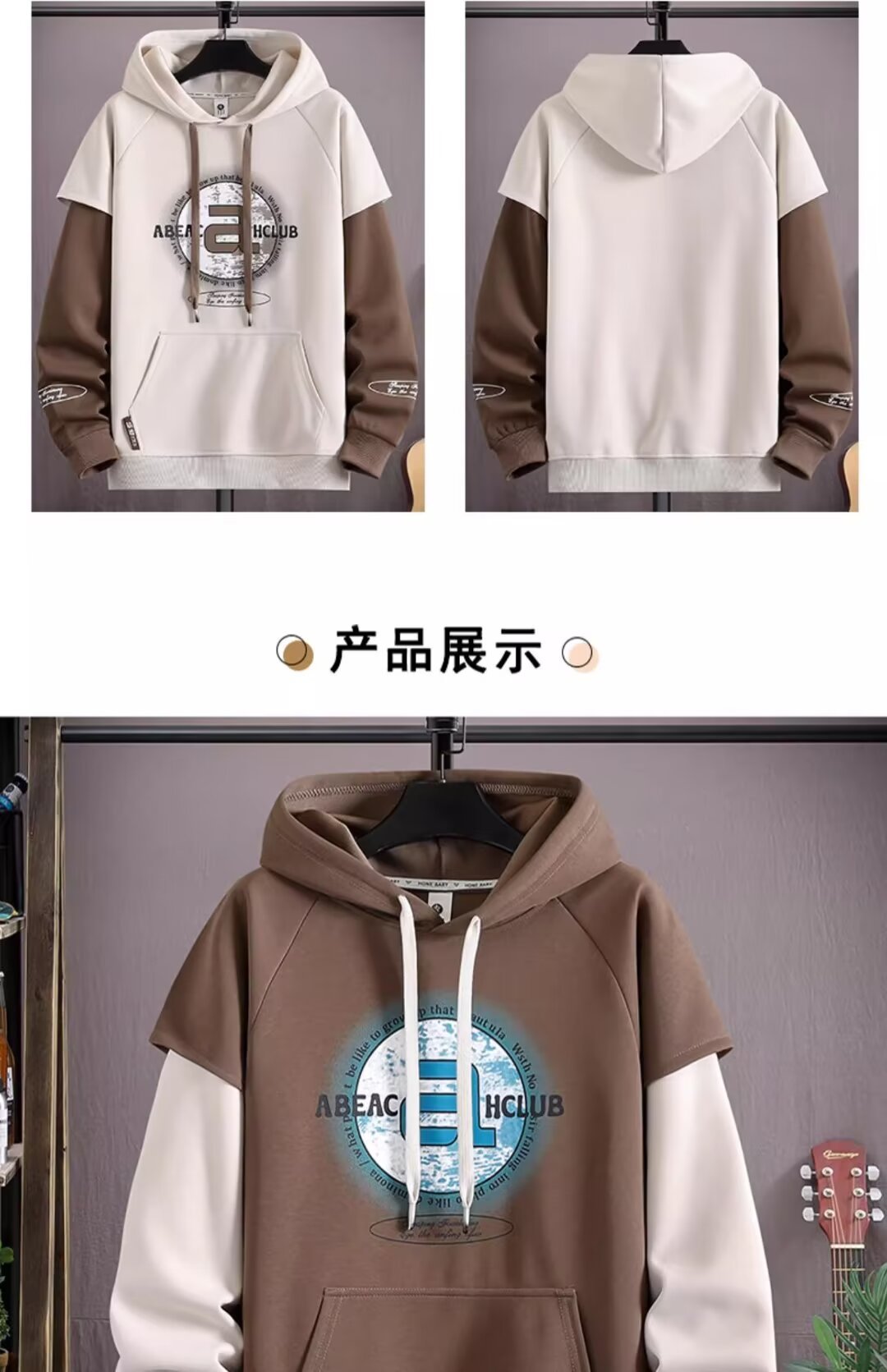 Douyin 라이브 방송 폭발 후드 스웨터 남자 풀오버 핸즈섬 스포츠 레저 칼리지 스타일 가짜 투피스 패션 재킷스토어 가기
