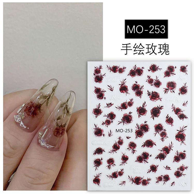 • 새로운 네일 스티커 장미 꽃 데칼 레드