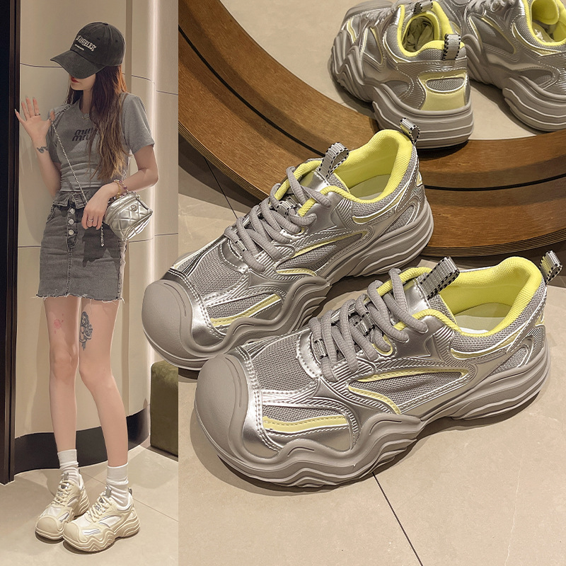 두꺼운 밑창 캐주얼 통기성 메시 운동화 여성의 2024 년 새로운 여름 인터넷 연예인 유행 올 매치 토르 신발 여성