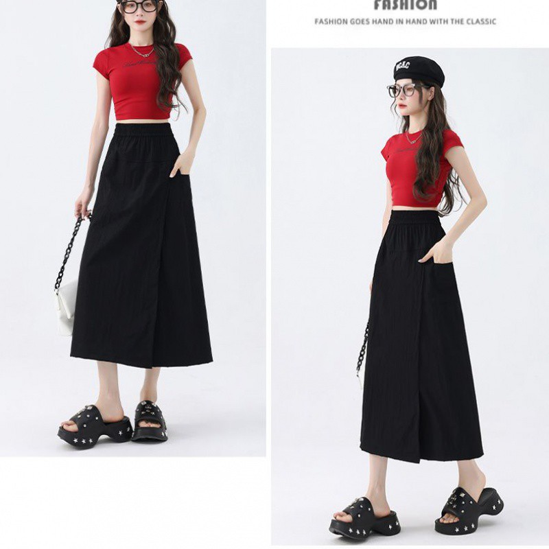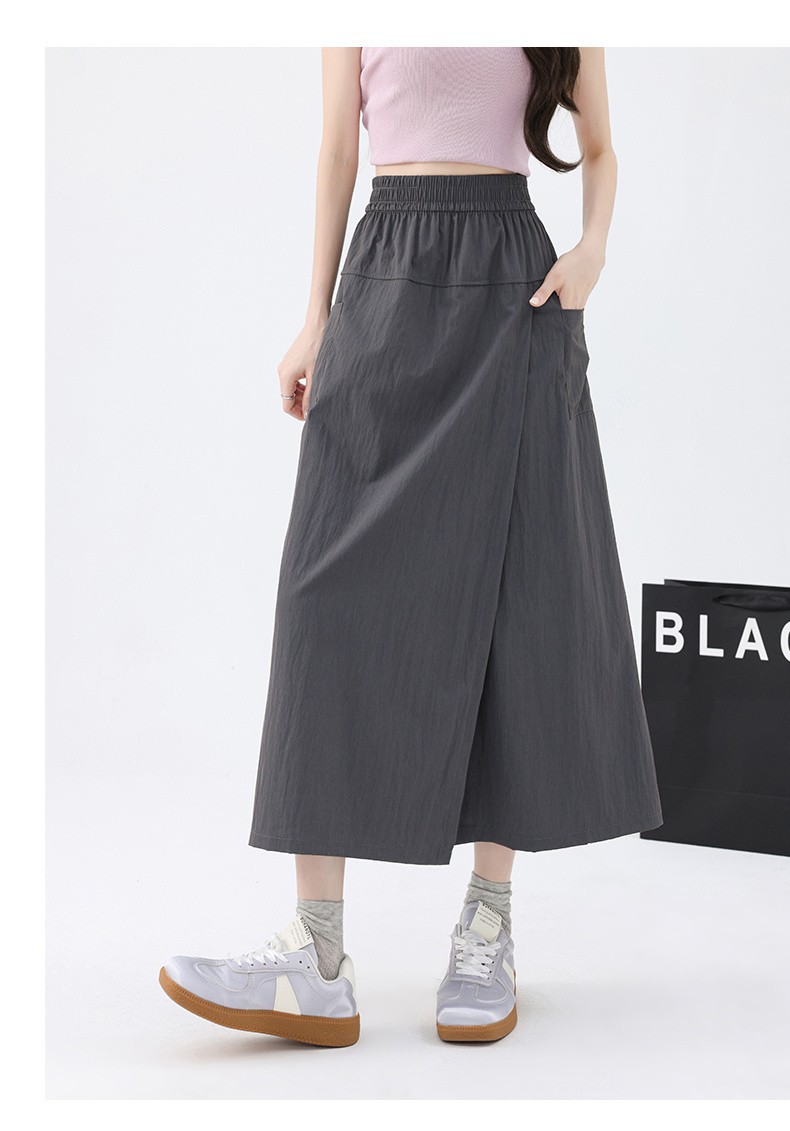 야마모토 여성용 카고 스커트 2025년 여름 신상 하이웨이스트 A라인 힙 스커트 캐주얼 쁘띠 아이스 실크 와이드 레그 팬츠 스커트