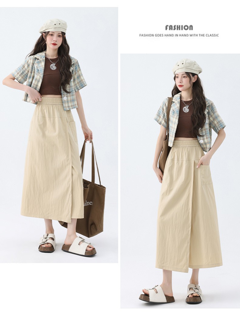 야마모토 여성용 카고 스커트 2025년 여름 신상 하이웨이스트 A라인 힙 스커트 캐주얼 쁘띠 아이스 실크 와이드 레그 팬츠 스커트스토어 가기