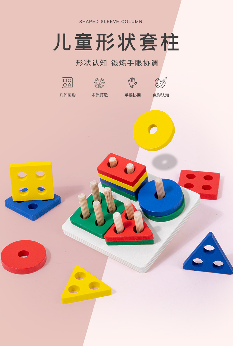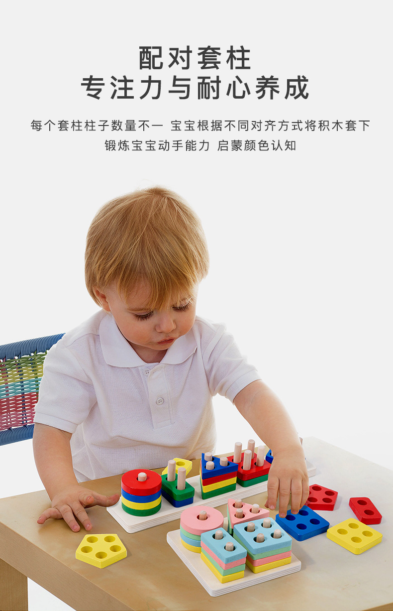 蒙氏玩具0-3岁 几何形状配对套柱 四套柱五套柱 toys
