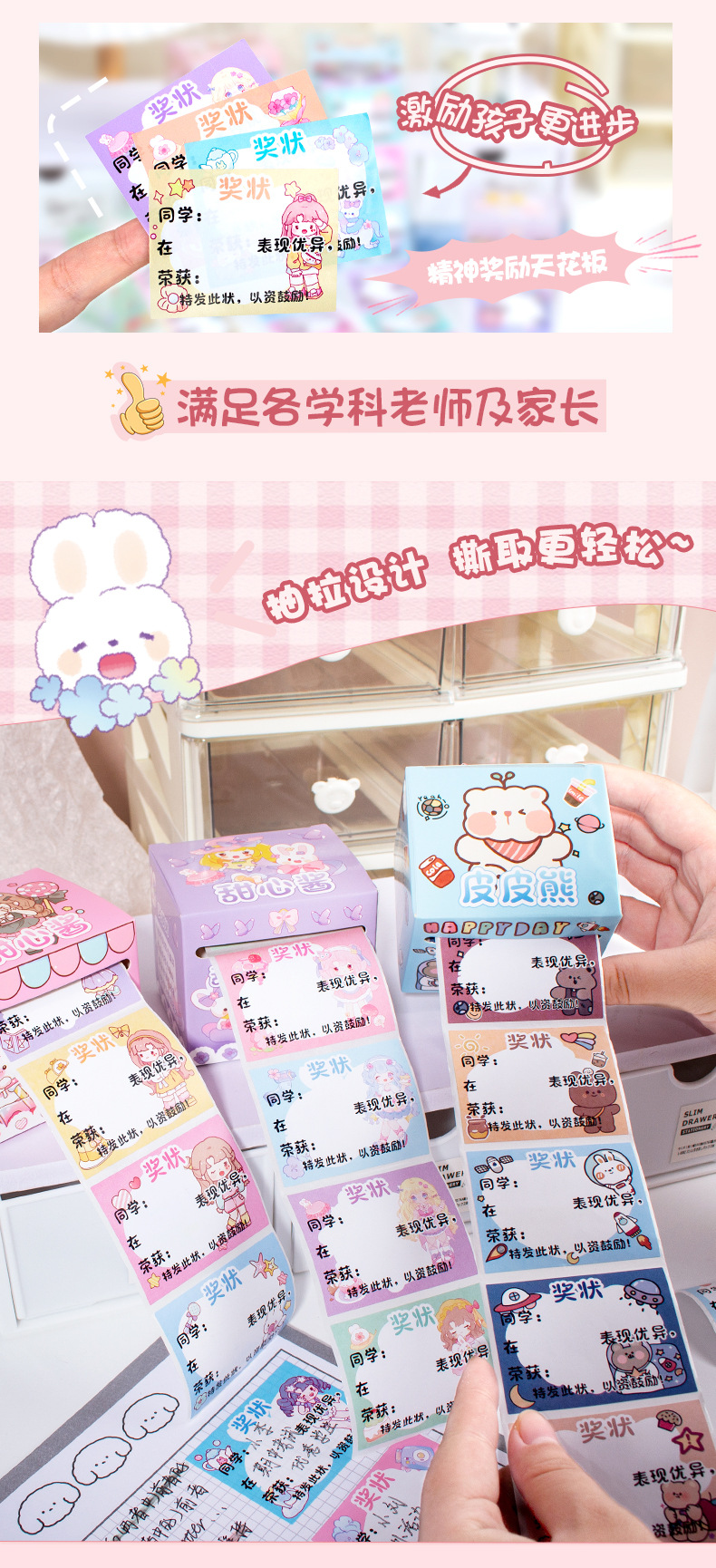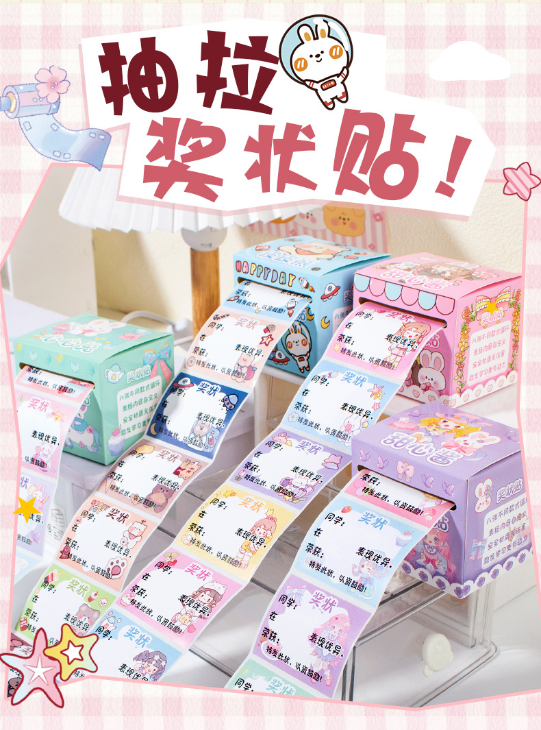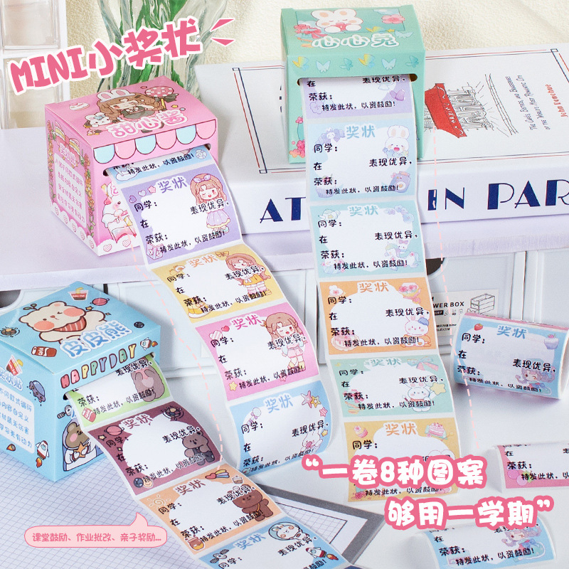 어린이 만화 미니 인증서 스티커 학생 귀여운 보상 스티커 유치원 칭찬 필기 표창 스티커 도매