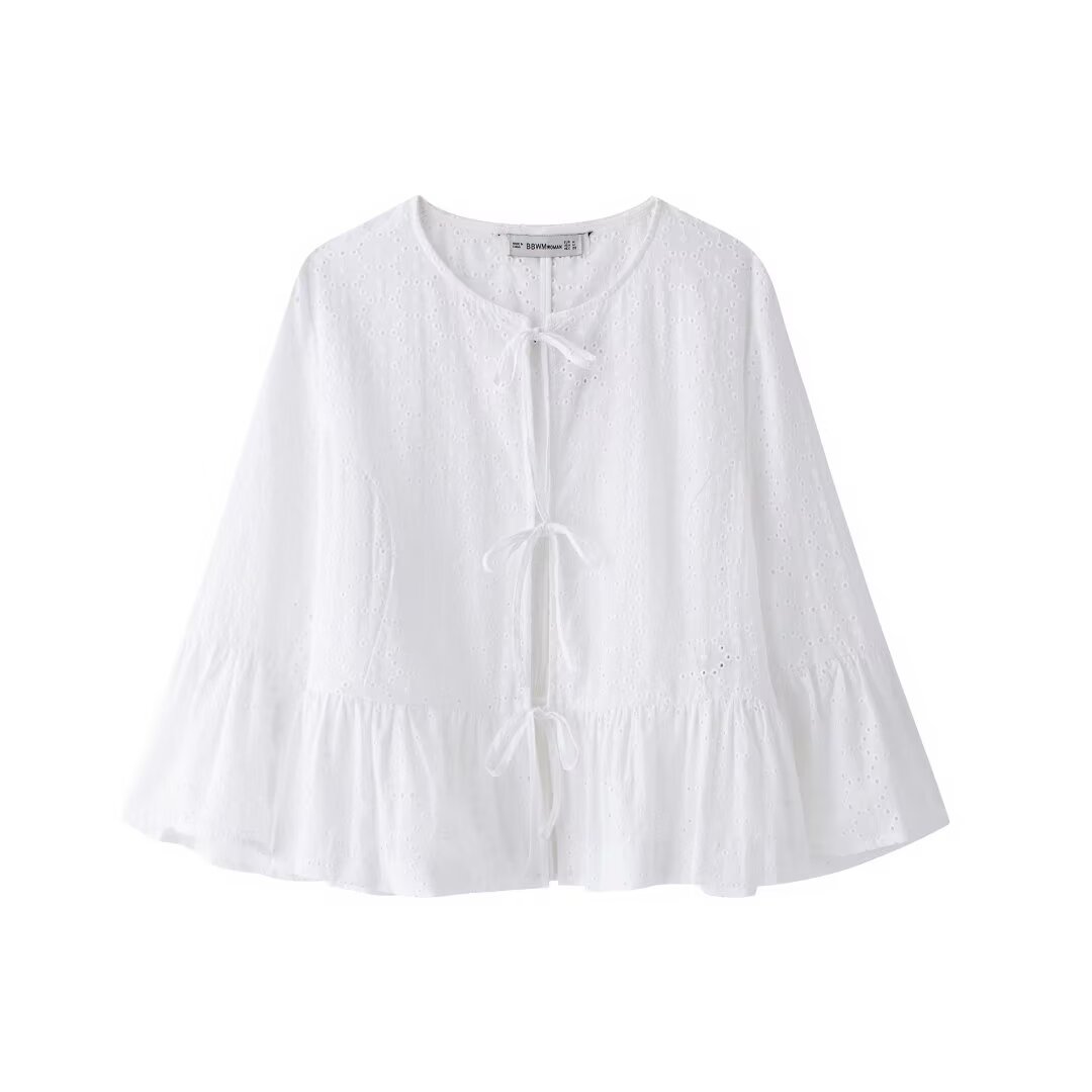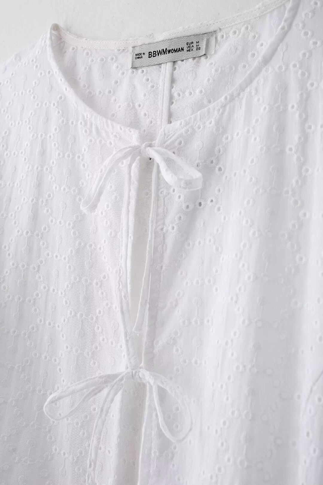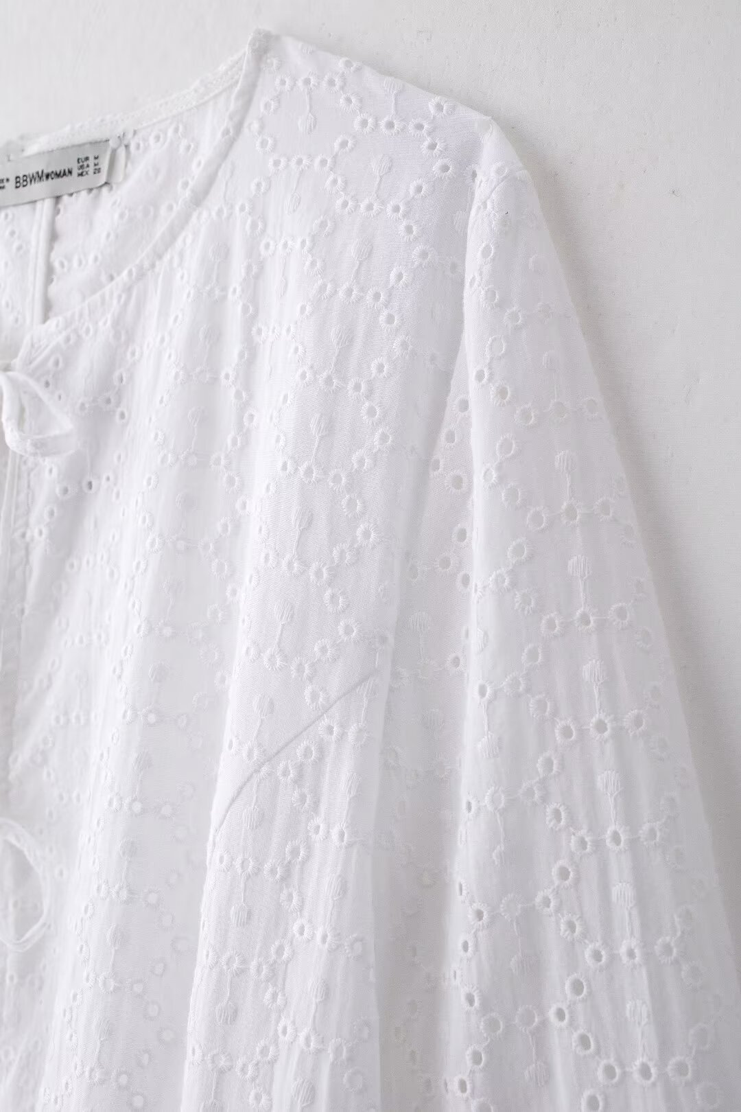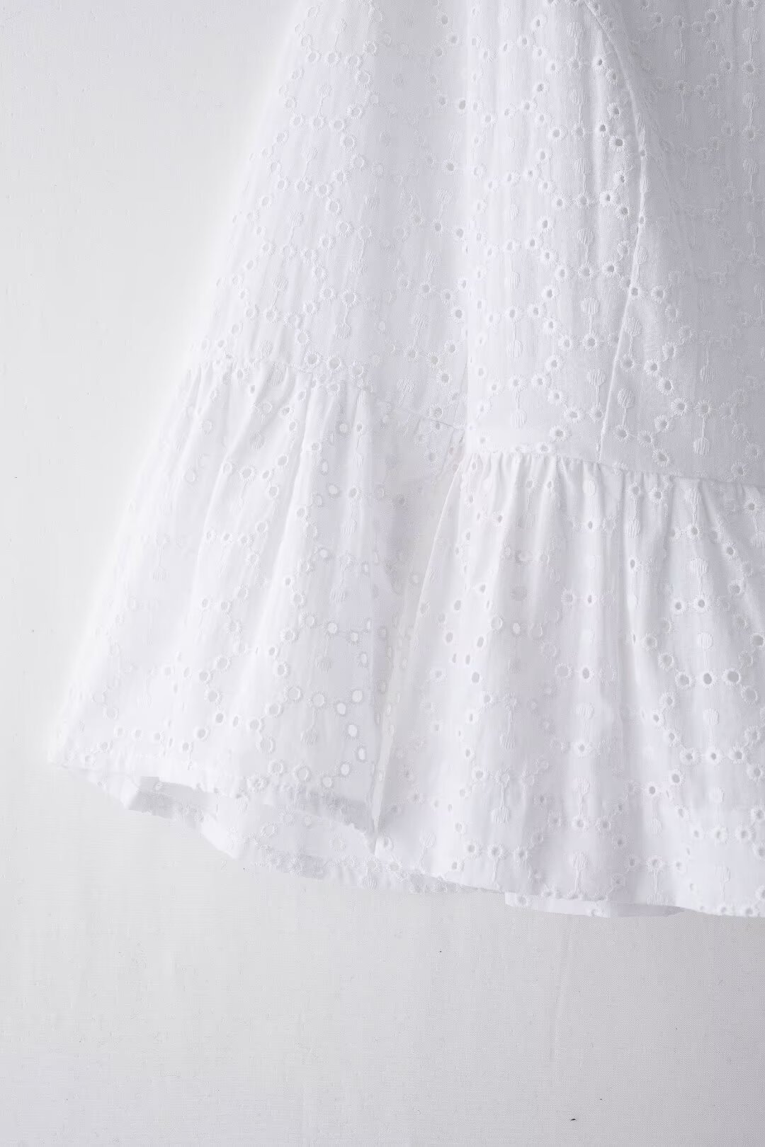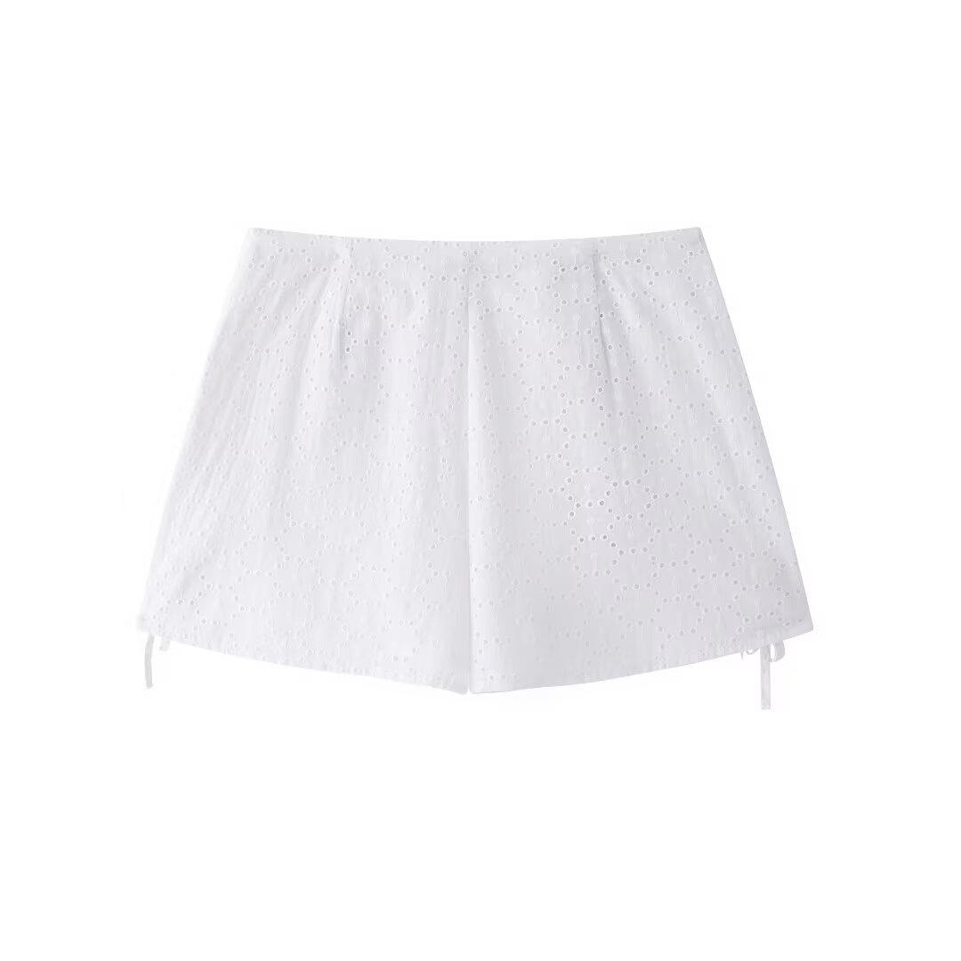 국경 AliExpress 새로운 여성 의류 대외 무역 도매 ZR 재고 중공 자수 셔츠 캐주얼 반바지 세트스토어 가기