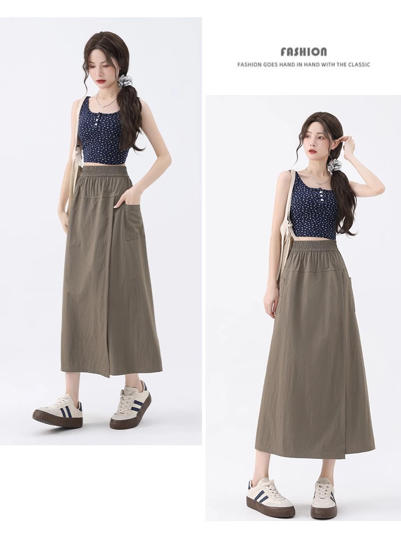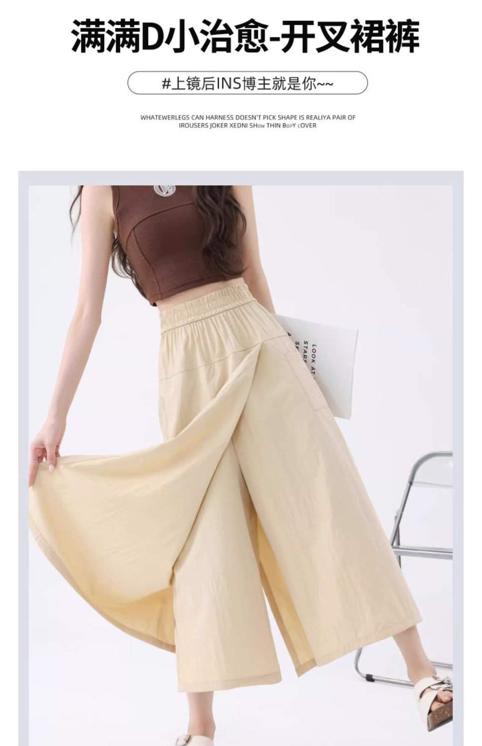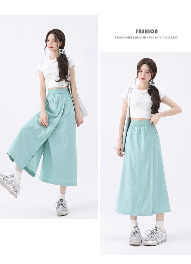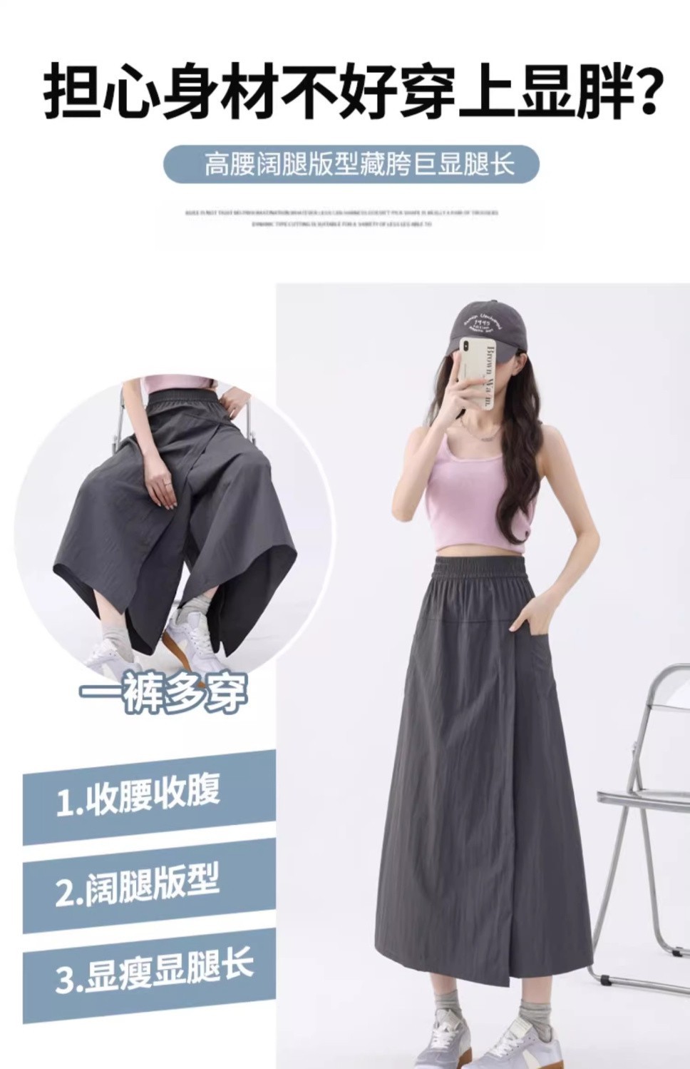 2025년 신상 여름 스타일 시원하고 통기성이 좋은 치마바지, 스타일리시하고 슬림한 우산 스커트, 여성용 작업복 스커트, Xiaohongshu 같은 스타일의 대외 무역스토어 가기