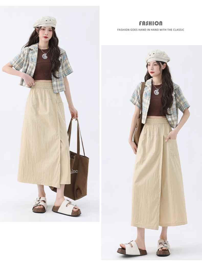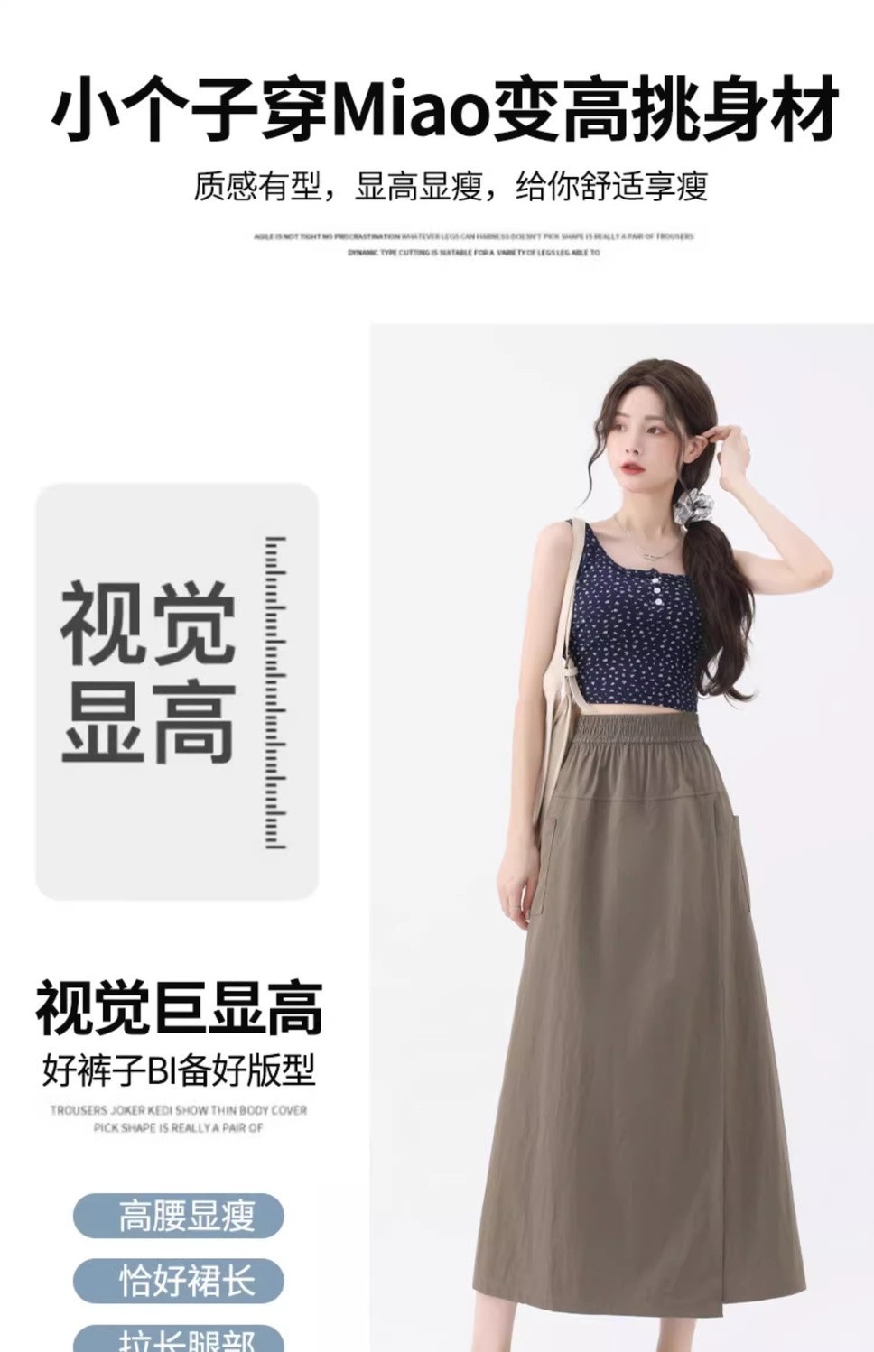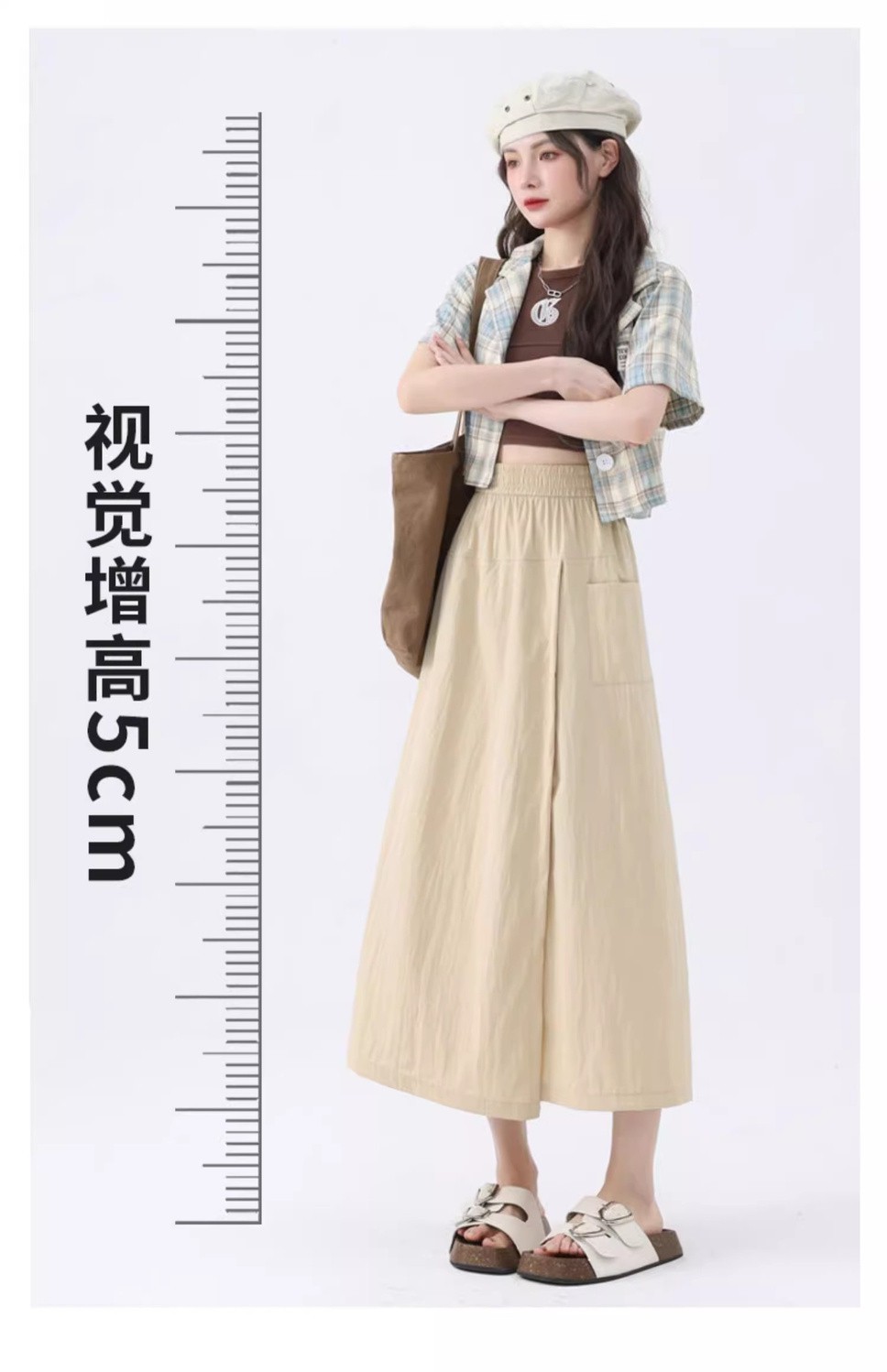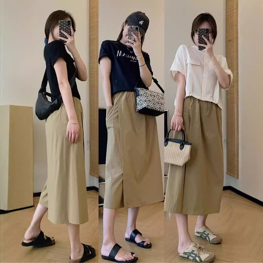 2025년 신상 여름 스타일 시원하고 통기성이 좋은 치마바지, 스타일리시하고 슬림한 우산 스커트, 여성용 작업복 스커트, Xiaohongshu 같은 스타일의 대외 무역