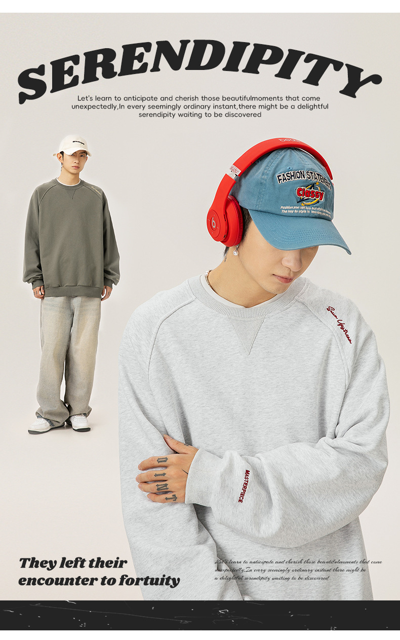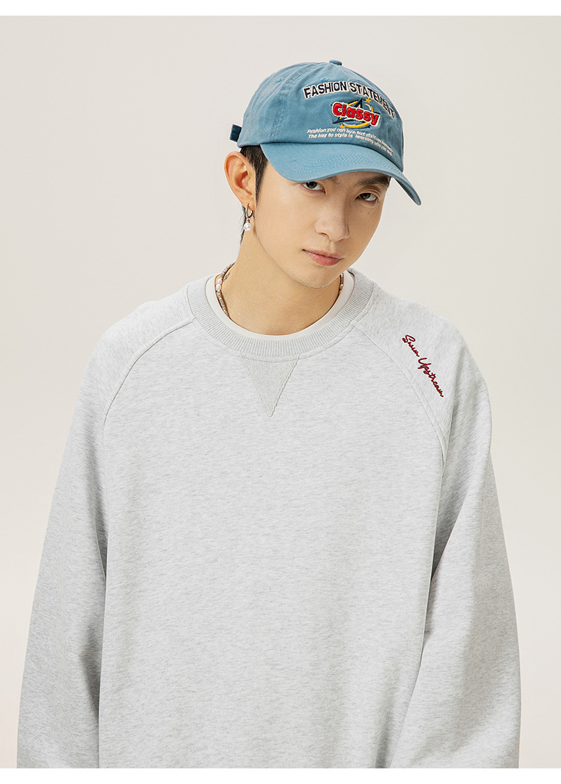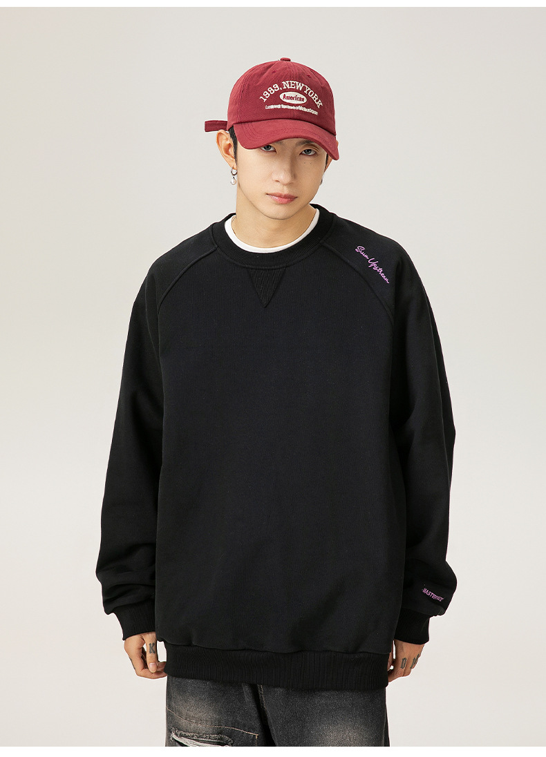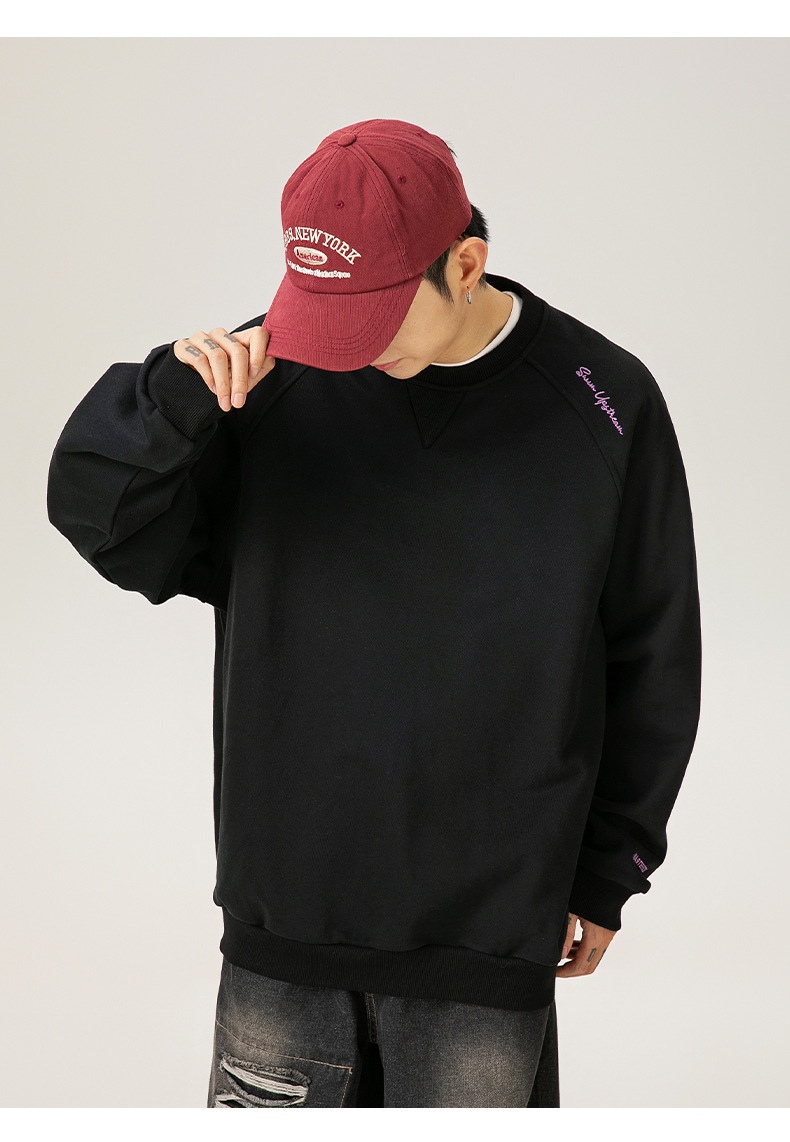 구조적 접합 400G 헤비급 라운드 넥 스웨트 셔츠 남성용 아메리칸 레터 자수 라글란 슬리브 풀오버 루즈 자켓 트렌디스토어 가기