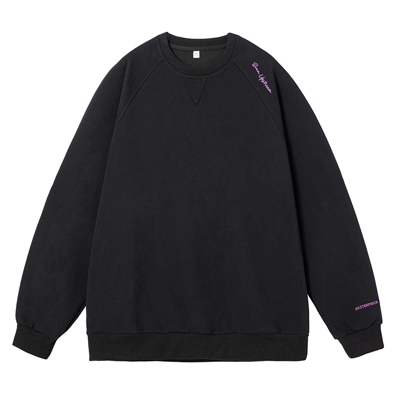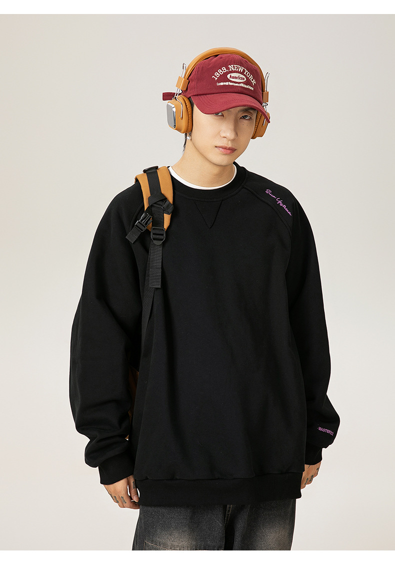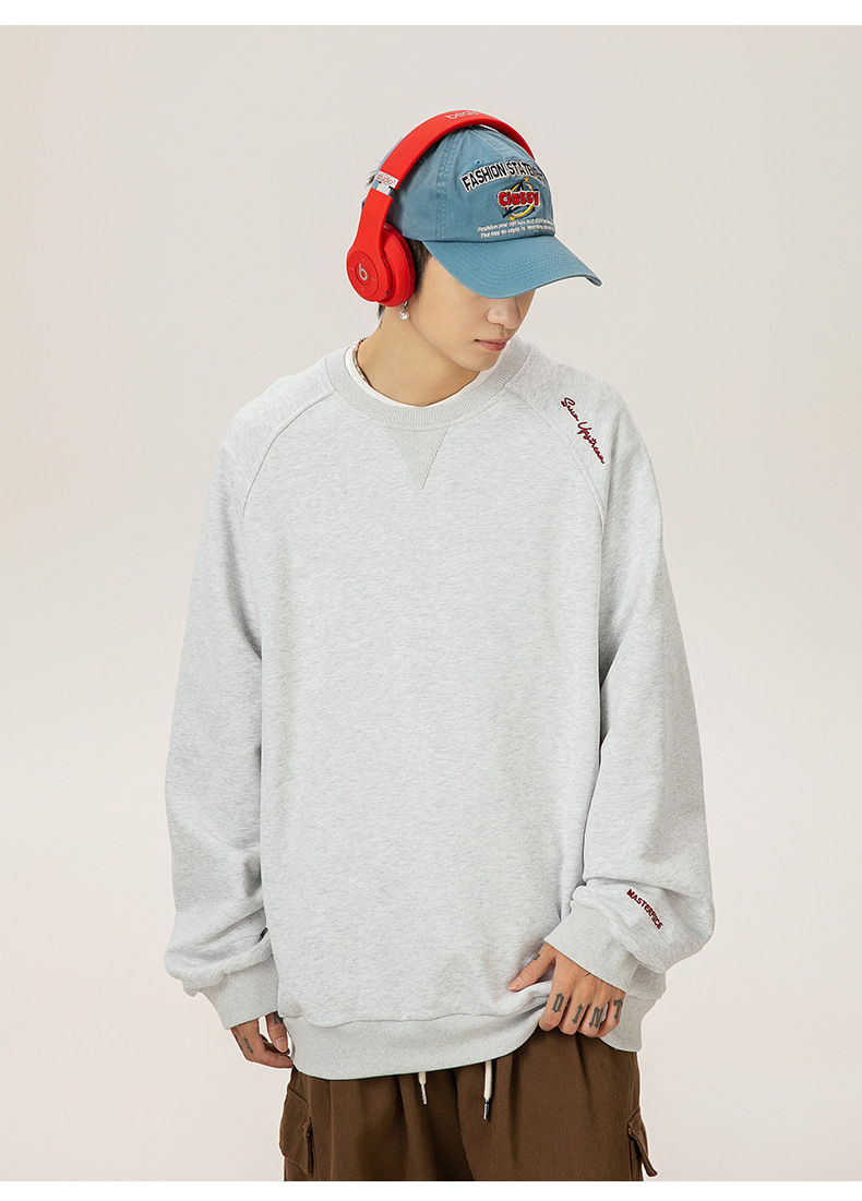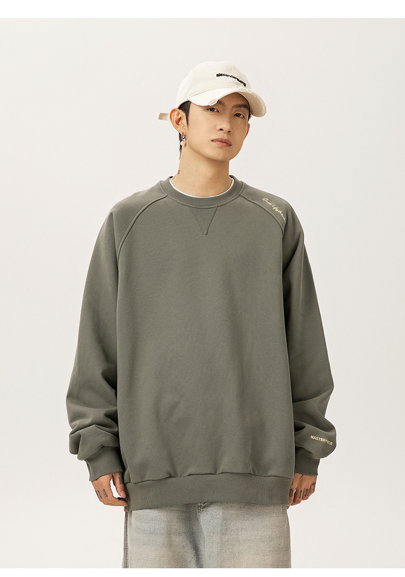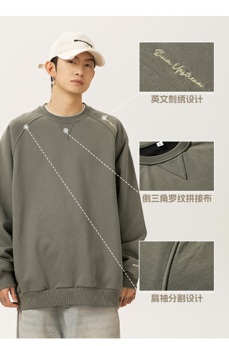구조적 접합 400G 헤비급 라운드 넥 스웨트 셔츠 남성용 아메리칸 레터 자수 라글란 슬리브 풀오버 루즈 자켓 트렌디