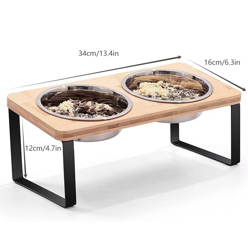 고양이 밥그릇, 반려동물 밥그릇, 목 보호, 넘어짐 방지, 스테인리스 고양이 밥그릇, 대나무 높이 조절대, 강아지용, 새 반려동물 전용