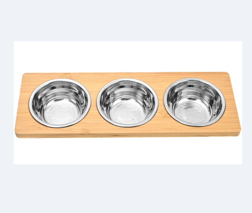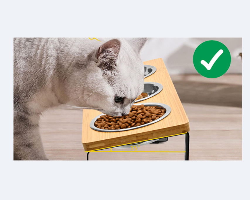 고양이 밥그릇, 반려동물 밥그릇, 목 보호, 넘어짐 방지, 스테인리스 고양이 밥그릇, 대나무 높이 조절대, 강아지용, 새 반려동물 전용스토어 가기