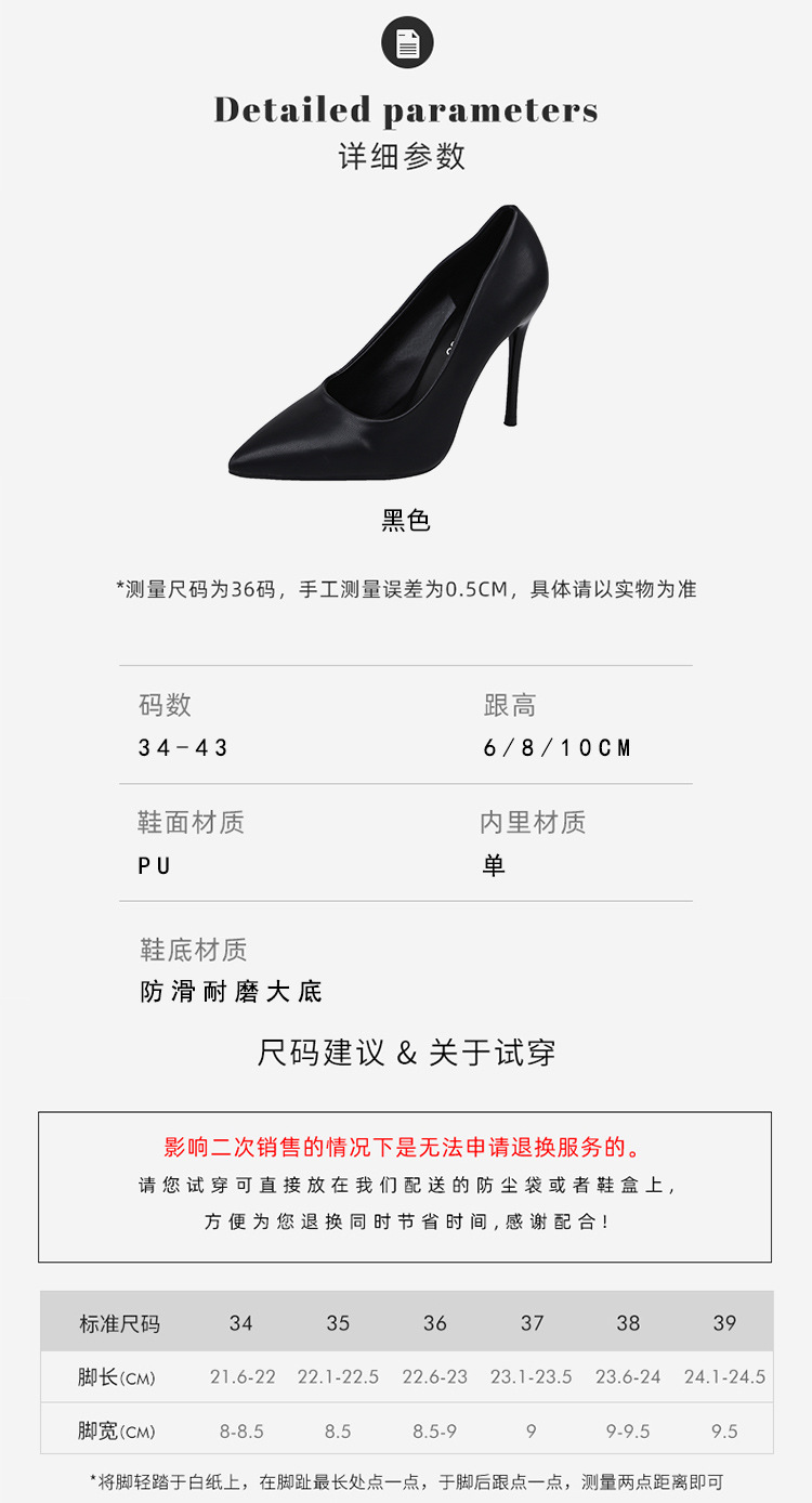 전문 작업 신발 소프트 솔 롱 스탠드 피곤하지 않은 기질 올매치 하이 엔드 포인팅 하이힐 스틸레토 힐 패션 올매치 싱글 레이어 신발스토어 가기
