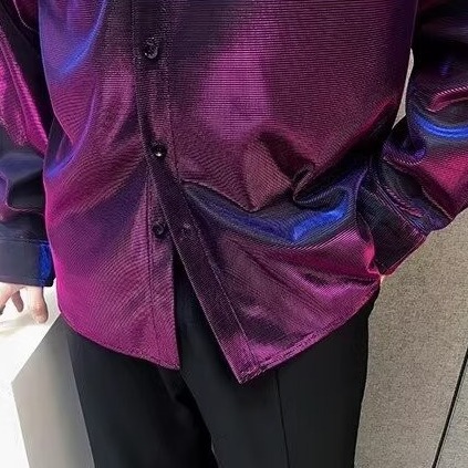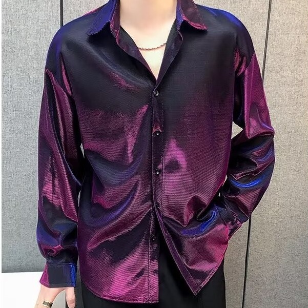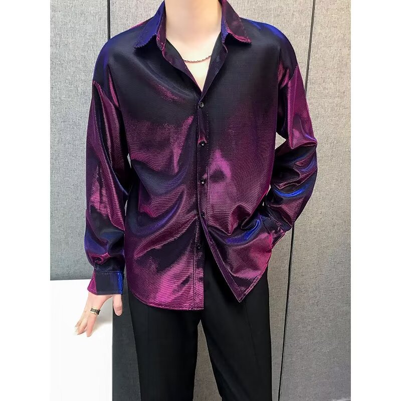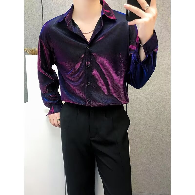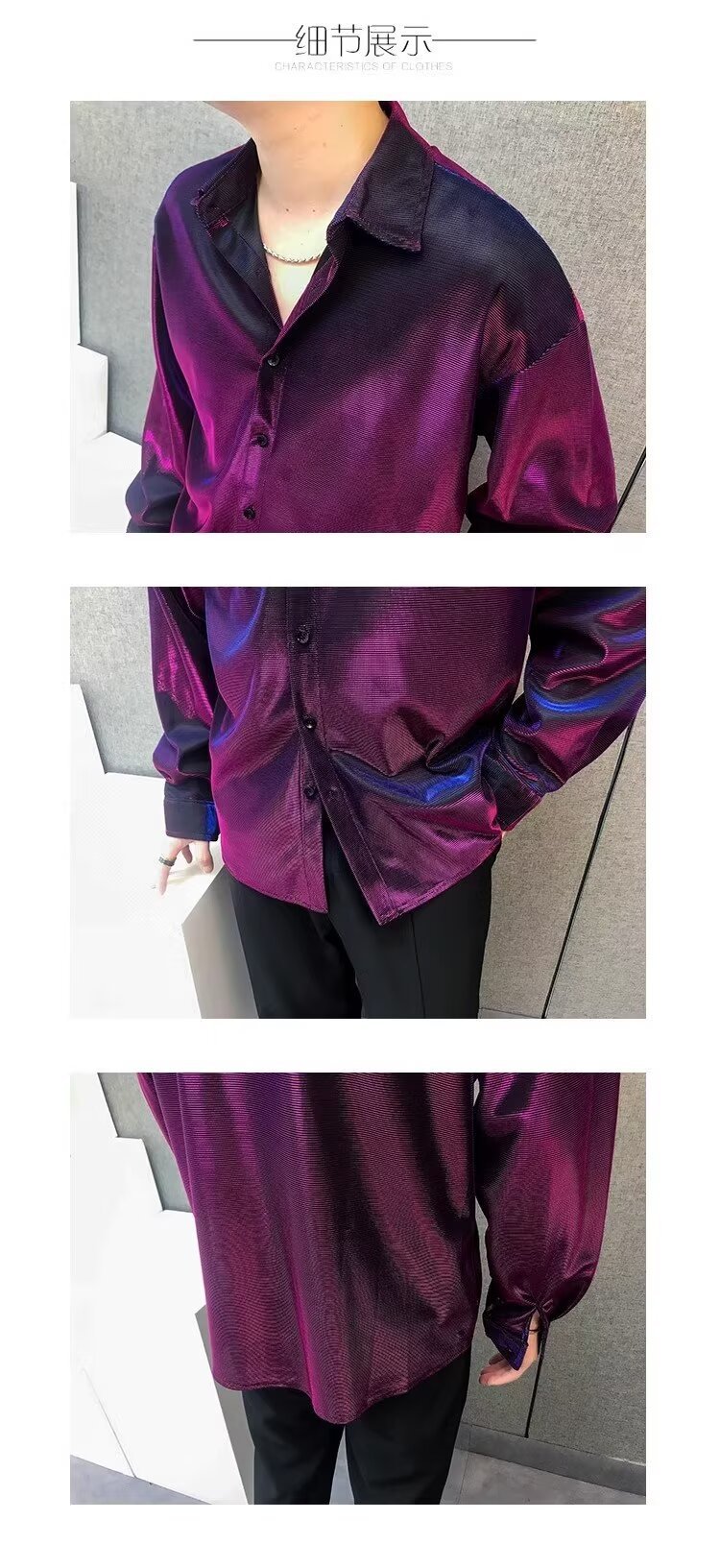 가을 빛 원래 패션 브랜드 개성 밝은 색상 시원한 러피 잘 생긴 노철 셔츠 남성 패션 스팽글 틈새 셔츠 패션스토어 가기