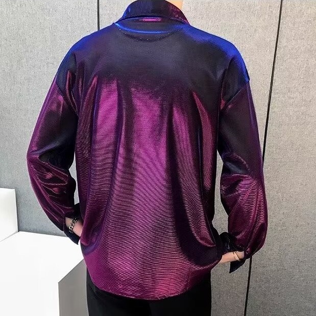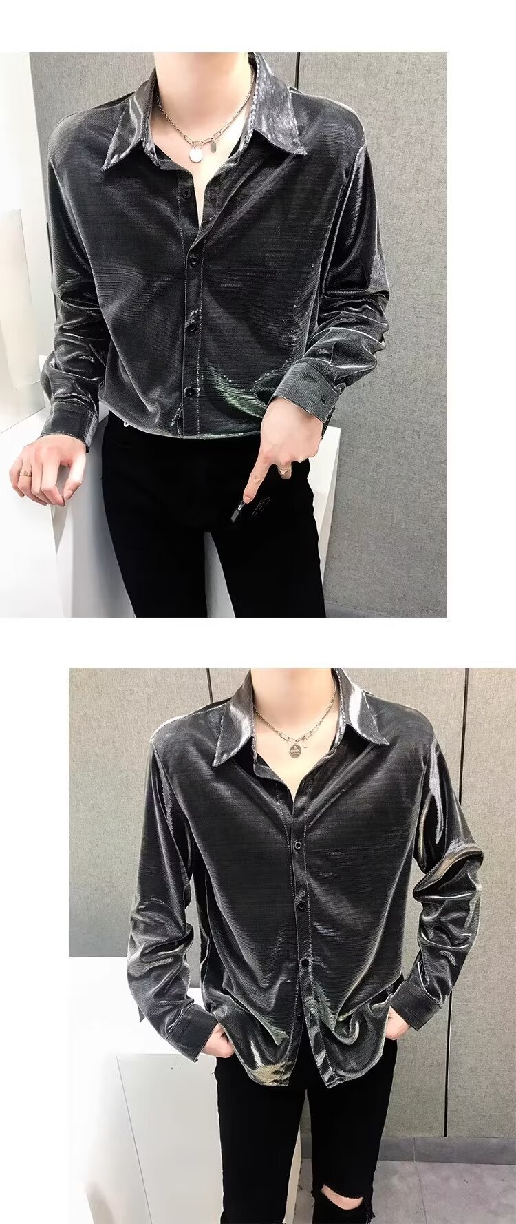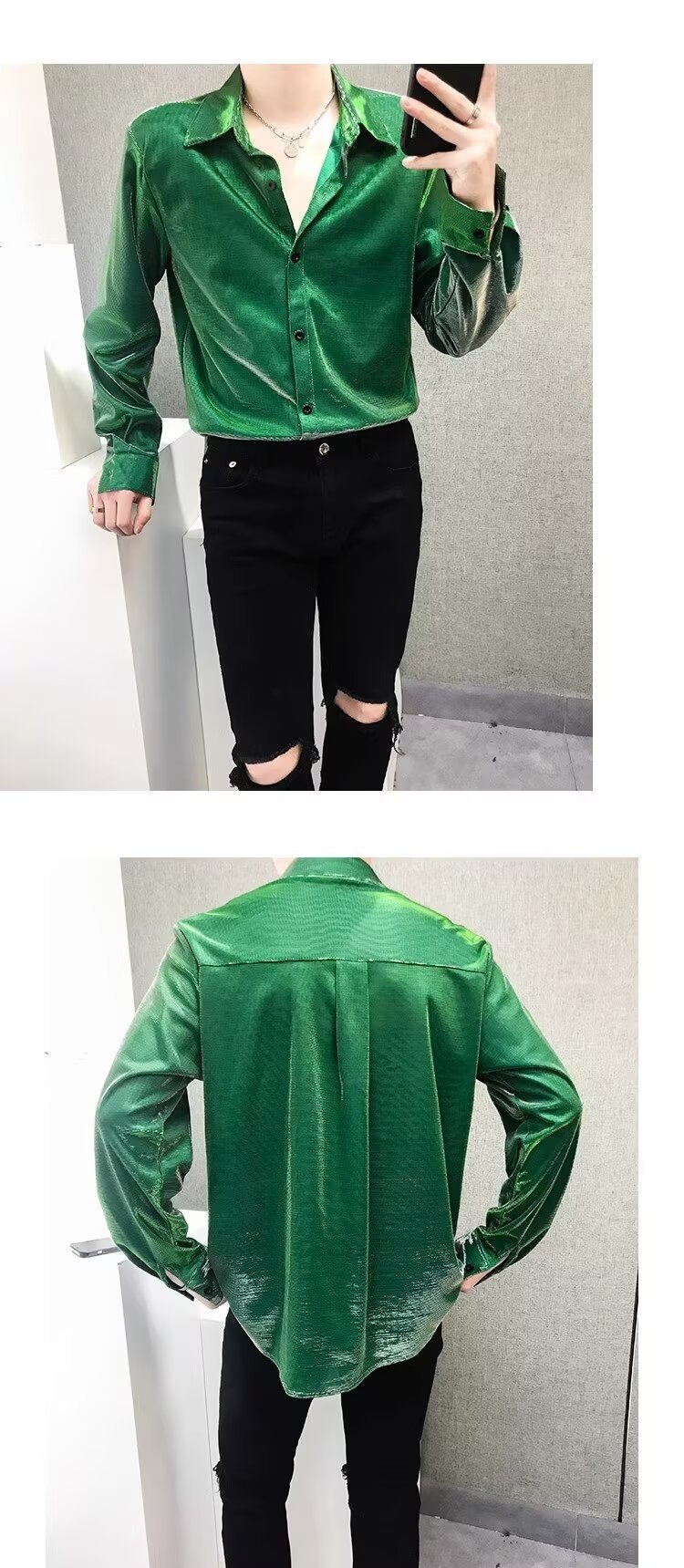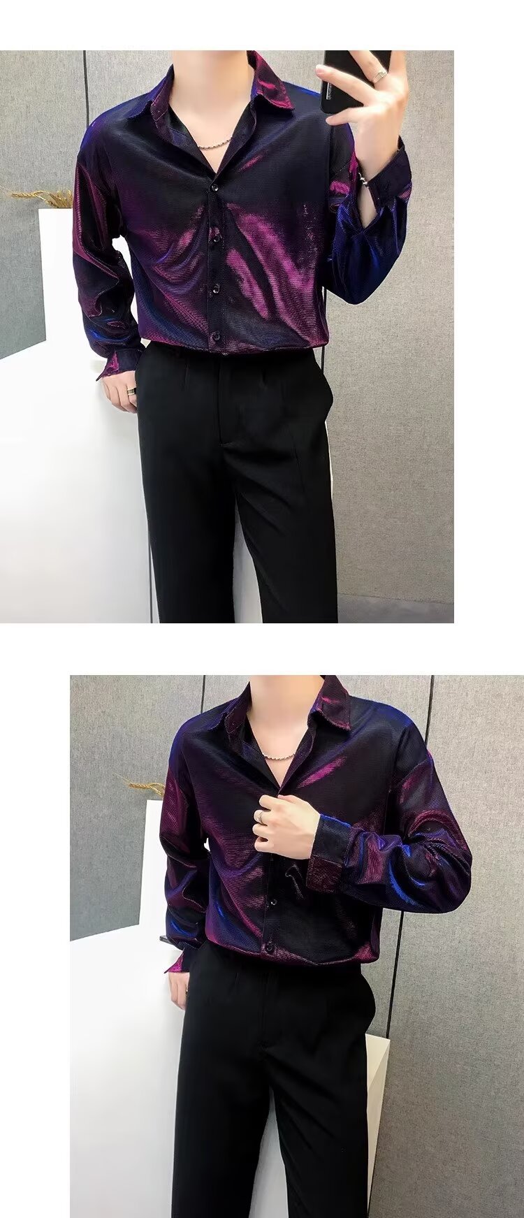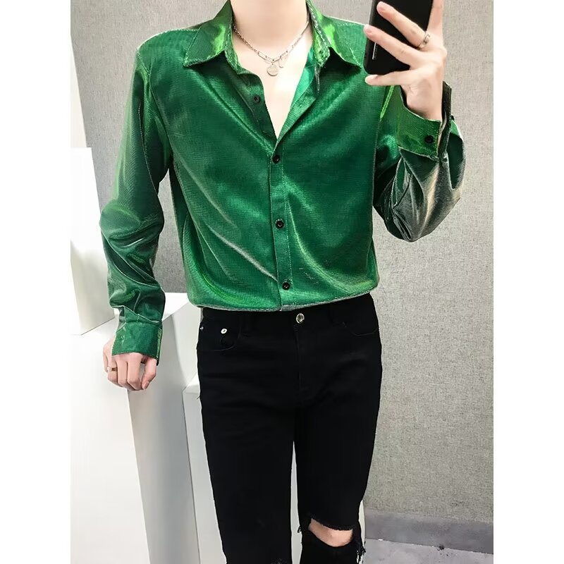 가을 빛 원래 패션 브랜드 개성 밝은 색상 시원한 러피 잘 생긴 노철 셔츠 남성 패션 스팽글 틈새 셔츠 패션