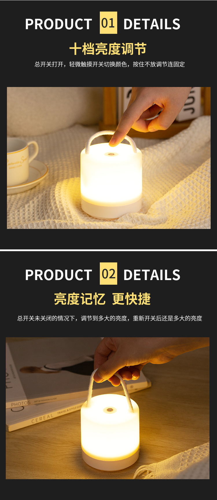 충전 터치 야간 조명 침실 따뜻한 빛 분위기 밝은 밤 수면 눈 보호 부드러운 조명 led 침대 옆 빛 수면 조명