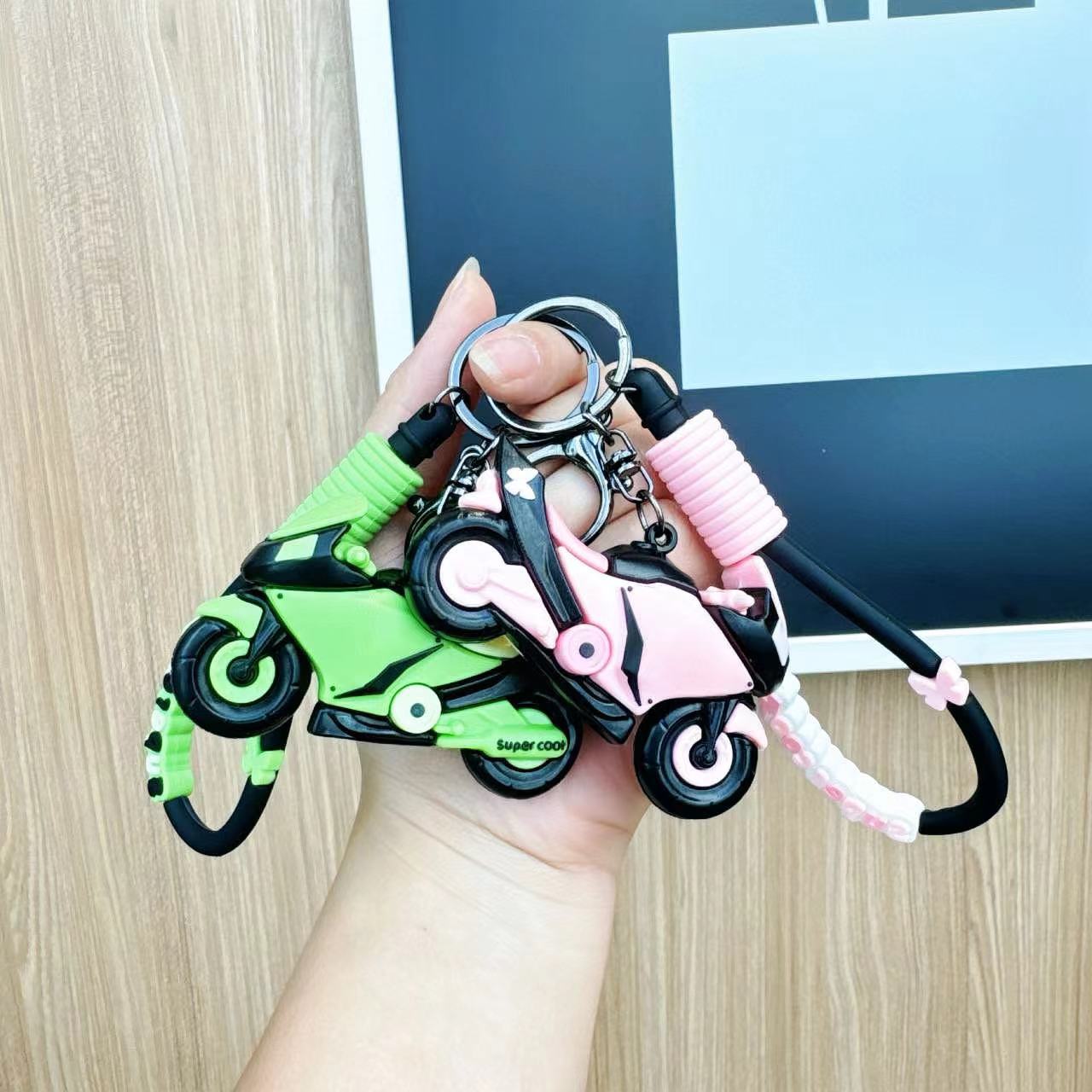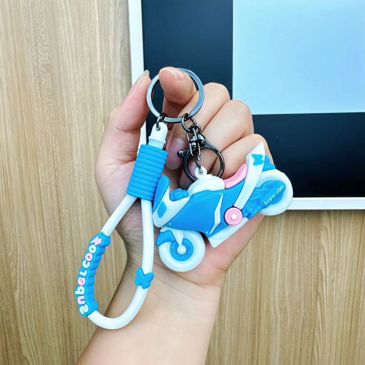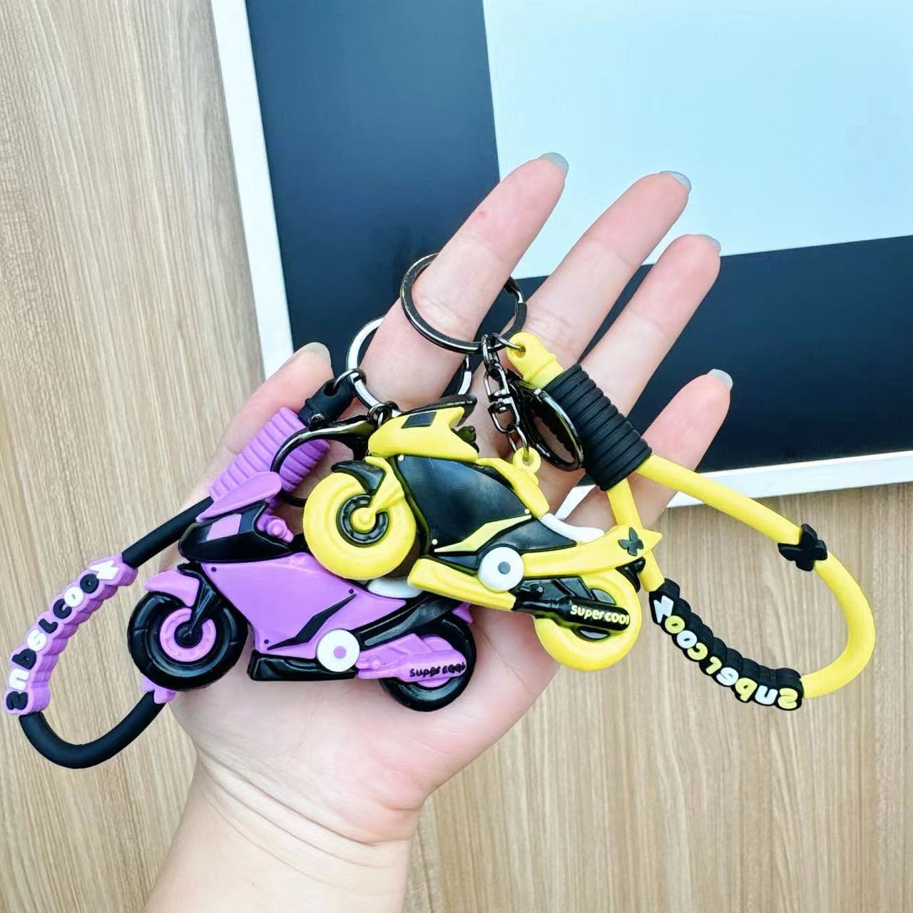 만화 스테레오 오토바이 인형 키 체인 창조적 인 펜던트 자동차 키 체인 남성 학생 학교 가방 교수형 작은 선물