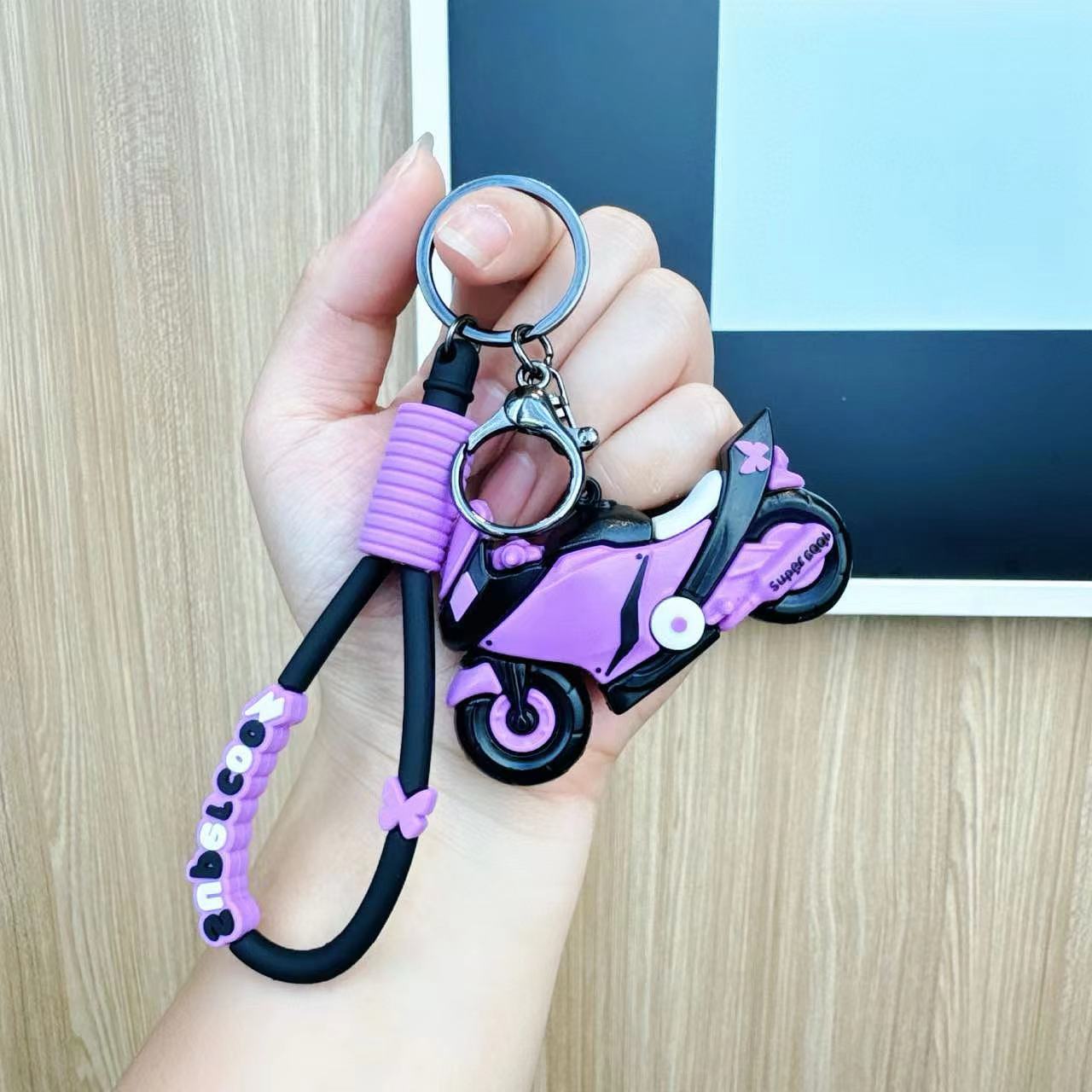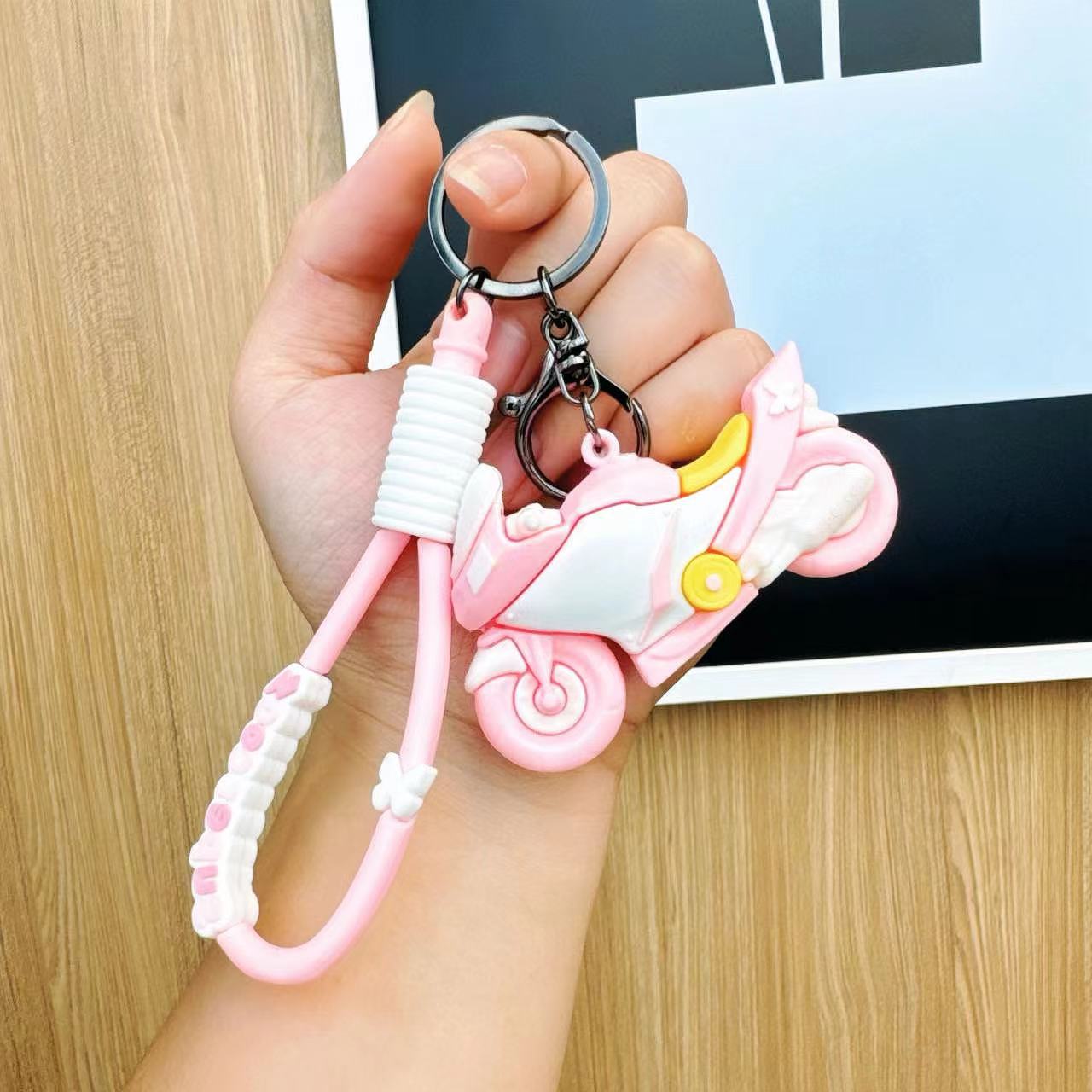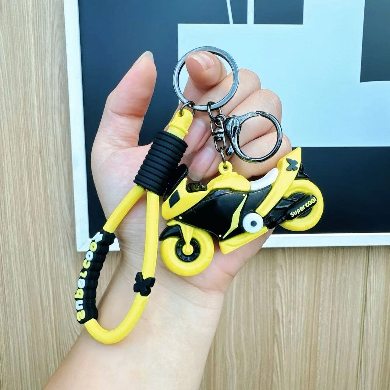 만화 스테레오 오토바이 인형 키 체인 창조적 인 펜던트 자동차 키 체인 남성 학생 학교 가방 교수형 작은 선물