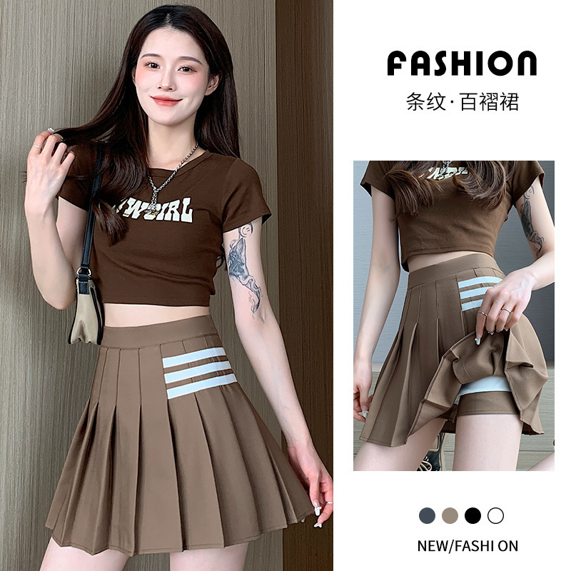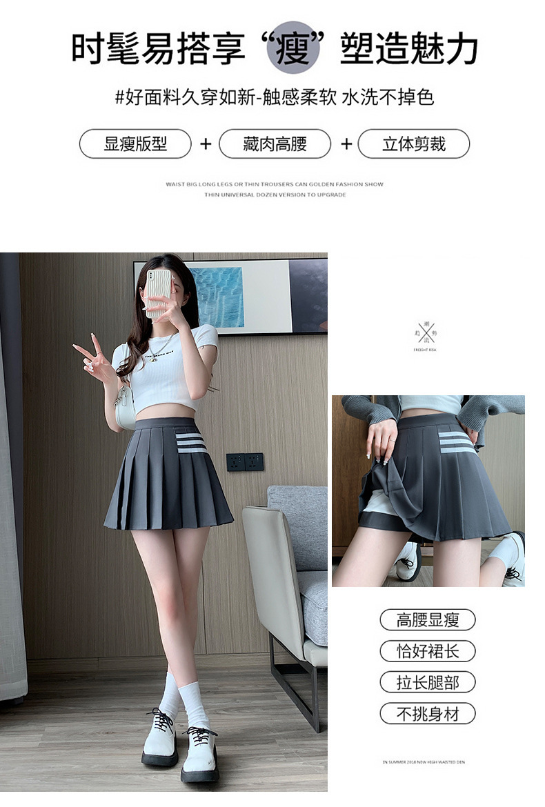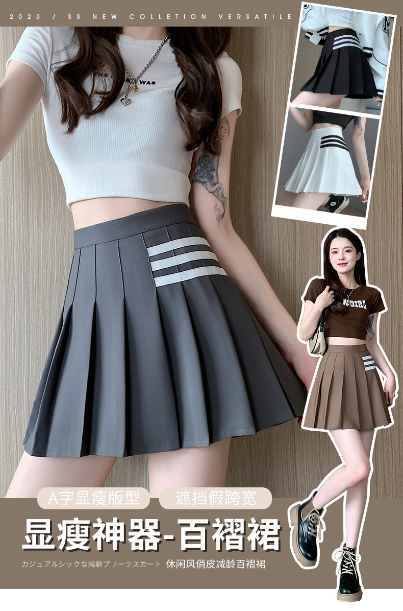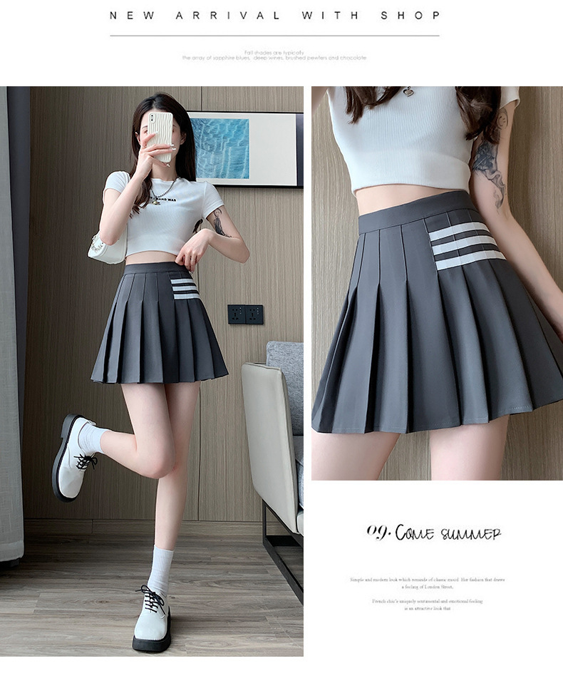 검은 주름 치마 여름 여자 A-라인 높은 허리 새로운 주름 치마 스트라이프 작은 대학 스타일 JK 스커트스토어 가기