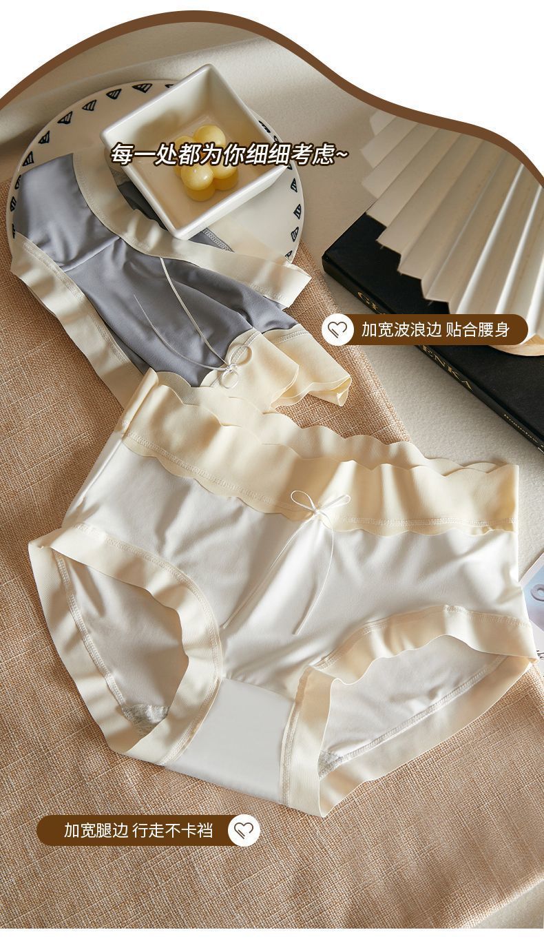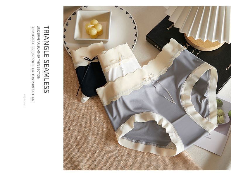 여름 빛 아이스 실크 여성의 tracless 속옷 편안한 통기성 코튼 크로트 중간 허리 알몸 빠른 건조 소녀 브리프스토어 가기