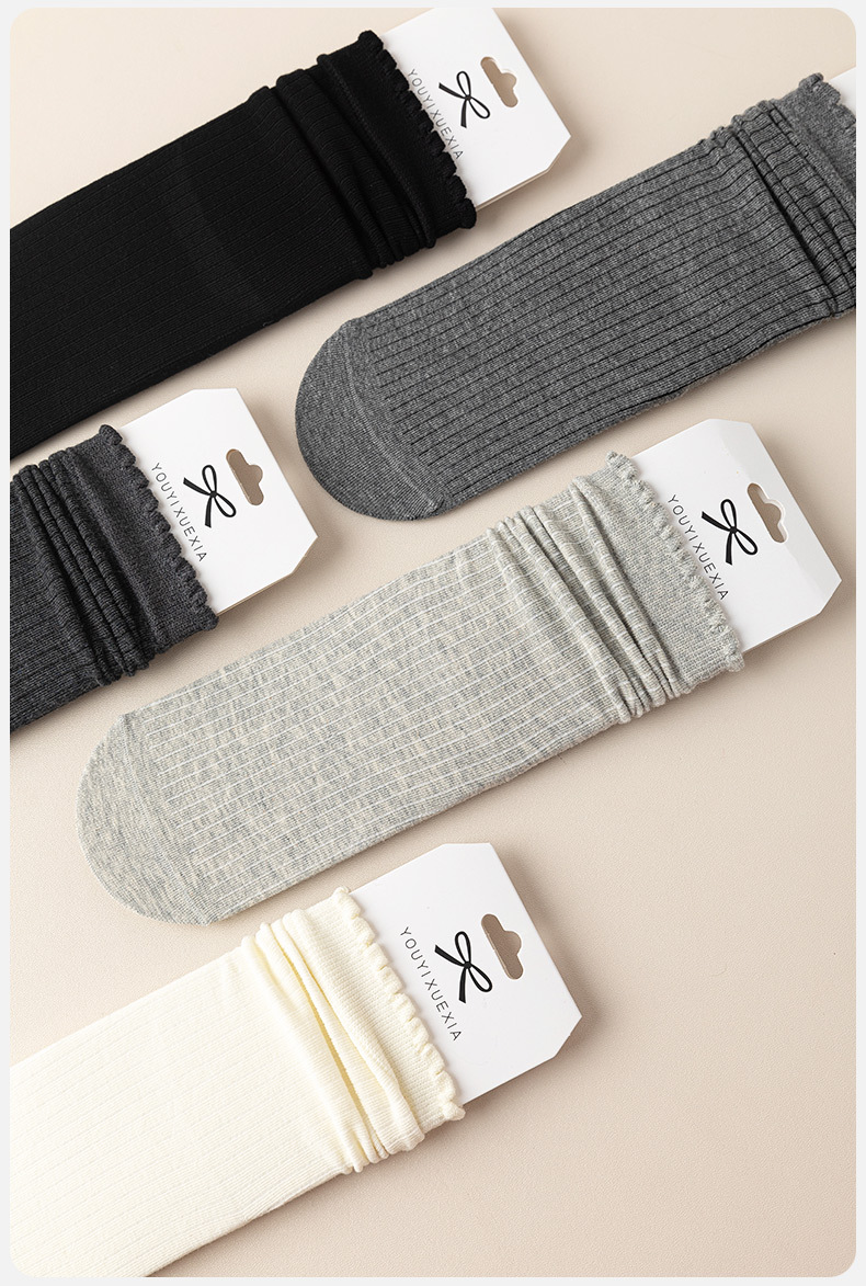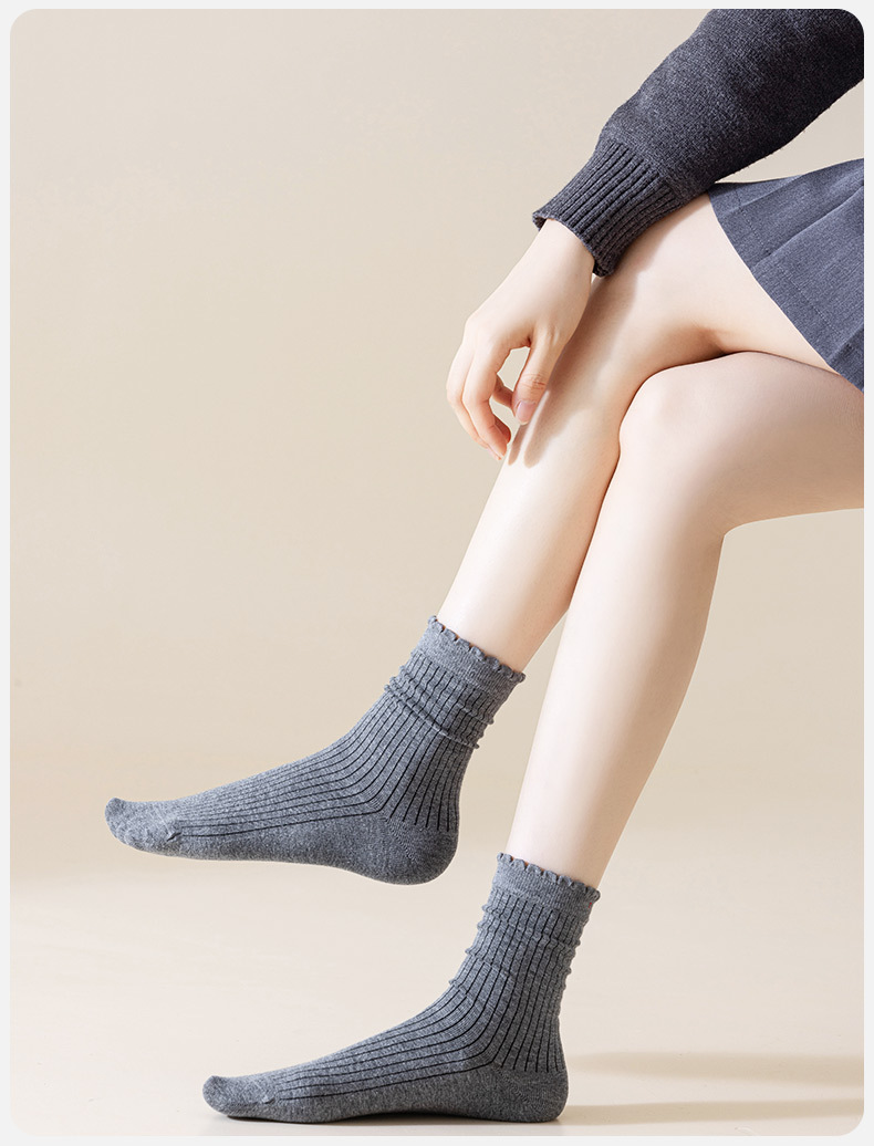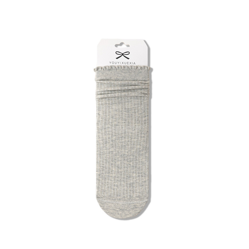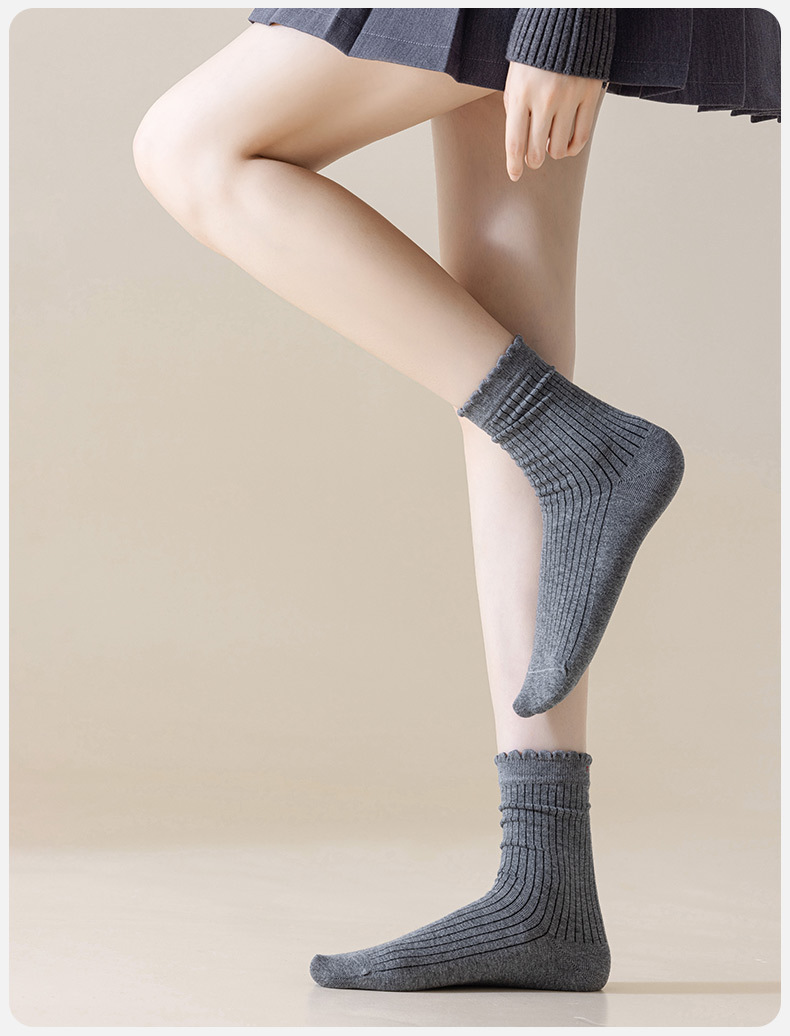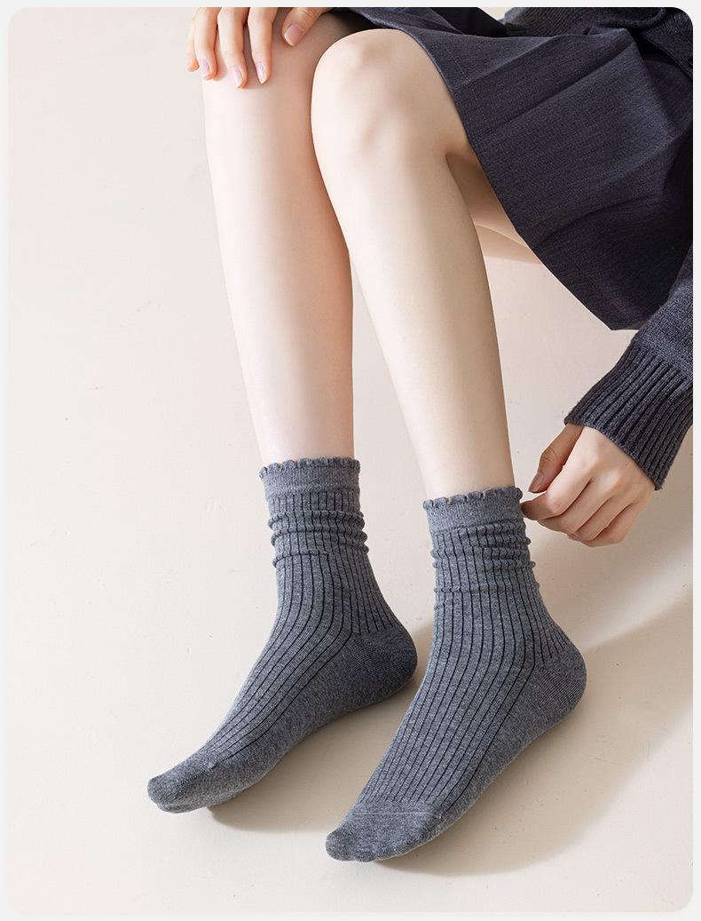 우드 이어 사이드 파일 양말 가을과 겨울 새로운 단색 피트 스트립 미드 튜브 양말 회색 다용도 양말 여성