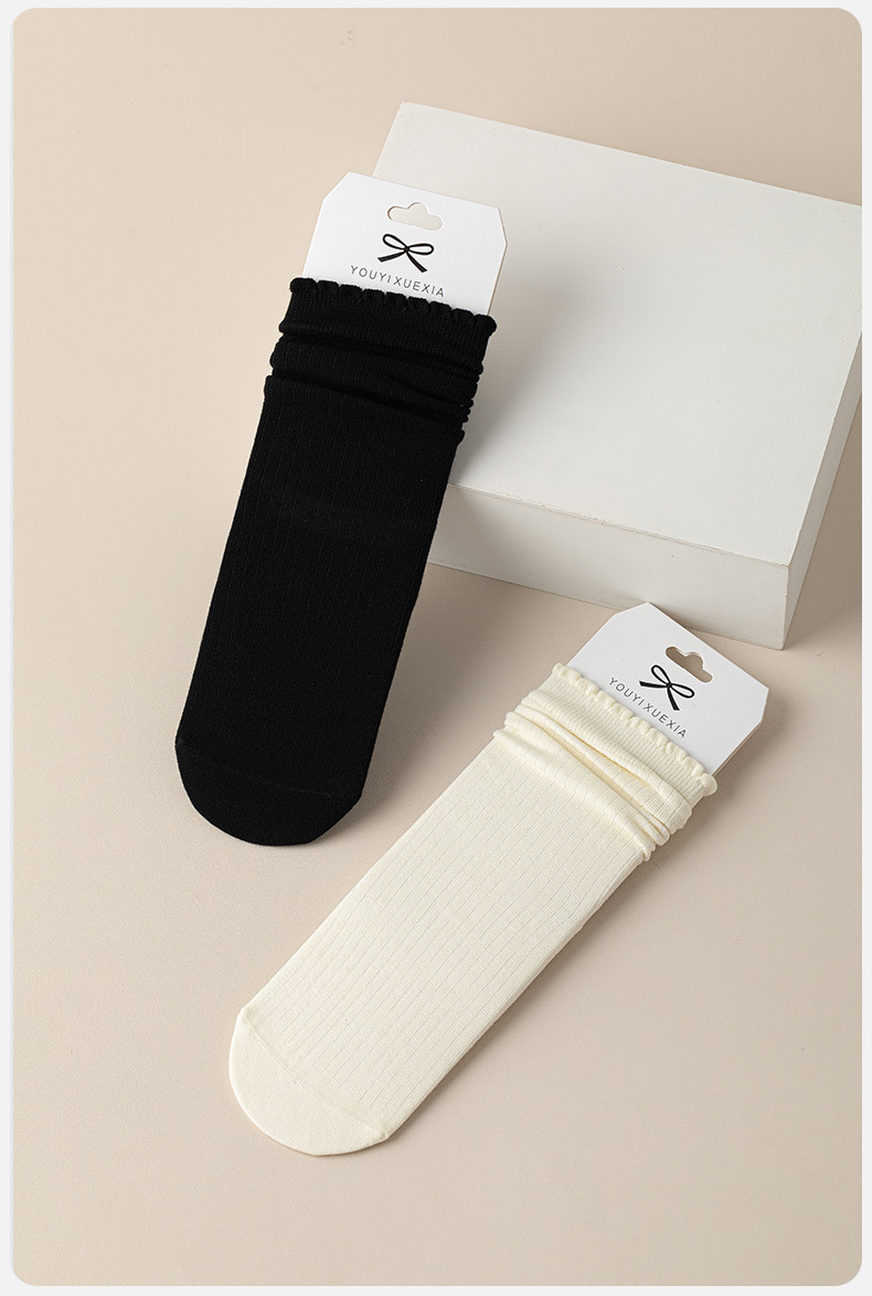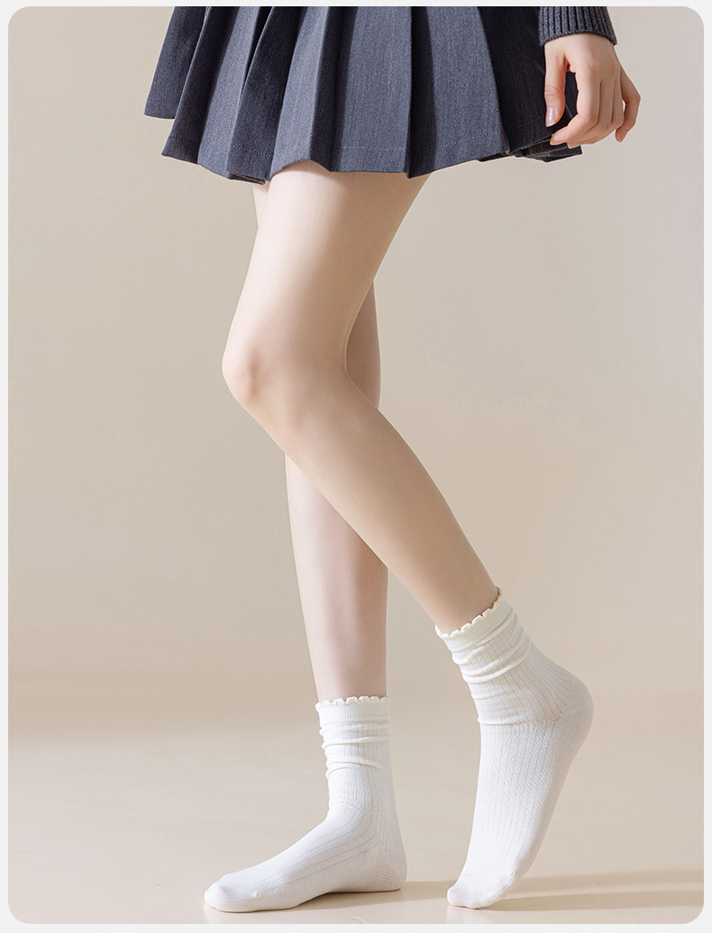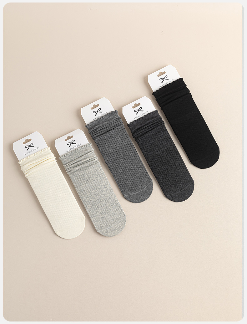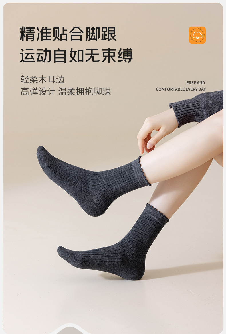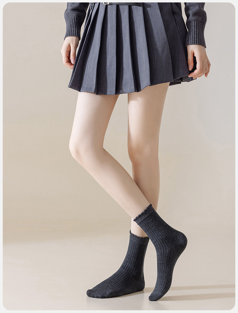 우드 이어 사이드 파일 양말 가을과 겨울 새로운 단색 피트 스트립 미드 튜브 양말 회색 다용도 양말 여성