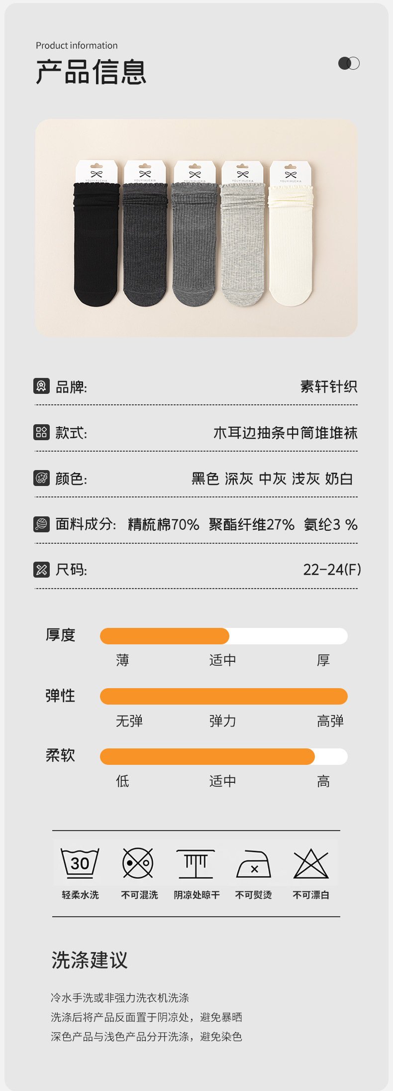우드 이어 사이드 파일 양말 가을과 겨울 새로운 단색 피트 스트립 미드 튜브 양말 회색 다용도 양말 여성스토어 가기