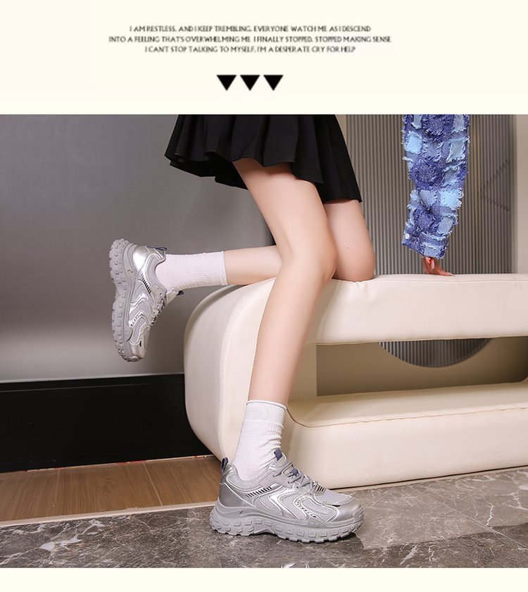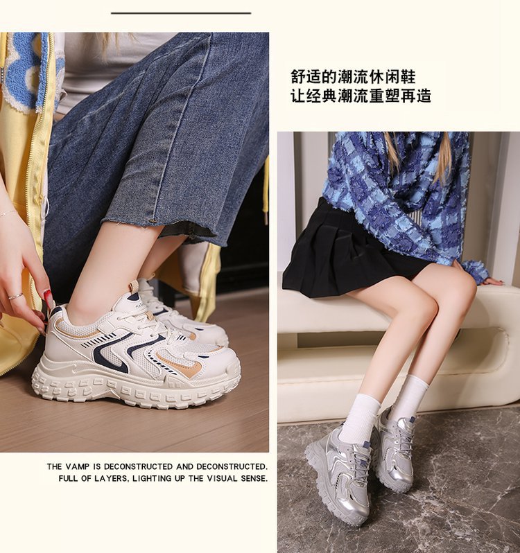 두꺼운 밑창 메쉬 스포츠 캐주얼 신발 여성의 2024 가을 새로운 패션 아빠 신발 편안한 통기성 조깅 신발스토어 가기