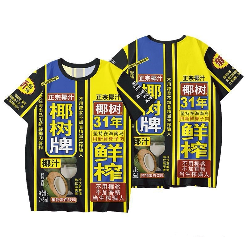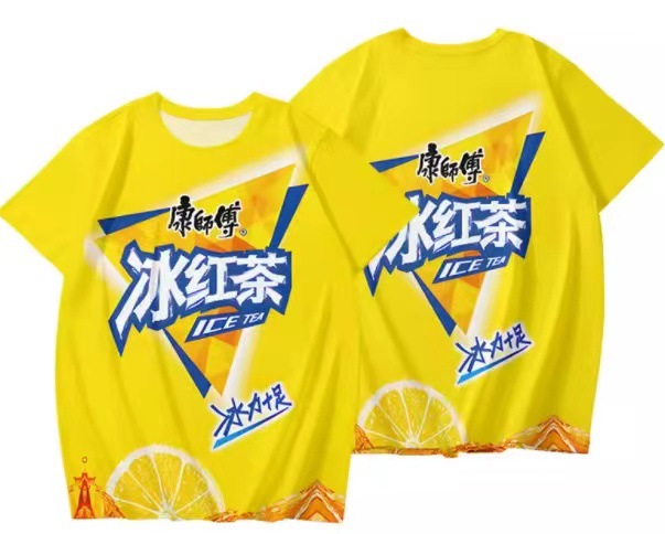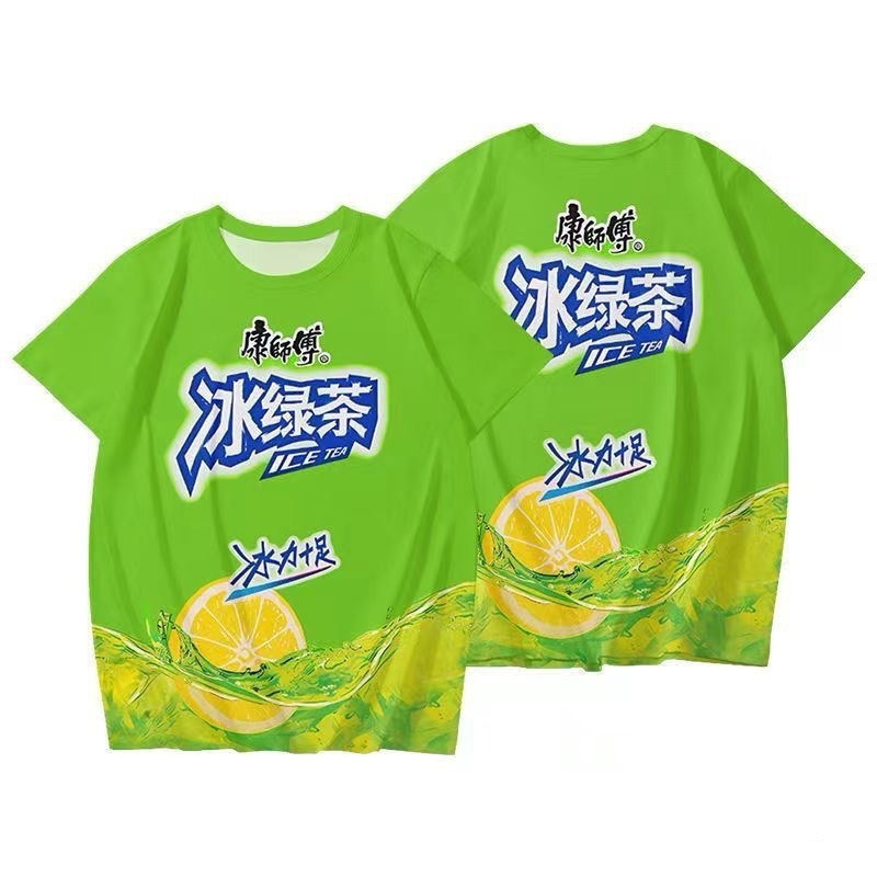 2024 여름 타오바오 악수 소리 폭발 얼음 홍차 창조적 인 3D 인쇄 티셔츠 캐주얼 올 매치 티셔츠 커플 짧은 소매