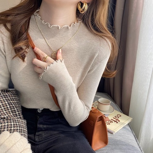 고급 컬러 매칭 크루 넥 니트베이스 셔츠 여성용 이른 봄 슬림 핏 풀오버 소프트 왁스 스웨터, 긴 소매 탑스토어 가기