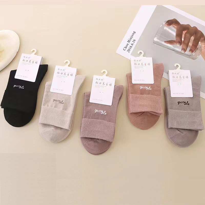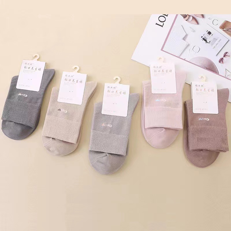 여성의 가을과 겨울 느슨한 입면 양말 간단한 만화 건강 다리 노인 면화 양말 브로케이드 실크 제나라 도매