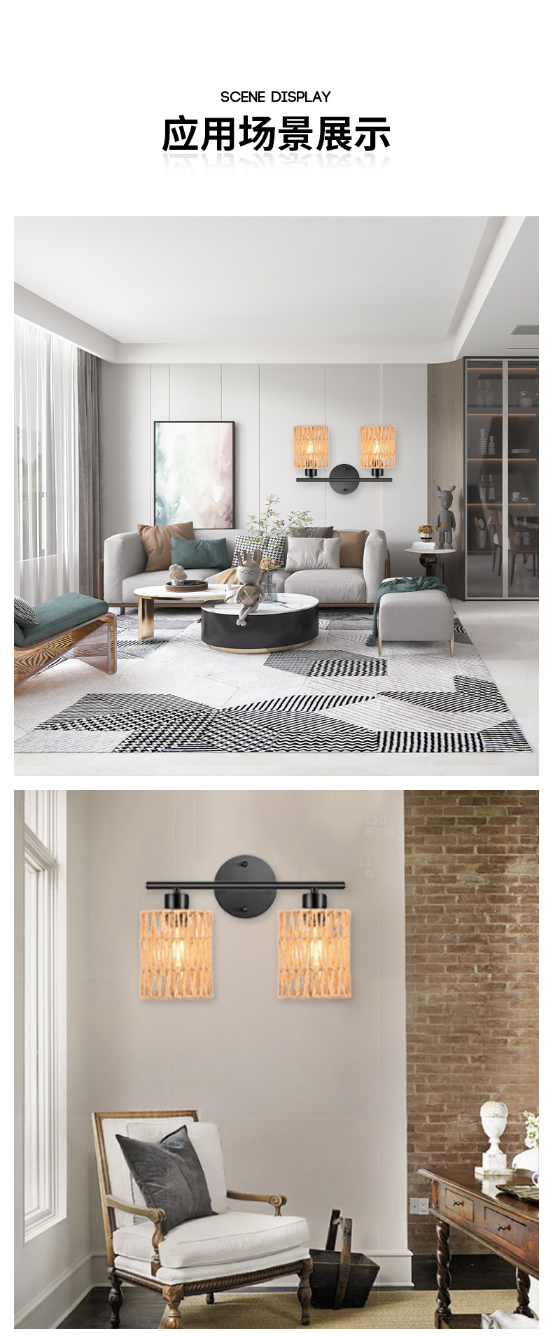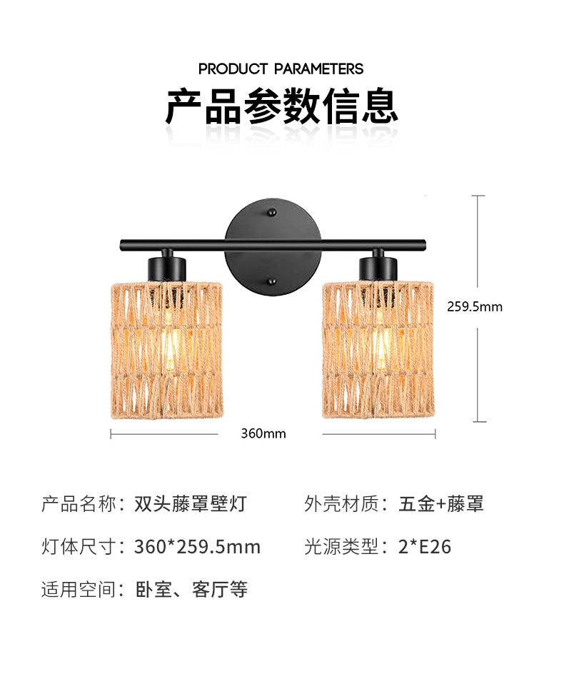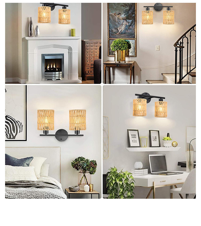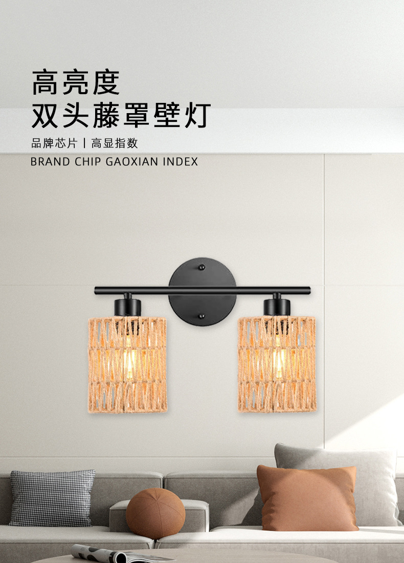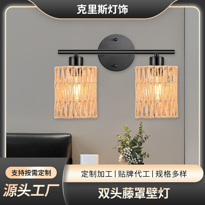 라이트 럭셔리 등나무 벽 램프 거실 벽 침실 침실 배경 벽 더블 헤드 등나무 커버 벽 램프 등나무 아트 벽 램프스토어 가기