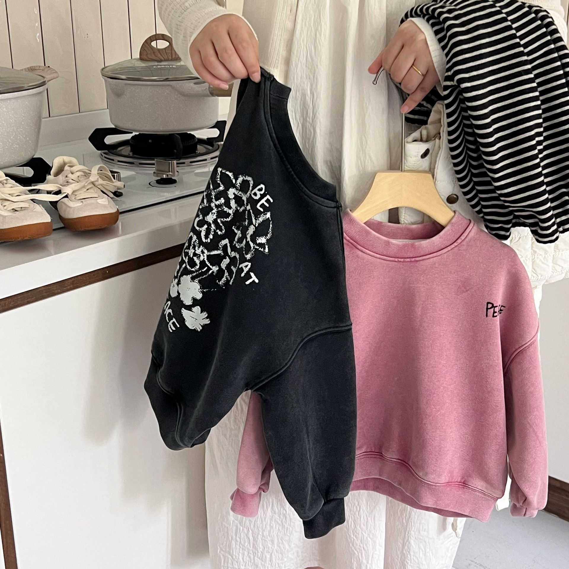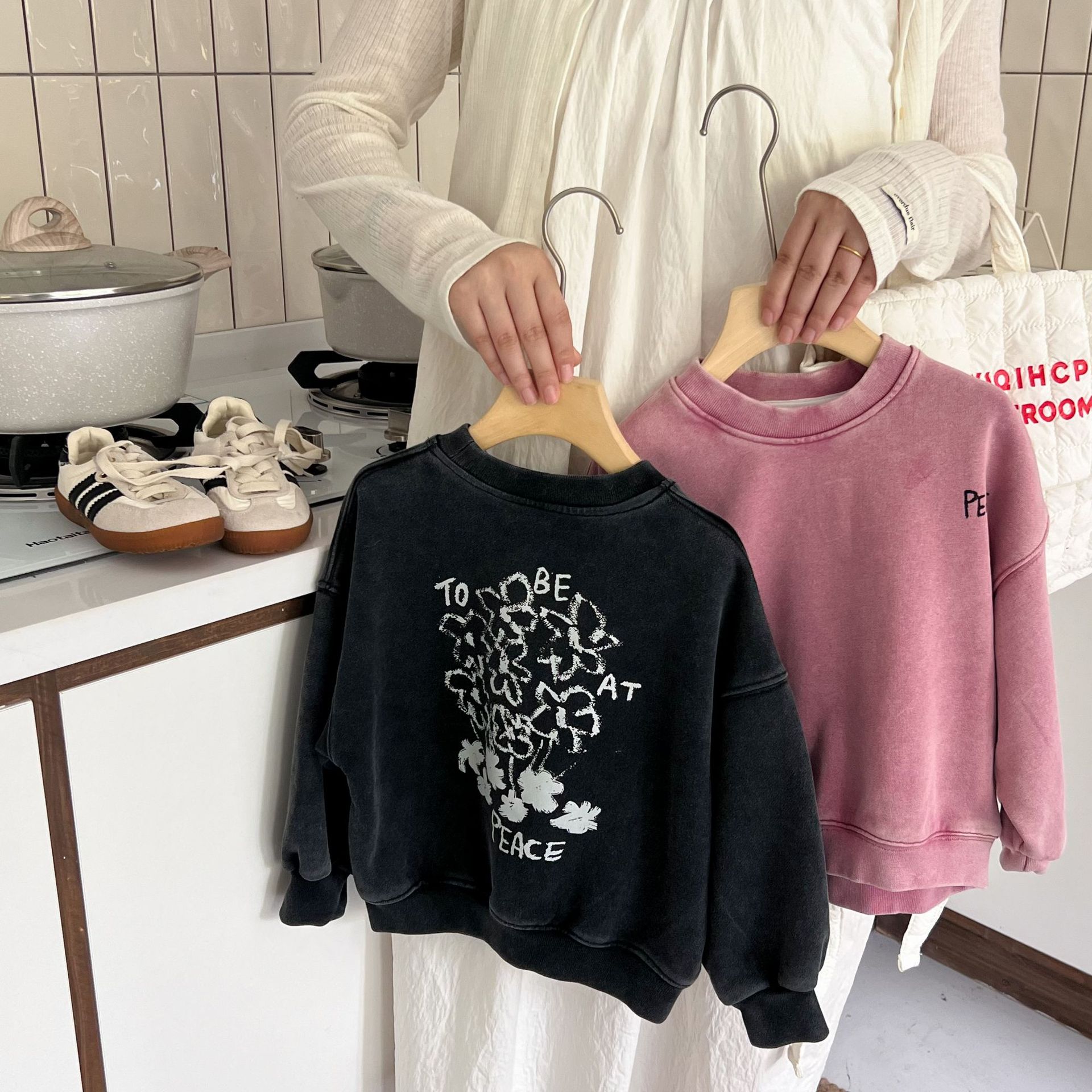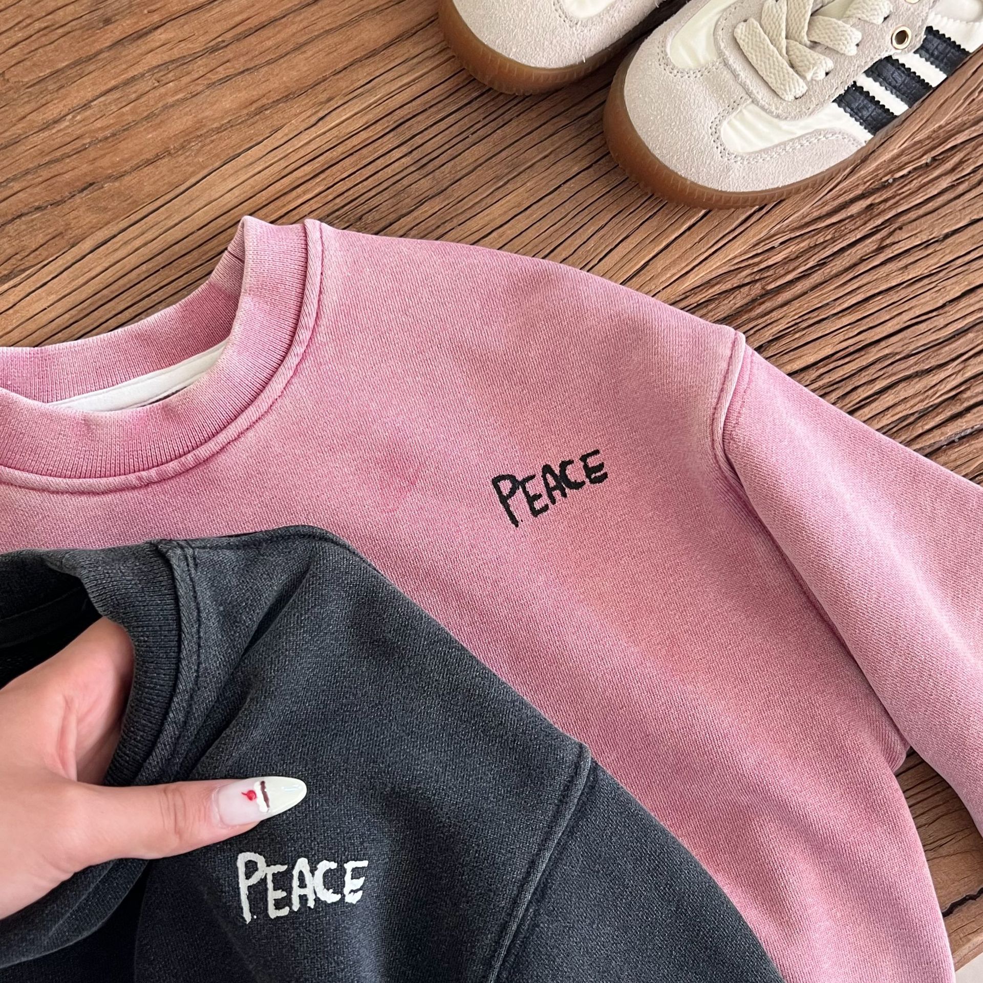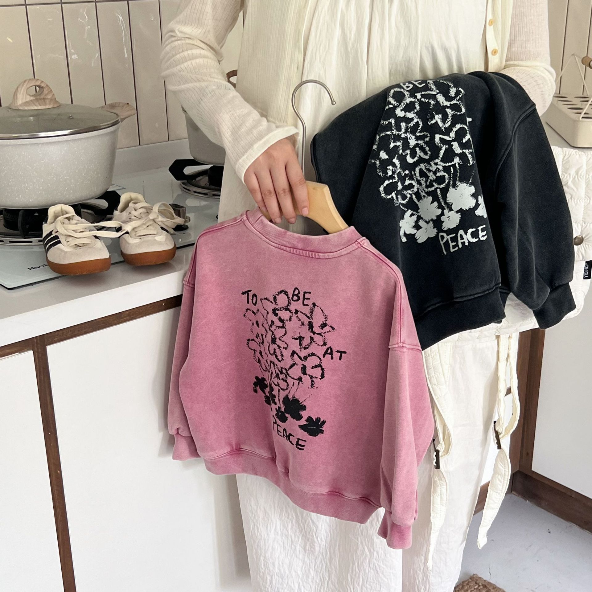 这款儿童洗旧卫衣以其独特的洗旧效果,它打破了传统的新衣观念,为孩子们带来一种复古而又充满个性的穿搭选择。