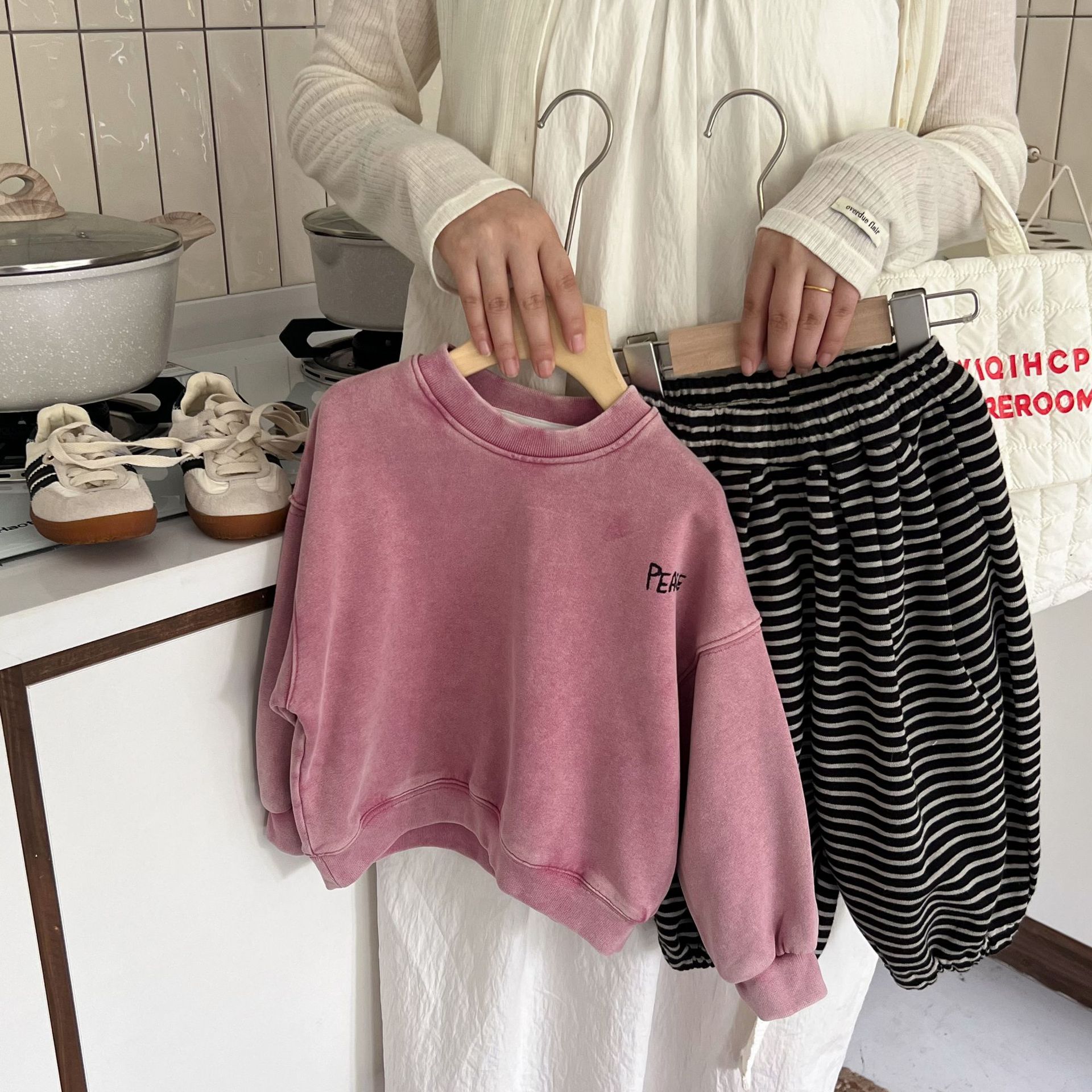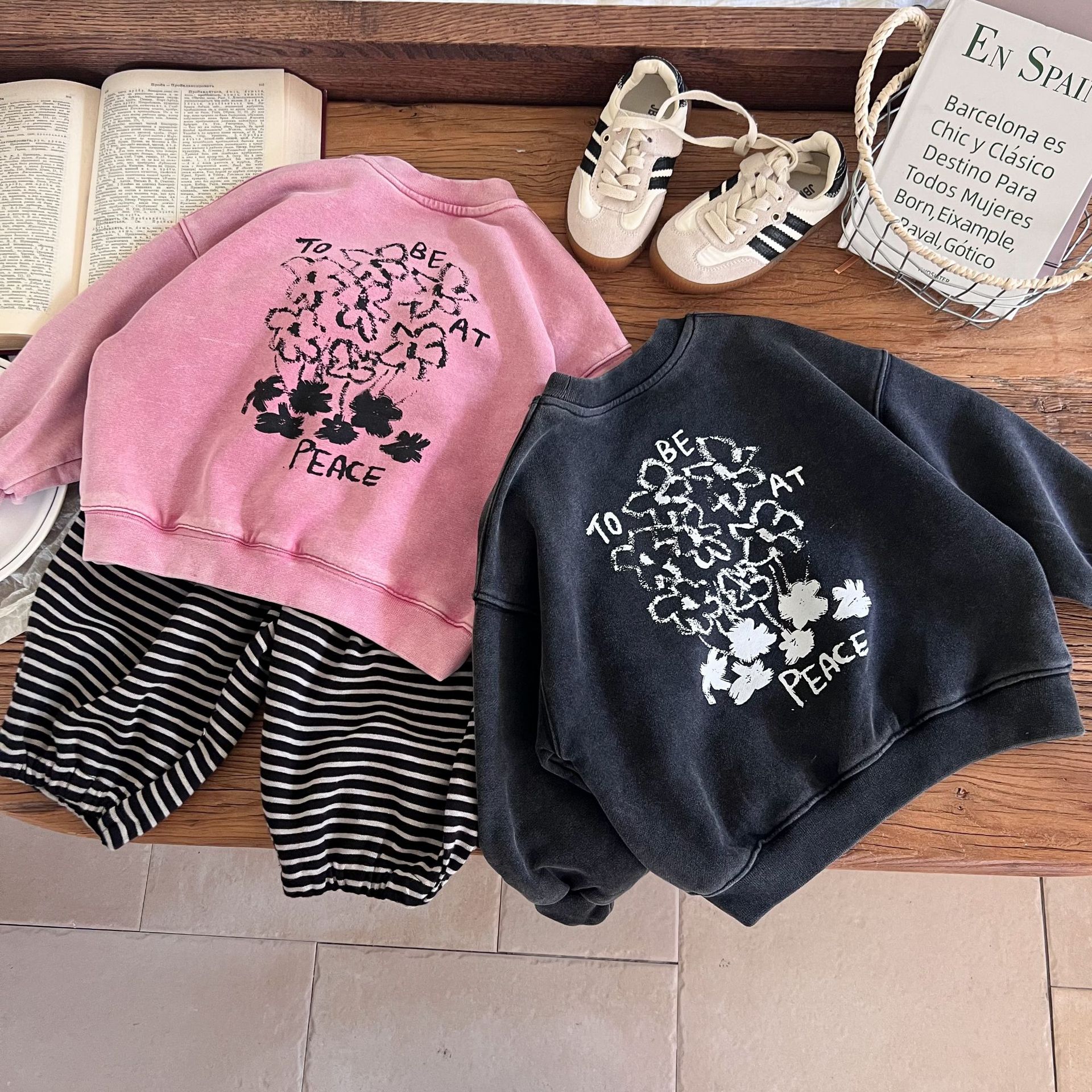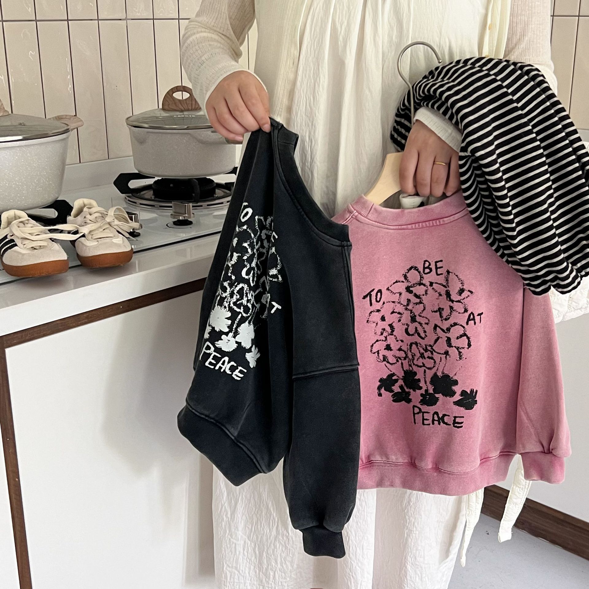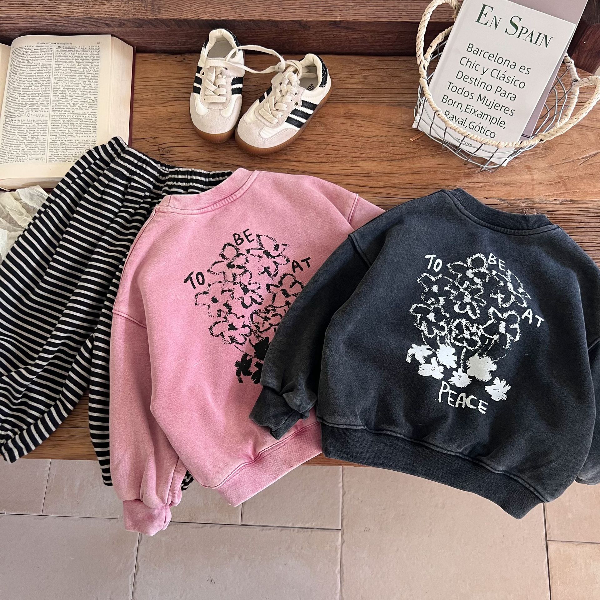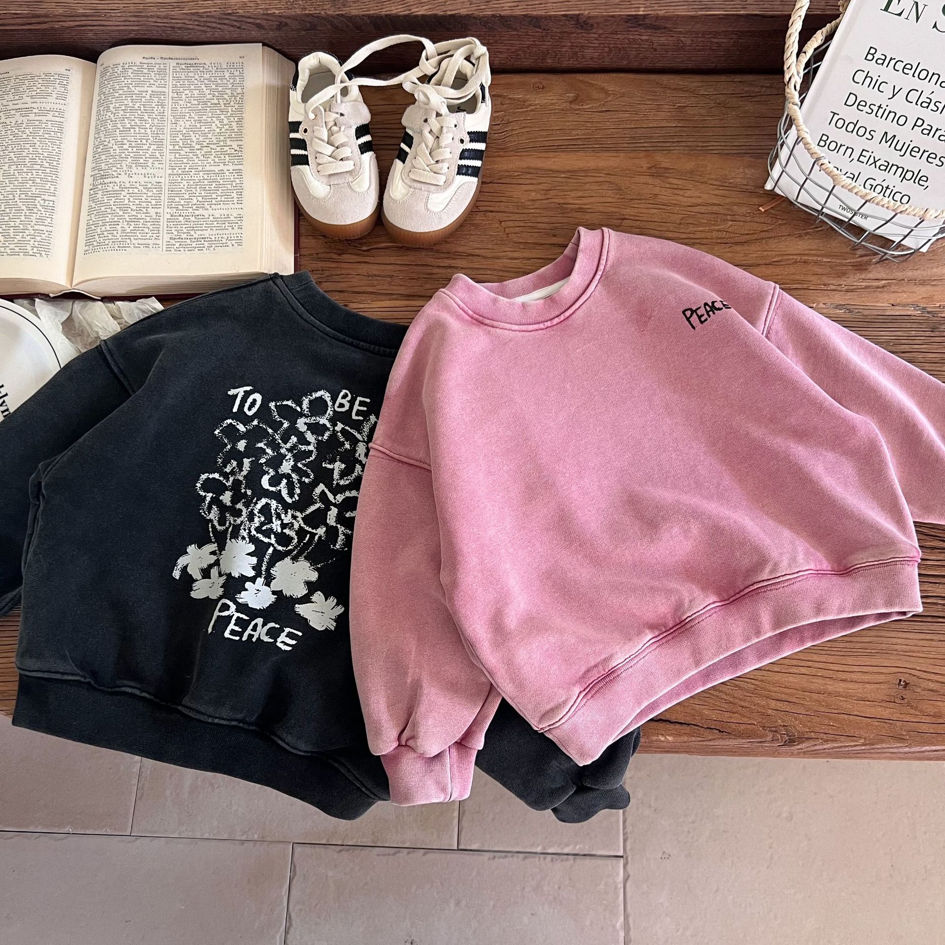 这款儿童洗旧卫衣以其独特的洗旧效果,它打破了传统的新衣观念,为孩子们带来一种复古而又充满个性的穿搭选择。