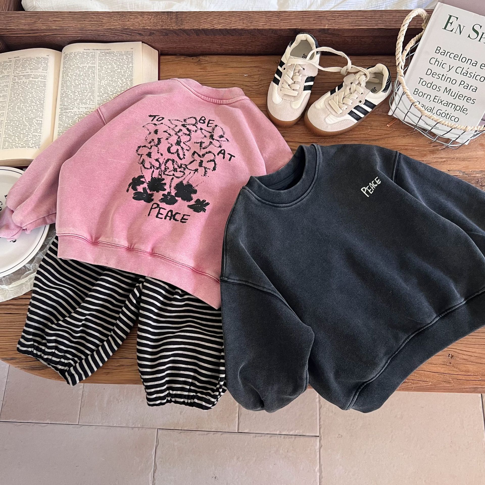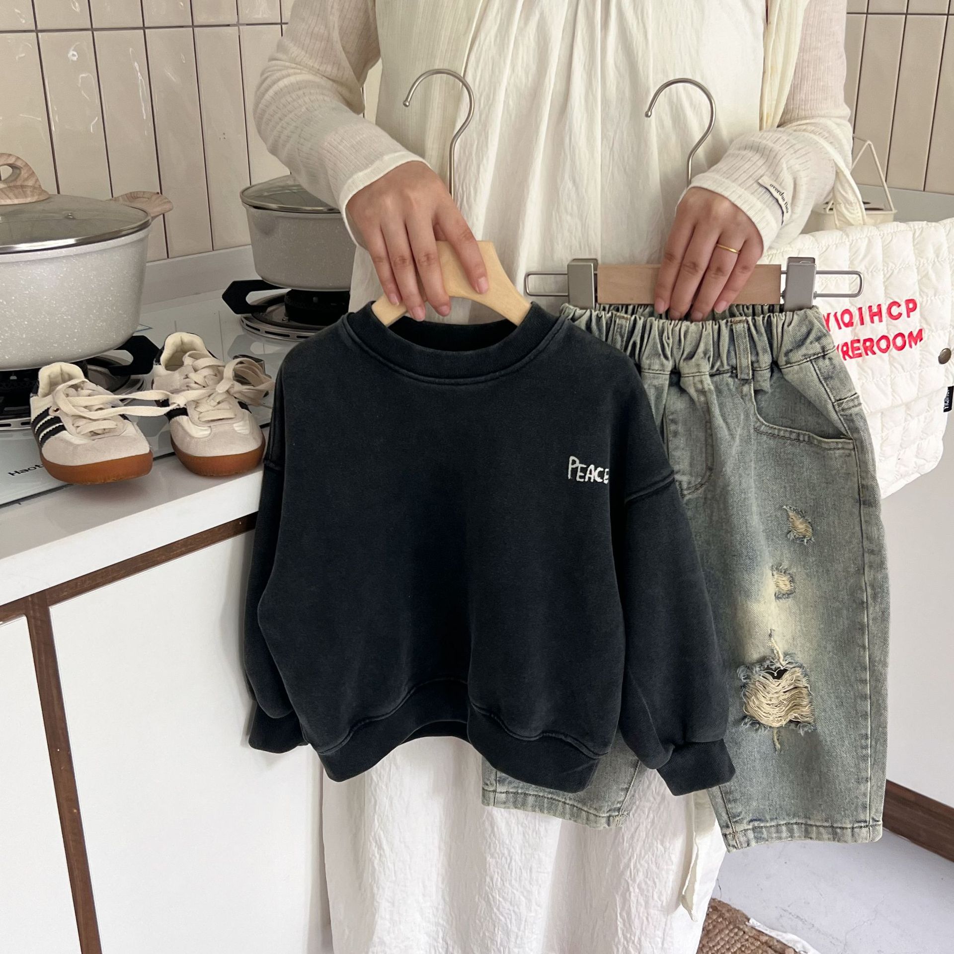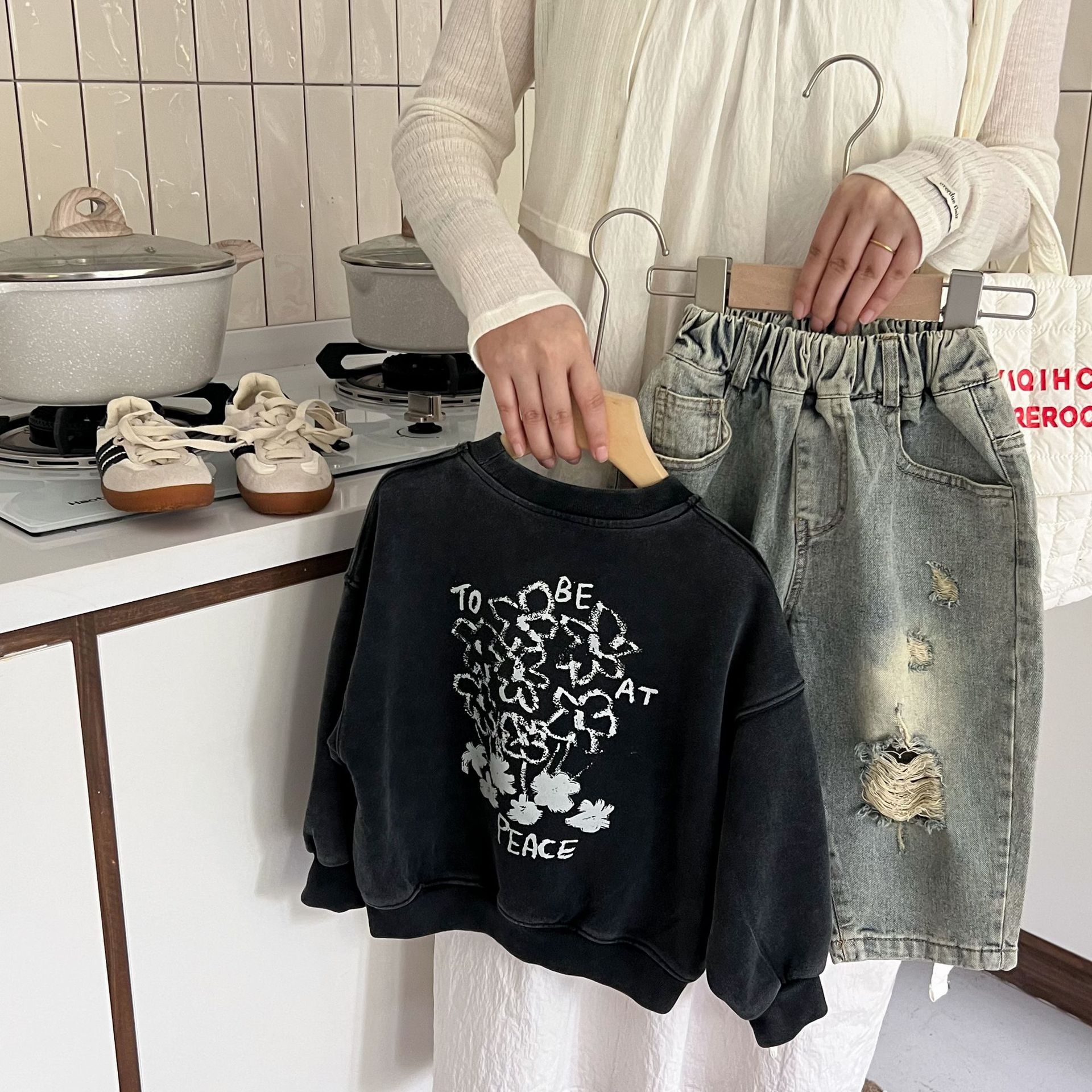洗旧的色调和纹理,仿佛在诉说着岁月的故事,让孩子们瞬间变身时尚小达人。无论是搭配牛仔裤还是运动裤,都能轻松展现出与众不同的潮流品味。