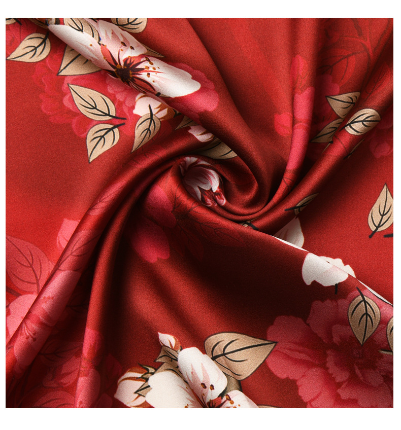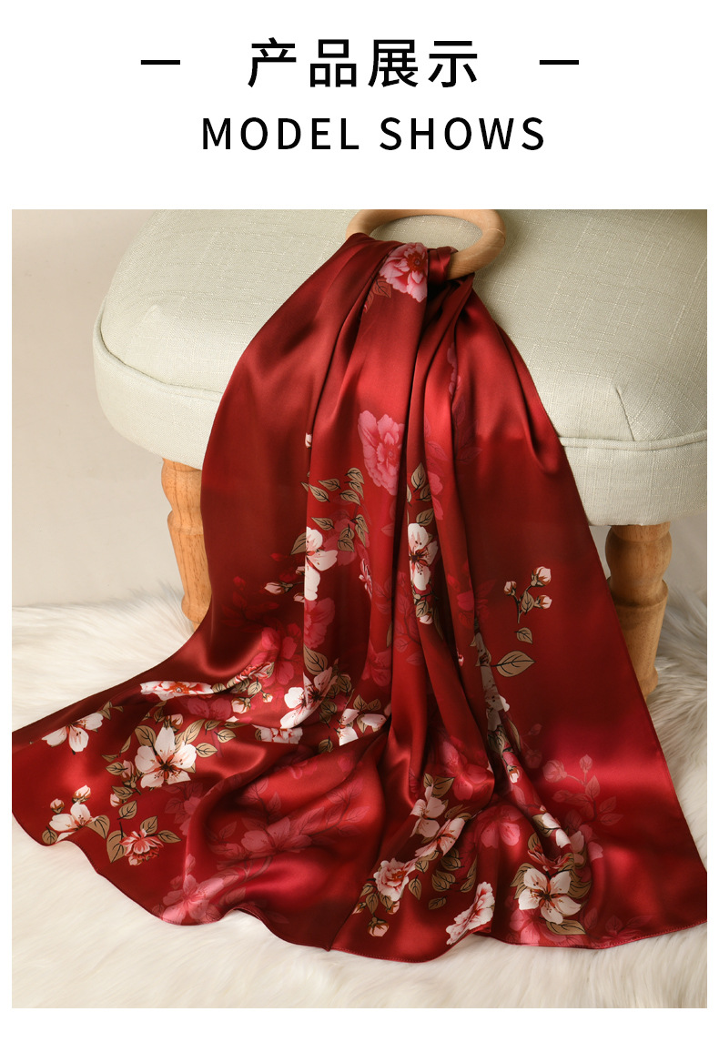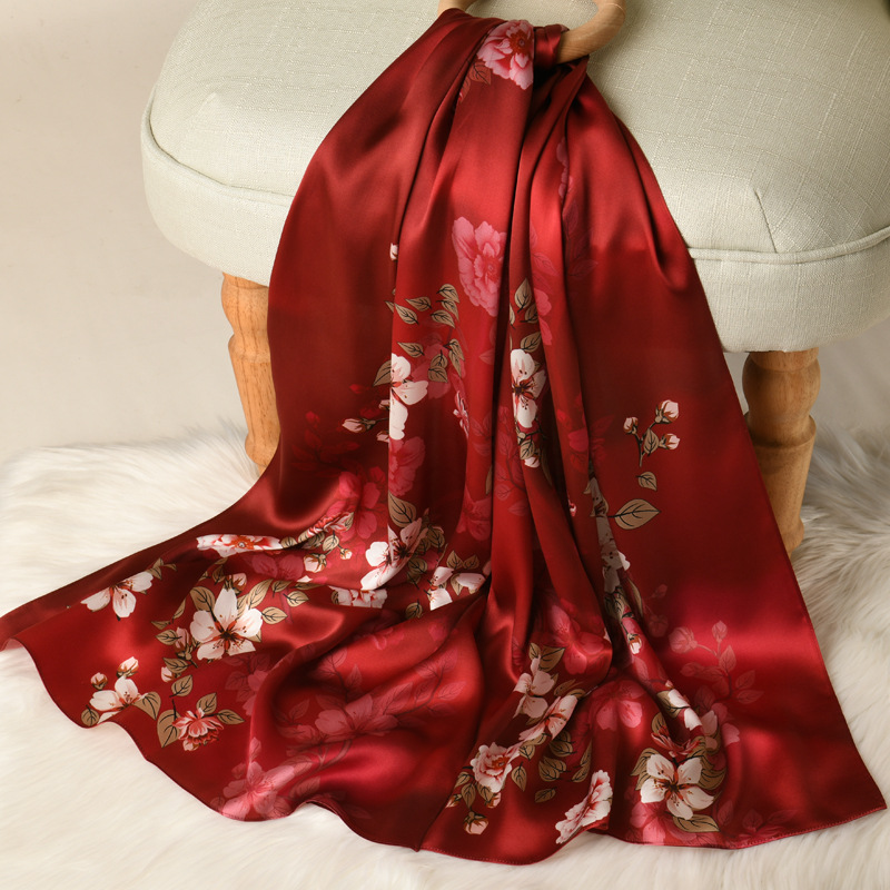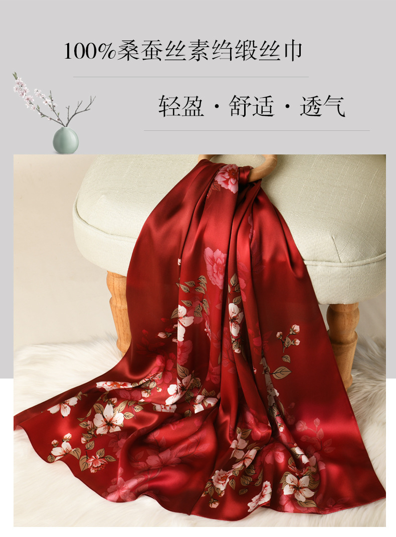 크레페 새틴 스카프 100% 뽕나무 실크 항주 자체 제작 버건디 인쇄 목도리 스카프 도매 빠른 배달스토어 가기