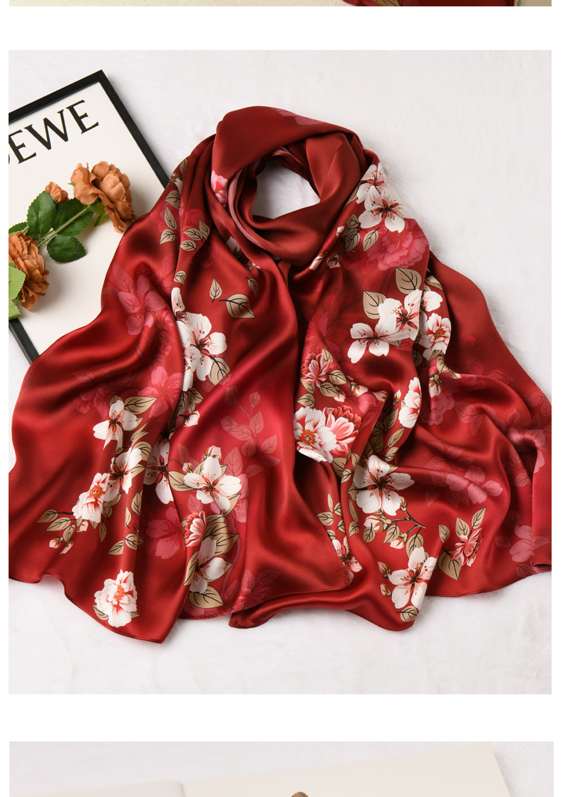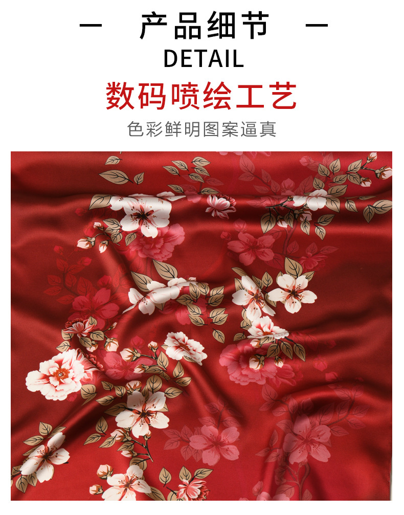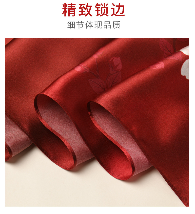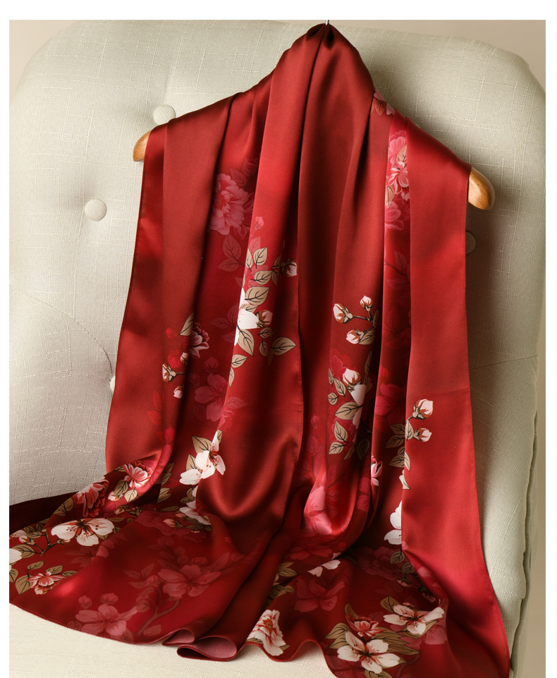 크레페 새틴 스카프 100% 뽕나무 실크 항주 자체 제작 버건디 인쇄 목도리 스카프 도매 빠른 배달스토어 가기