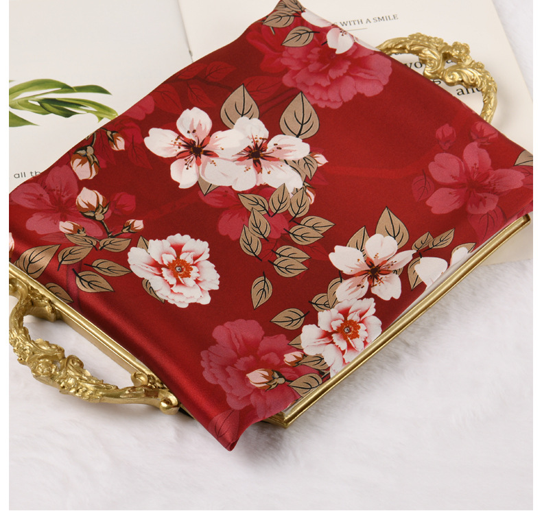 크레페 새틴 스카프 100% 뽕나무 실크 항주 자체 제작 버건디 인쇄 목도리 스카프 도매 빠른 배달