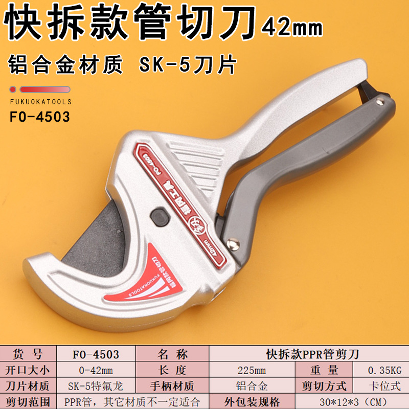후쿠오카 도구 FO-4503 튜브 커터 42mm 오픈 PPR 튜브 가위 빠른 릴리스 SK-5 블레이드 알루미늄 합금 핸들