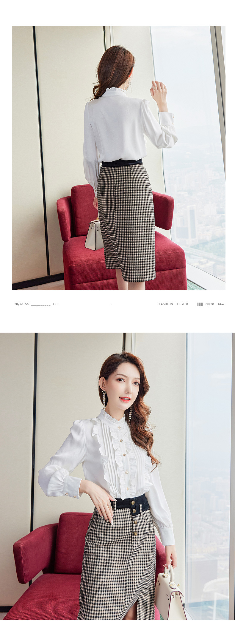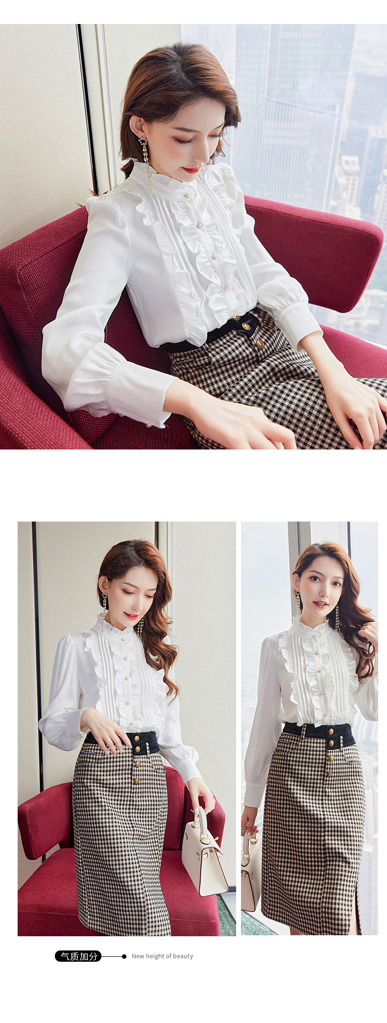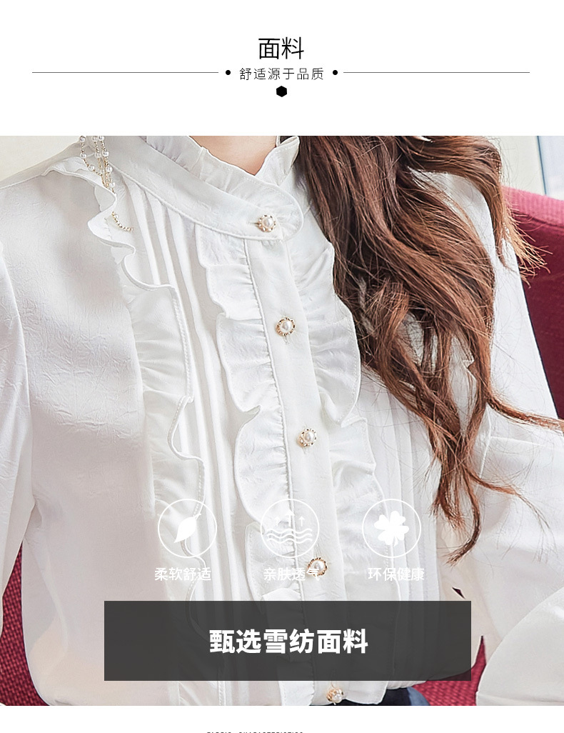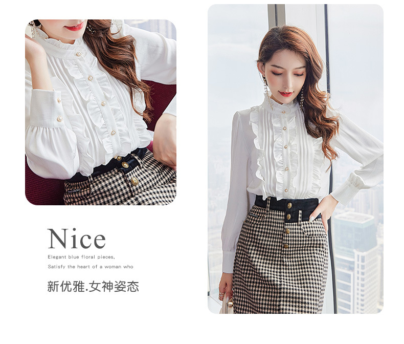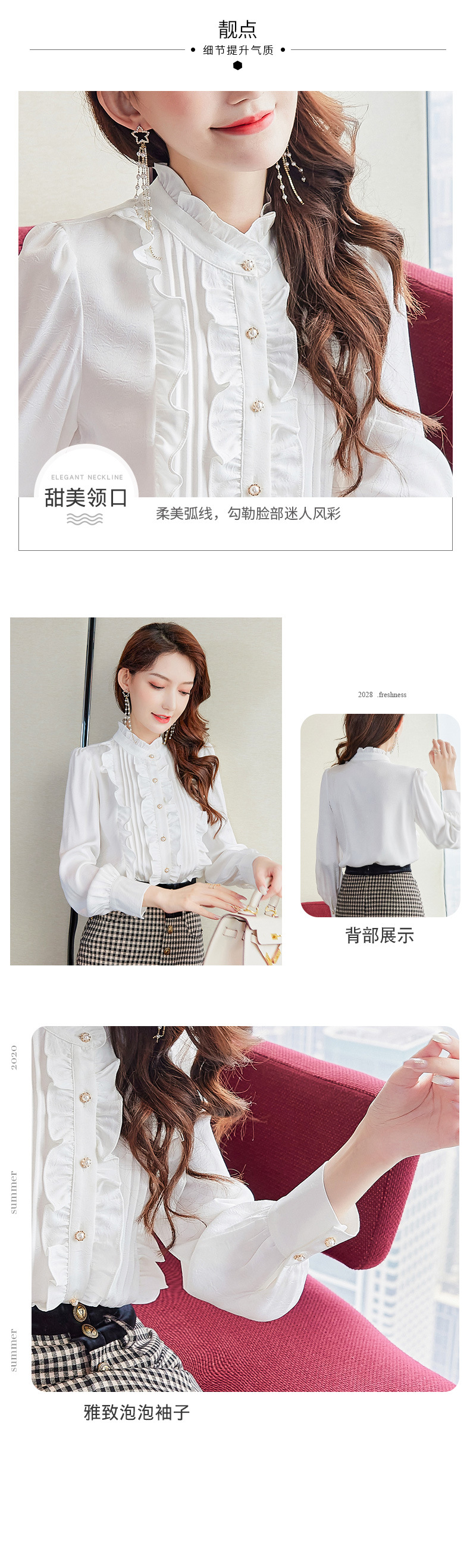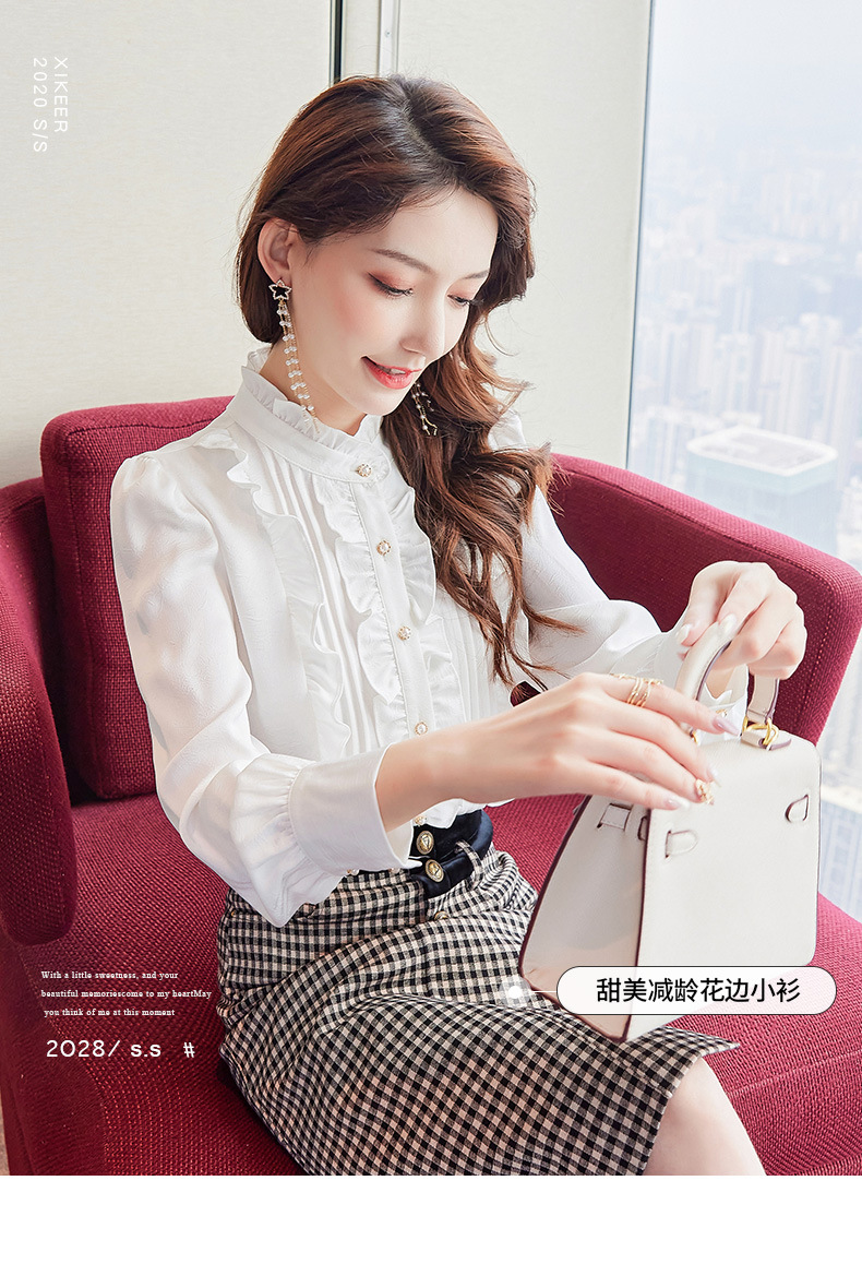 도매 2025 봄 새로운 쉬폰 나무 귀 기질 디자인 감각 스탠드 칼라 작은 탑 기질 복고풍 셔츠 여성스토어 가기