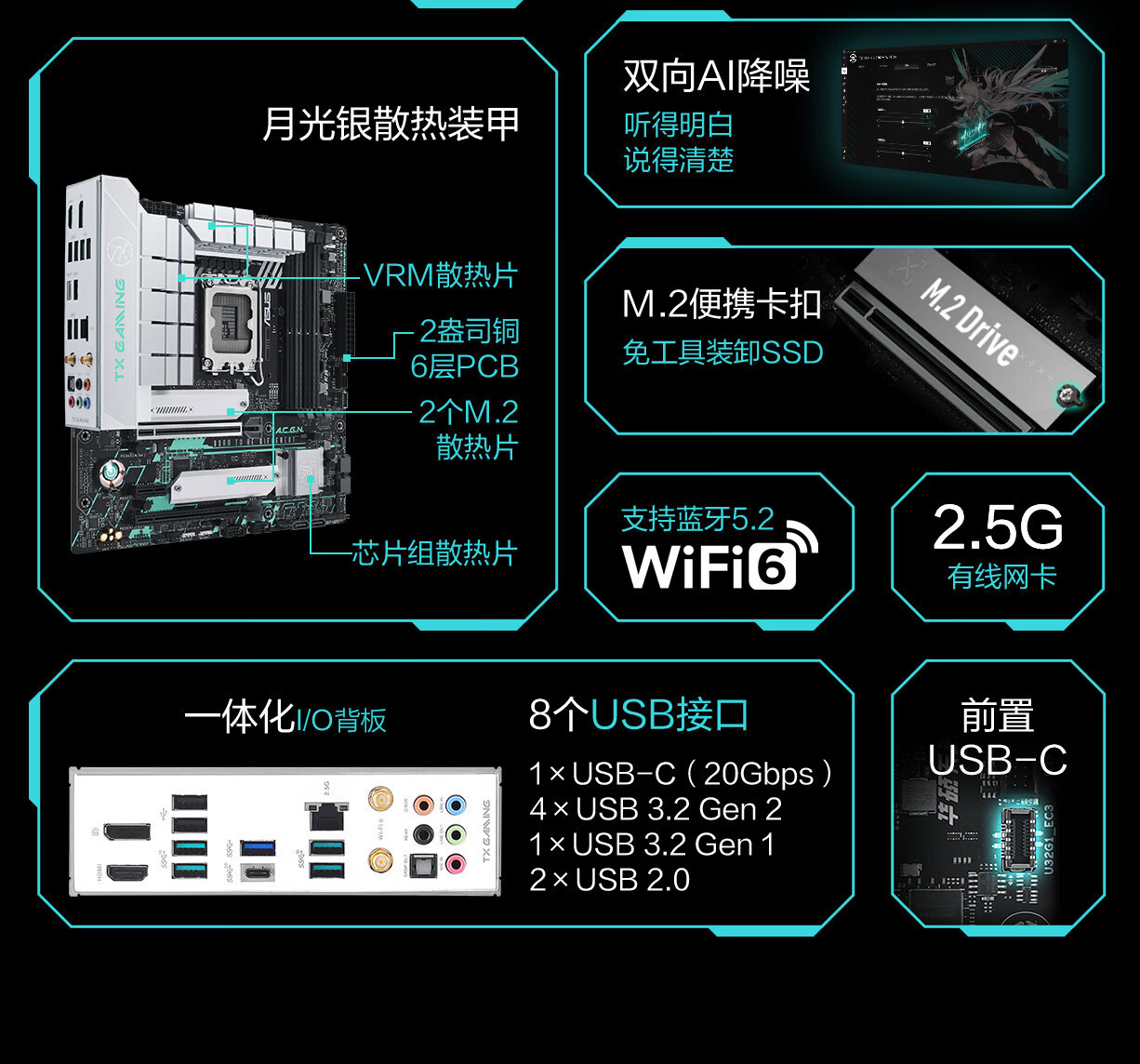 ASUS TX GAMING B760M Tianxuan 마더 보드 지원 CPU 13700K
