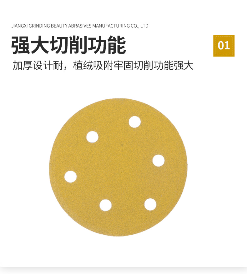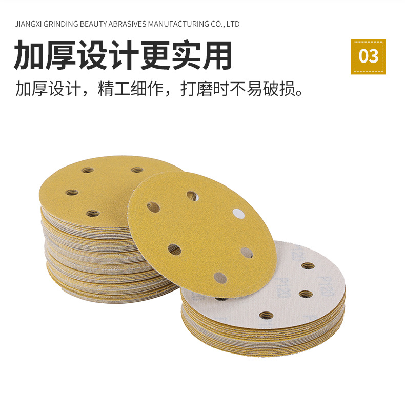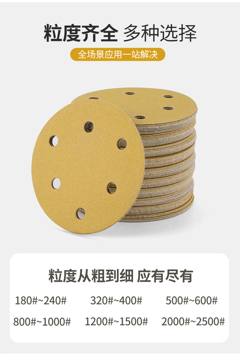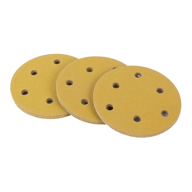 노란색 모래 5 인치 6 홀 플록 사포 알루미늄 합금 쉘 연마 종이 자동차 페인트 금속 연마 사포 도매스토어 가기
