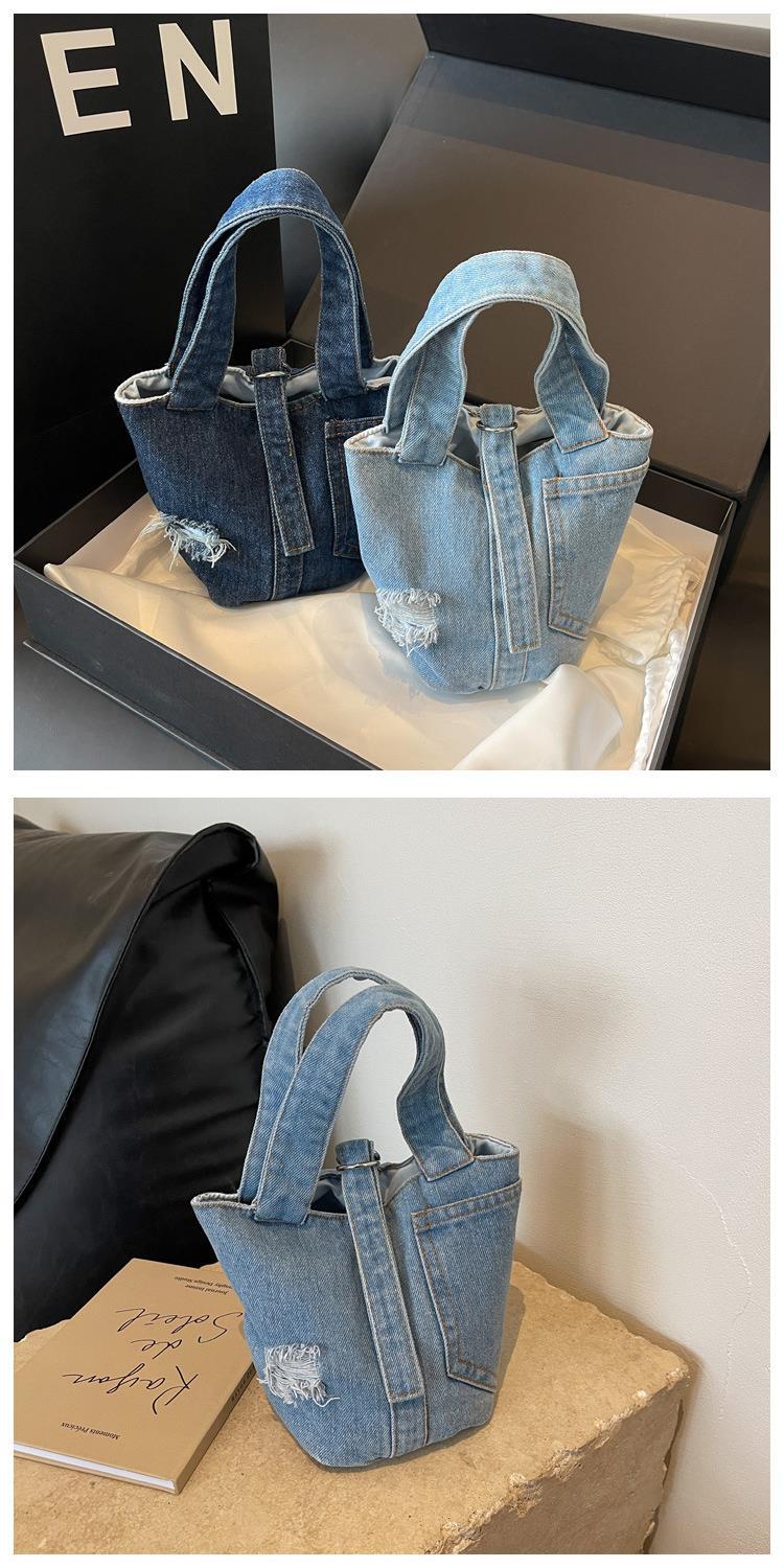 새로운 한국식 실용 데님 야채 바구니 양동이 가방 여성 틈새 패션 핸드백 올 매치 핸드 소형 가방스토어 가기