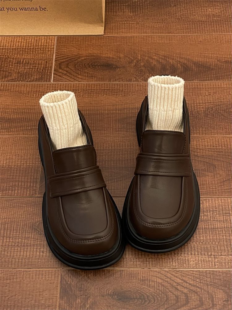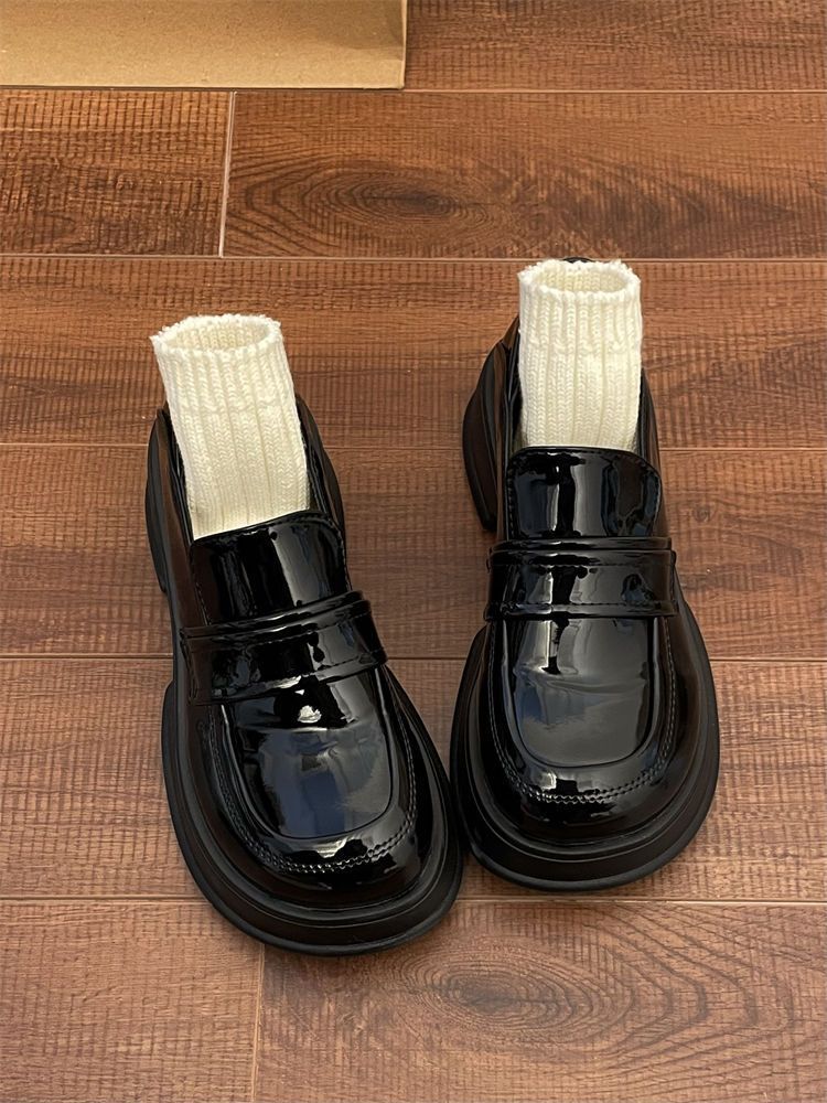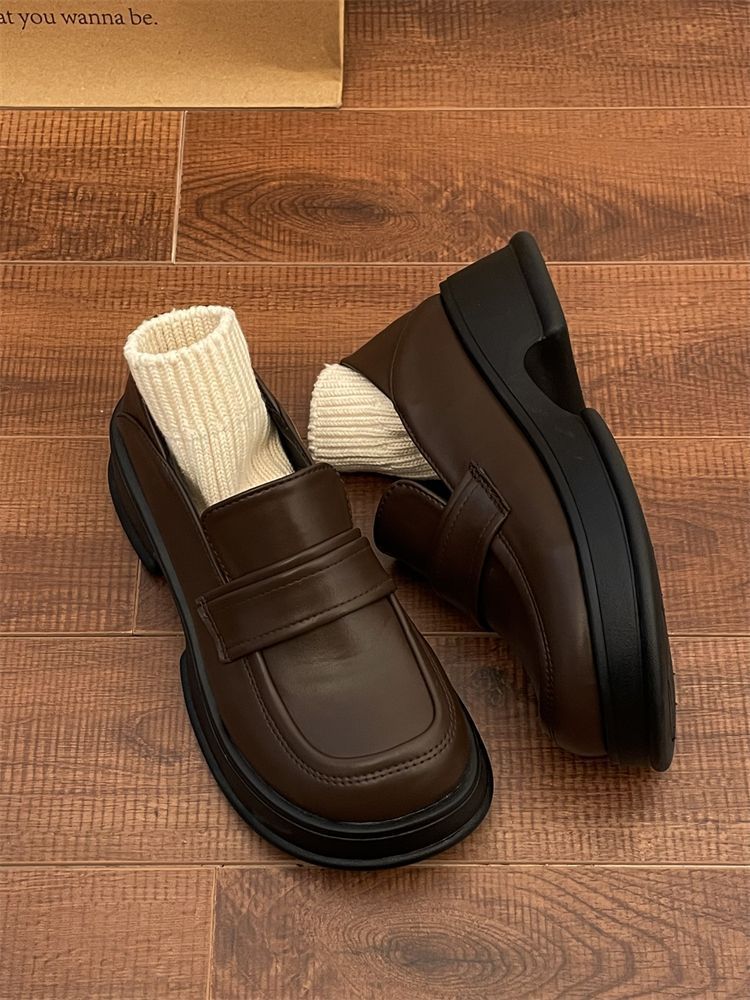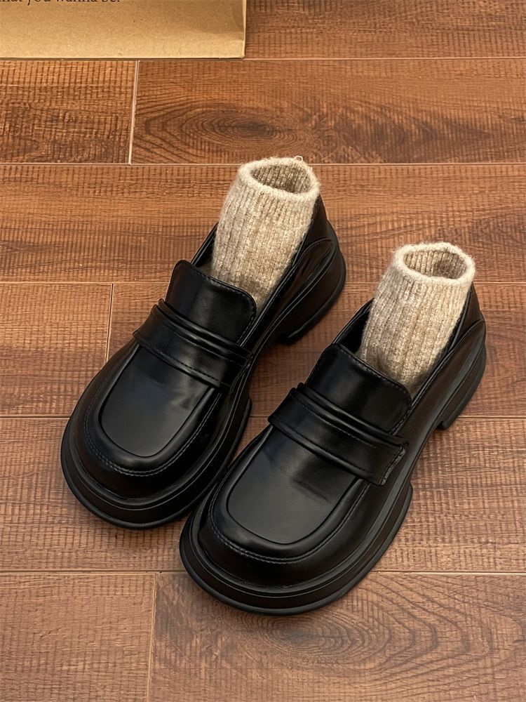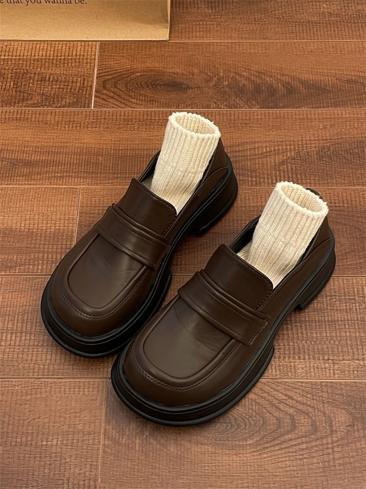 일본식 대학 스타일의 두꺼운 밑창 기본 jk 작은 가죽 신발 2024 프랑스 여름과 가을 미드 힐 한국식 라운드 토 싱글 레이어 신발 트렌디스토어 가기