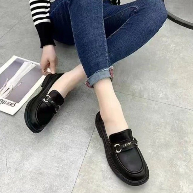 정품 가죽 로퍼 여성 2024 새로운 여성 신발 소프트 단독 작업 신발 봄과 가을 영국 스타일 작은 가죽 신발 블랙 싱글 레이어 신발 트렌디