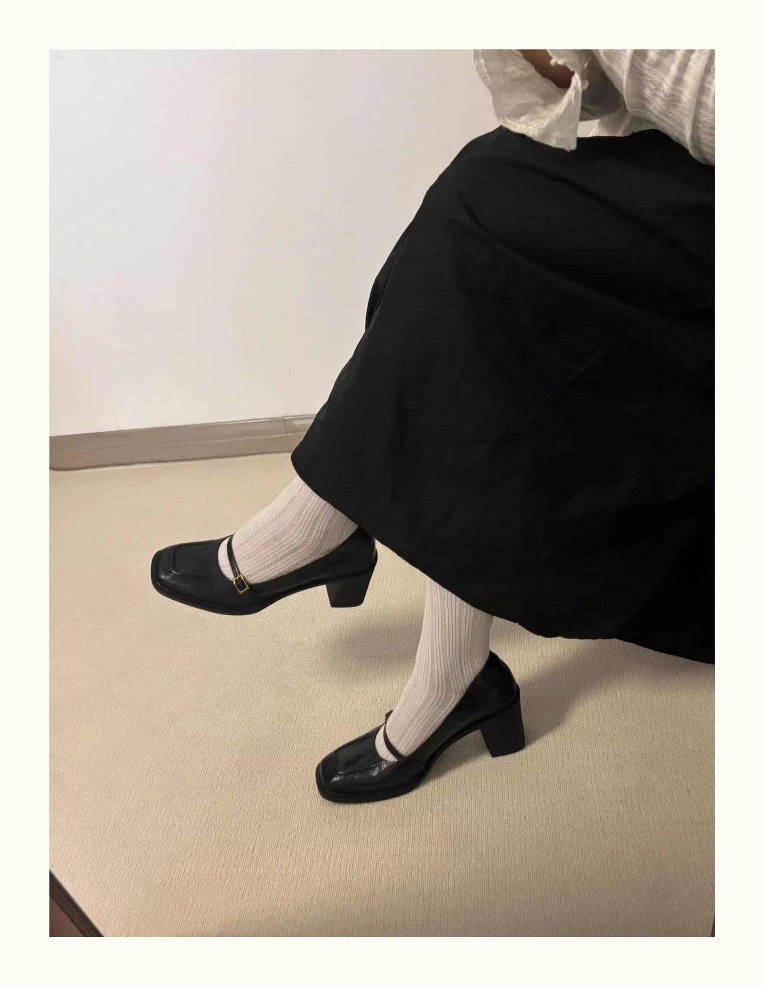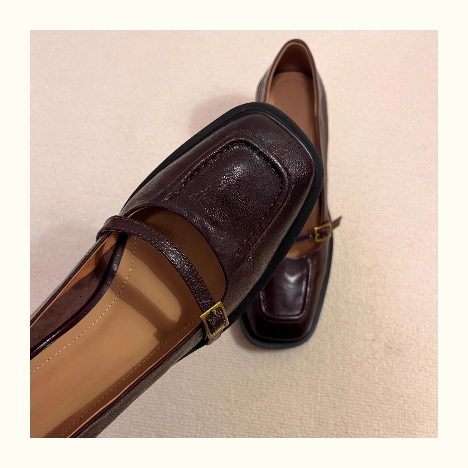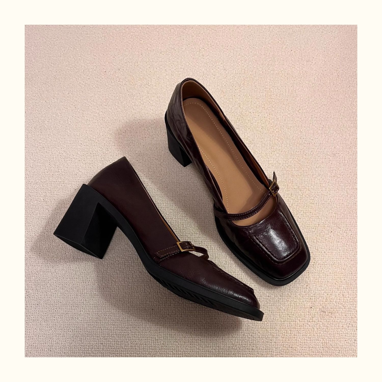 부드러운 양가죽 레트로 스퀘어 발가락 얕은 하이힐 JK 작은 가죽 신발 2024 프랑스 가죽 청키 힐 메리 제인 신발 여성 신발스토어 가기
