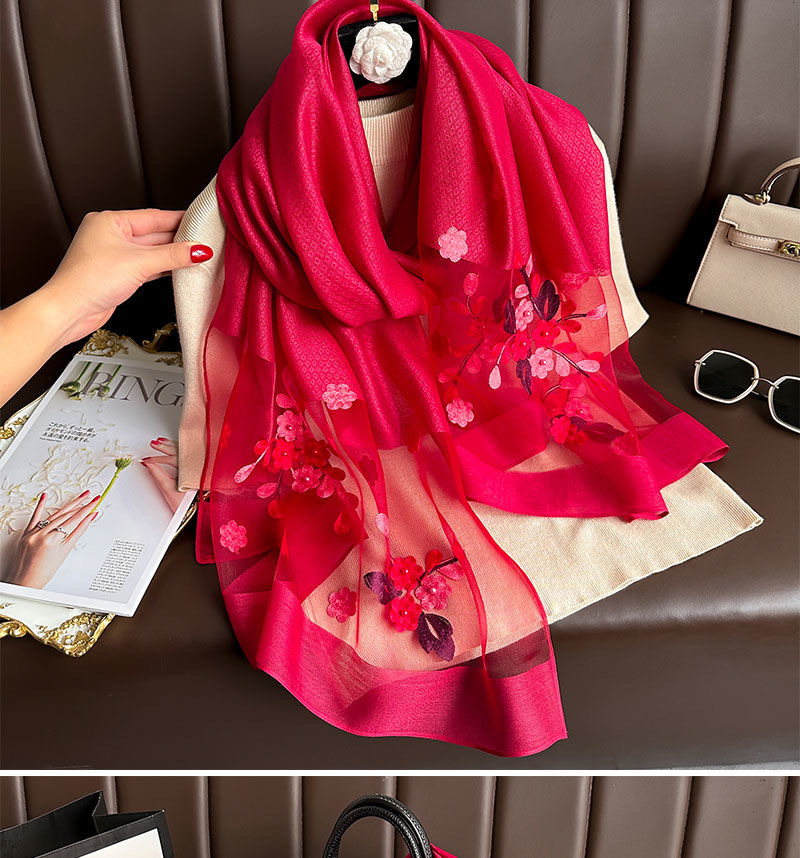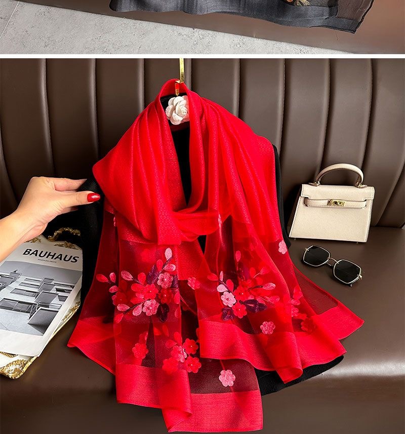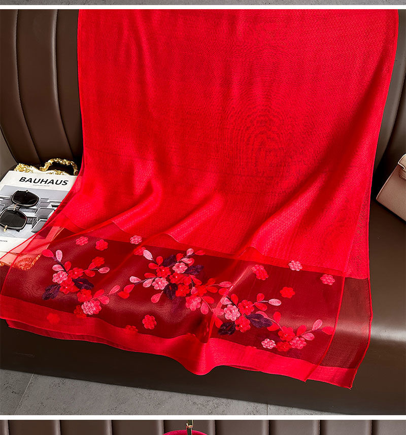 • [빅 레드] 자수 꽃무늬 스카프