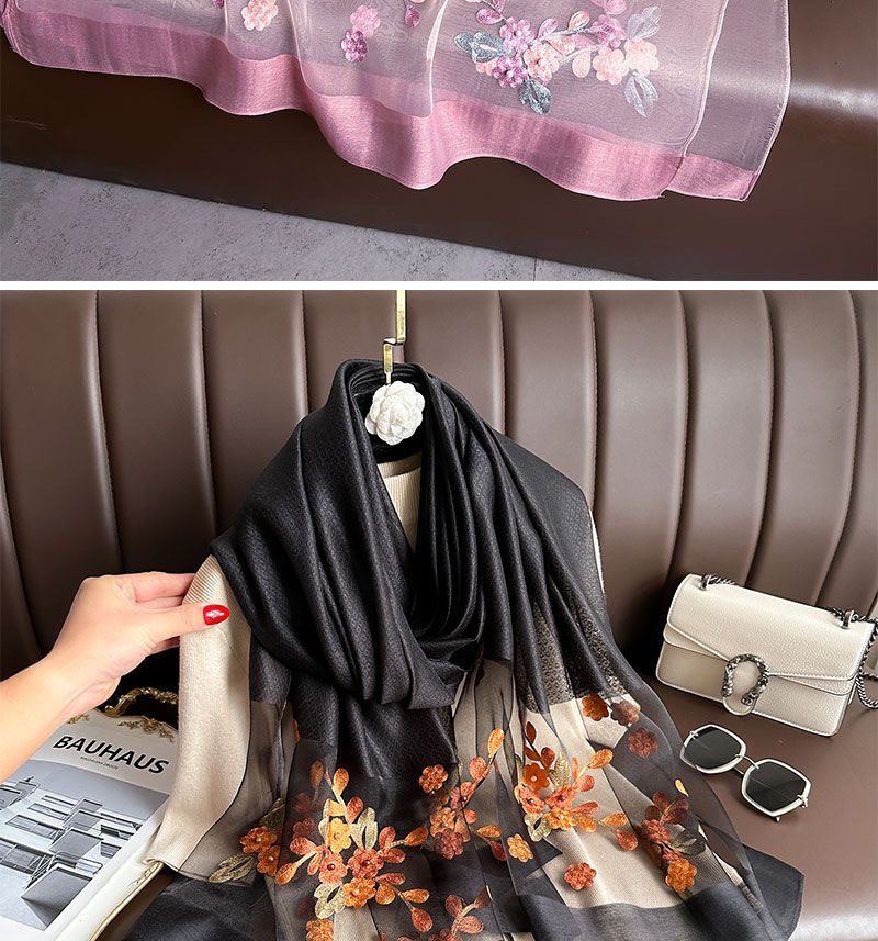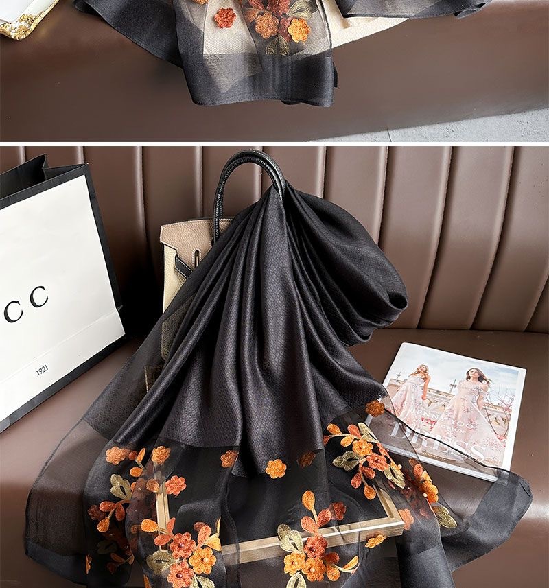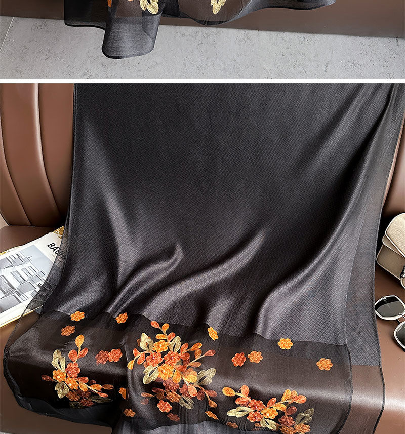 • [블랙] 자수 꽃무늬 스카프