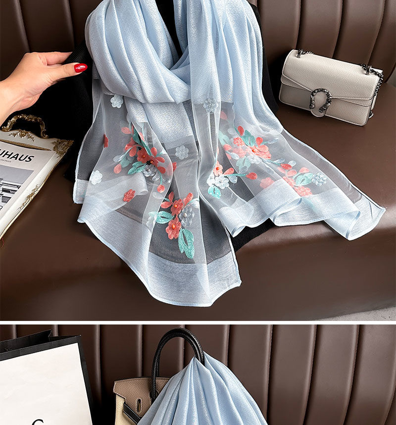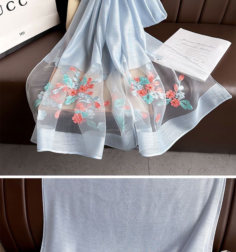 • [라이트 블루] 자수 꽃무늬 스카프